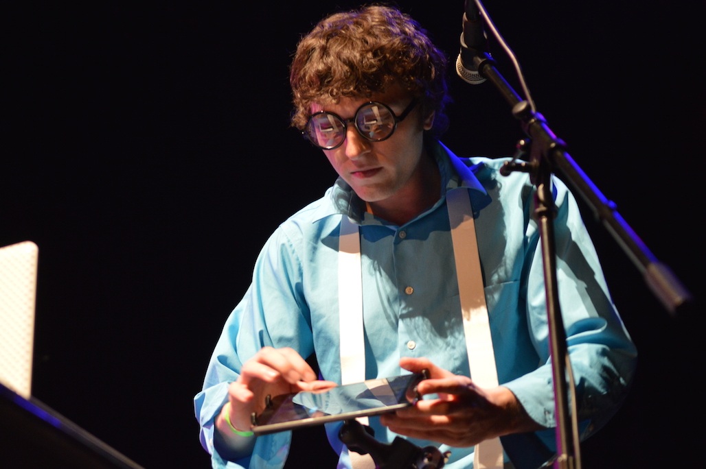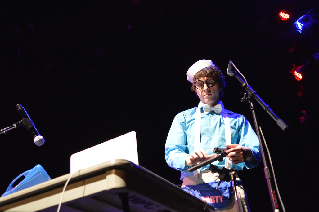 YEAHÂ Dubz: Crouching talk box, hidden DJ. Sounds by way of PlayStation controller and tablet. Suspenders included.