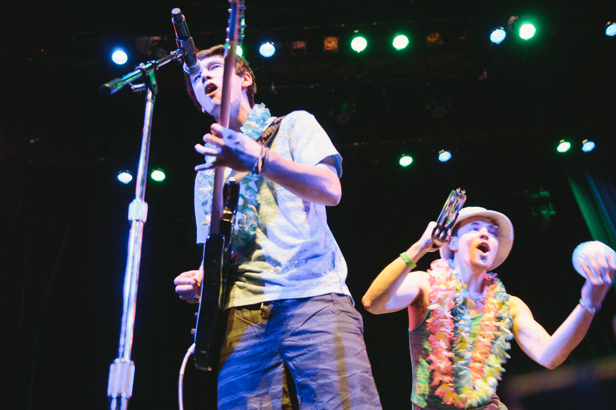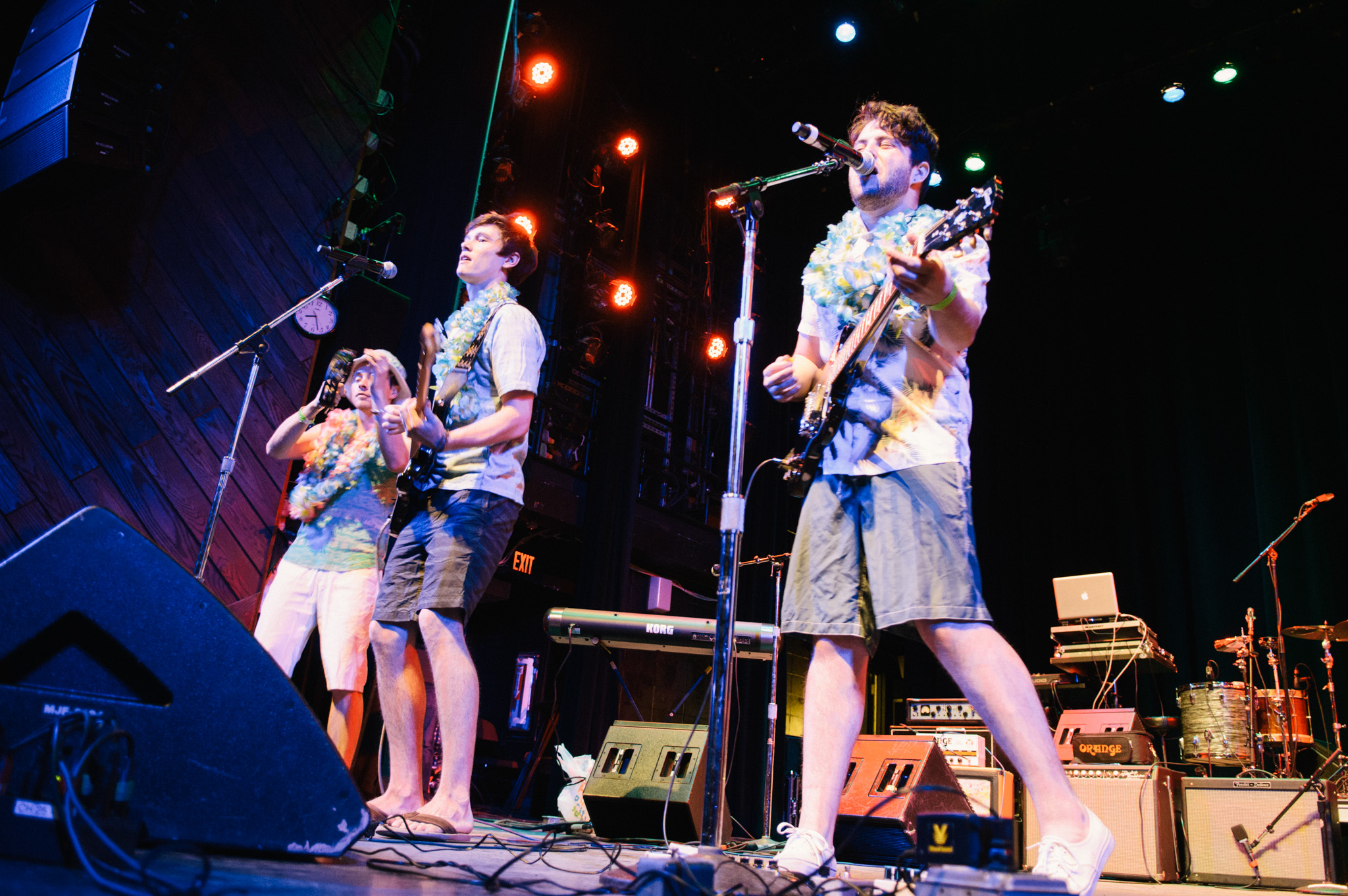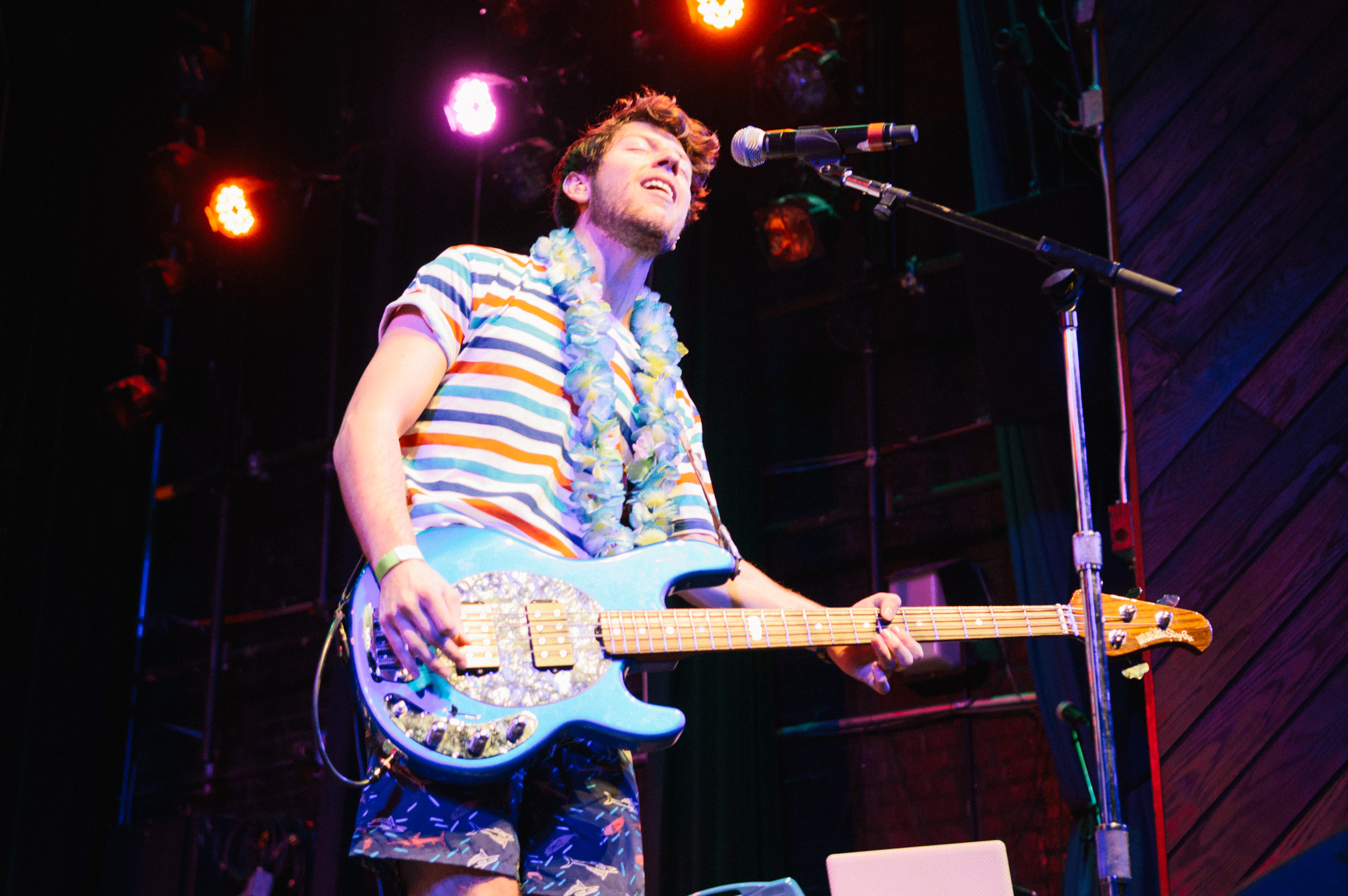 Fever Charm: Mini beach ball-tossing, lei-wearing, tambourine dancer guy, luau rock party.