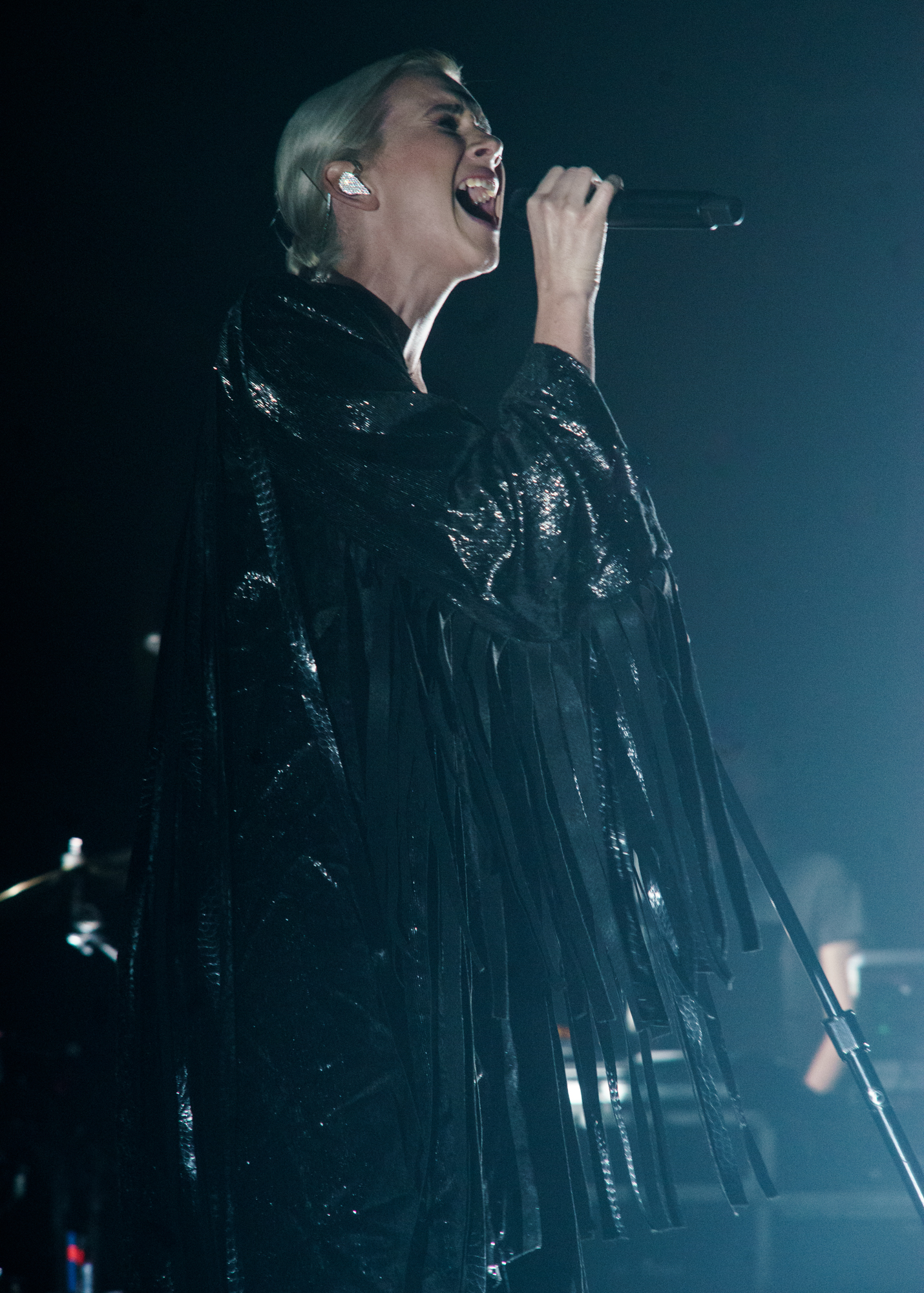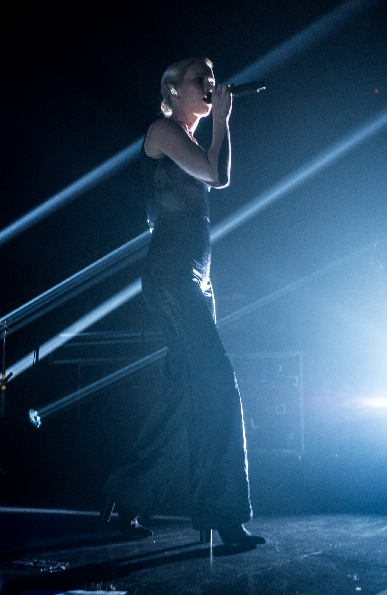 Clad in black, Georgia continued an orchestrated march into darkness as she belted the chorus to “Never Gonna Change.” Her developed poise, the result of non-stop touring, was evident and augmented by the backing wall of musicians. On subtler tracks, Broods’ additional live members allowed for greater cohesion and depth while keeping Georgia’s vocal prowess front and center. However, Georgia’s vocals constantly battled against the Royale’s bass-heavy mixing, forcing moments of strain throughout the first half.