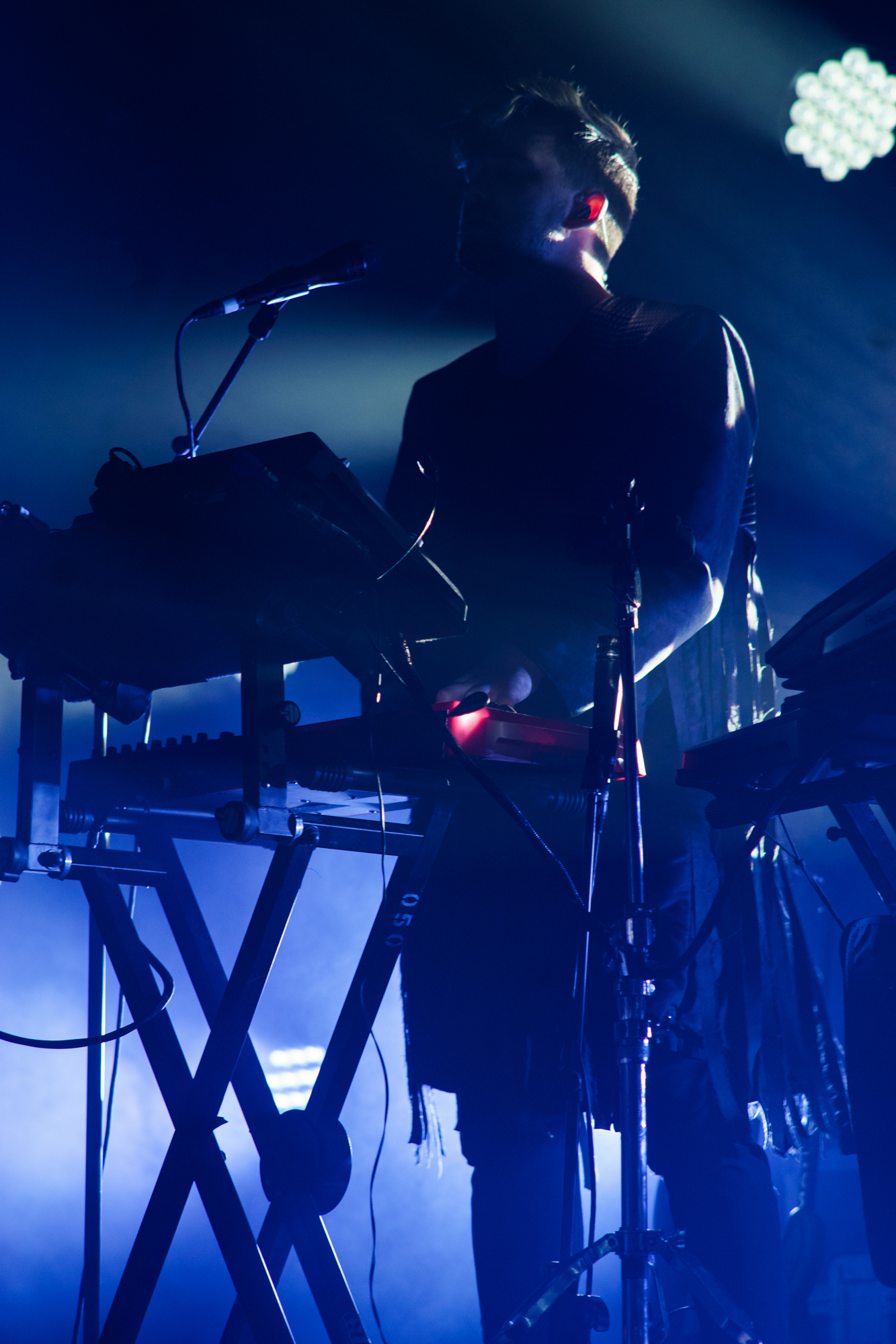 Draped in new white robes, the pair returned to the stage with striking confidence as the throbbing bass and ambient atmospheres fell victim to a wall of gleaming synths with “Recovery.” This was their entrance. Broods failed to let their audience go, and while the Royale’s poor mixing remained an issue, Georgia’s sleek dance moves and layered vocals humanized the pop-atmosphere that risked feeling too distant. At moments, the crowd was perfectly in time, echoing: “I wanna feel your heart,” while Georgia sang into the crowd during “Heartlines,” arguably the evening’s strongest track. Like Georgia, Caleb embraces this live element, by picking up a bass, drumming along on pads, and failing to simply press play on a backing track. This electronic backbone propelled the show’s second half to a new level, even with compromised dynamics.
