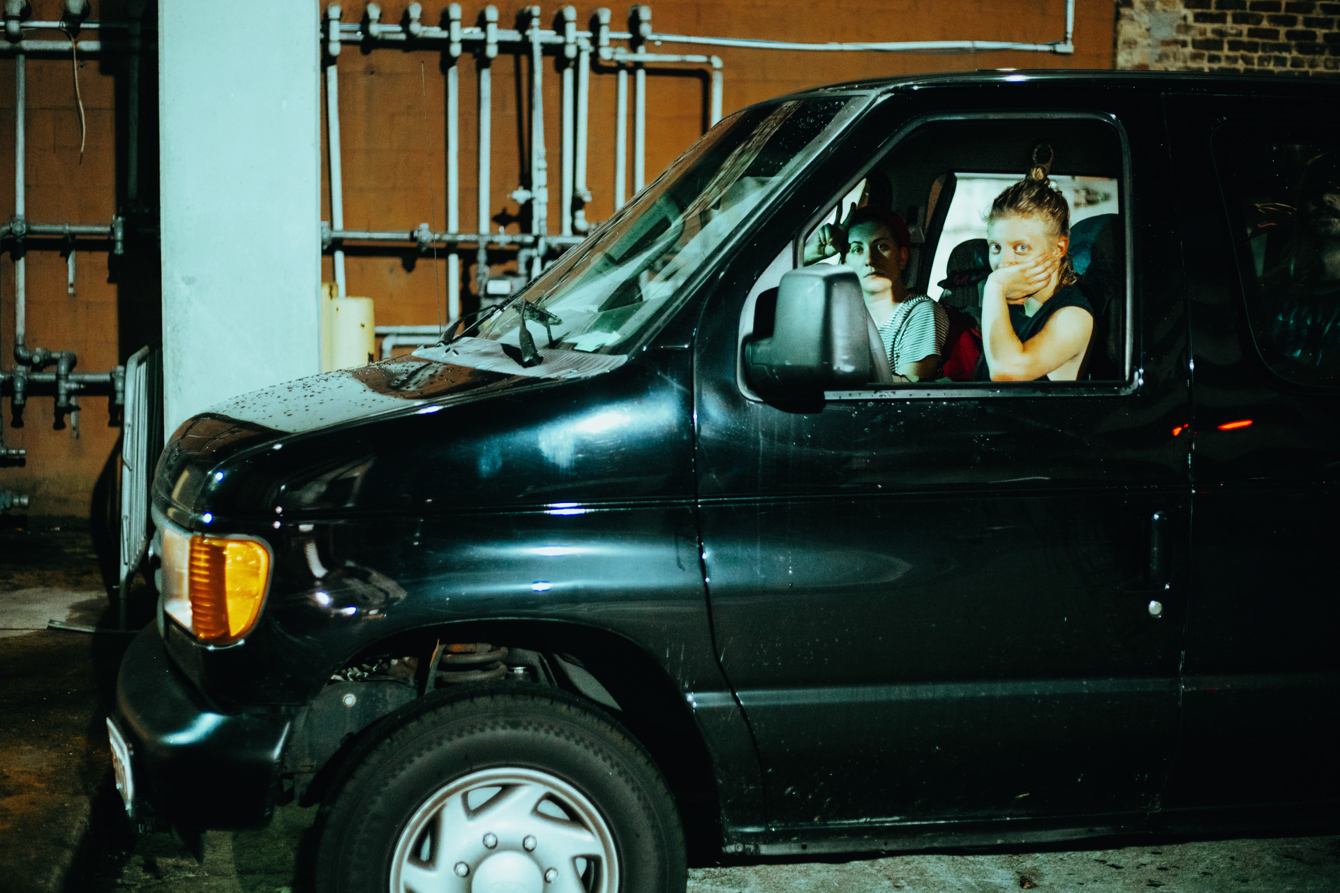 Waiting to meet friends on the other side of Atlanta, GA, Kate and Ally sit parked behind the venue they just played in.
