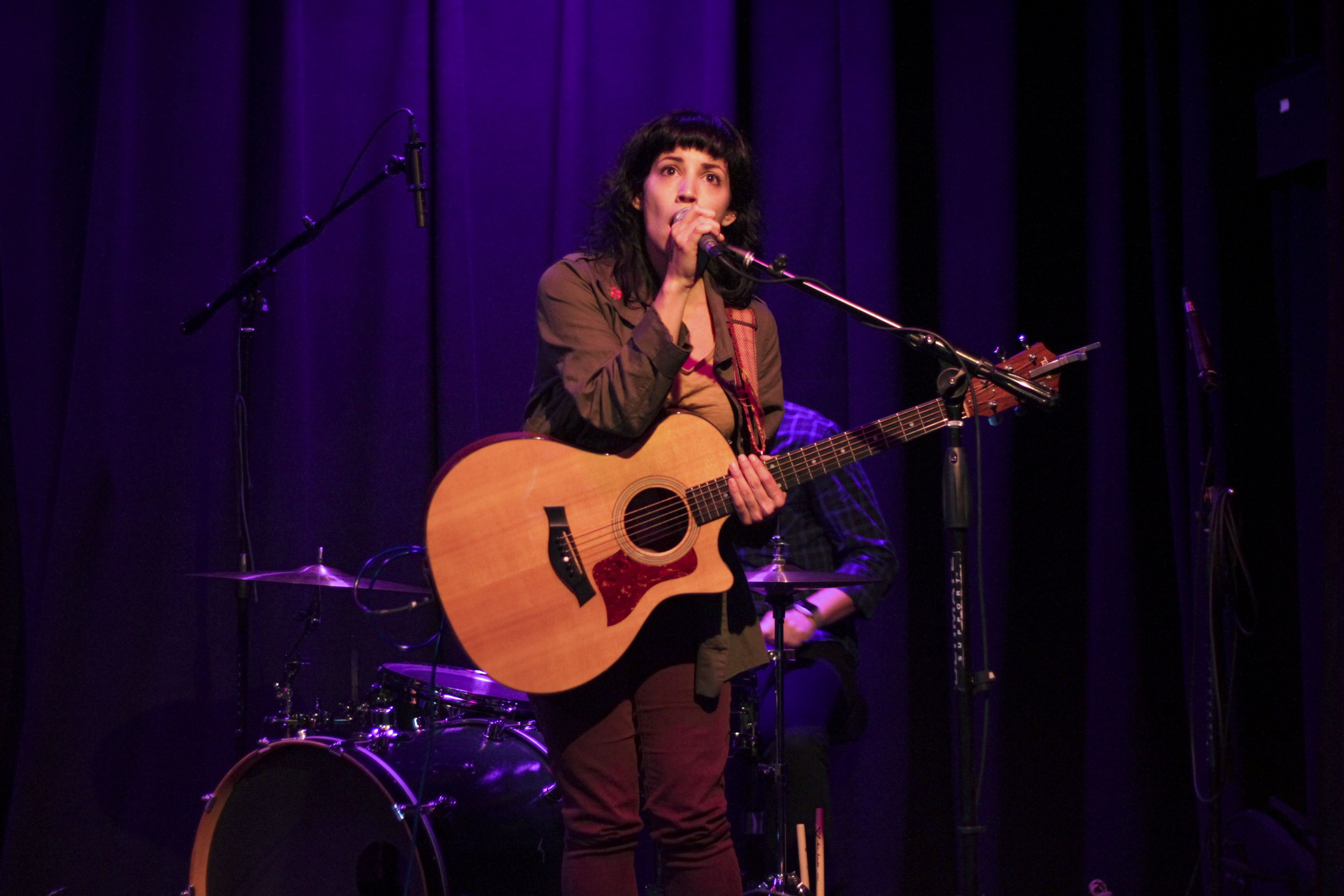 Breaking the trance created by Pinto Madigan, singer-songwriter Kate Diaz took the stage, and despite lingering traces of a cold, impressed audience members with her precociously soulful voice (she’s only 20). Singing about the young love and the lock bridge on Massachusetts Ave., Diaz lightened the mood with nostalgic references to areas in Back Bay.