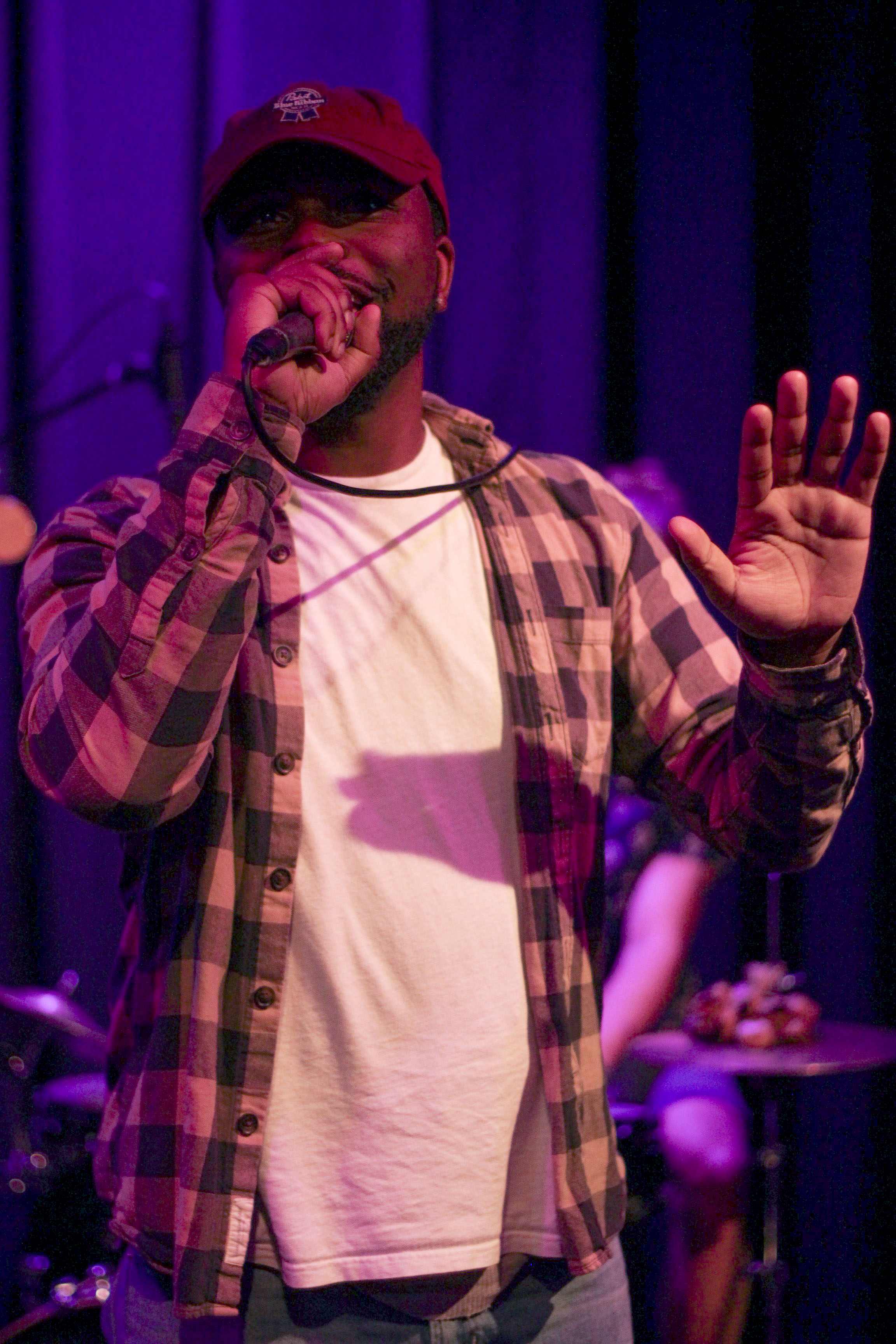 Rapper Latrell James completely changed the vibe of the show with his set. Whisking the folding chairs off the floor, audience members made room to stand in a semi-circle around the stage. His magnetic disposition and jazz-infused songs made audience participation easy — people clapped and sang along when prompted by James.