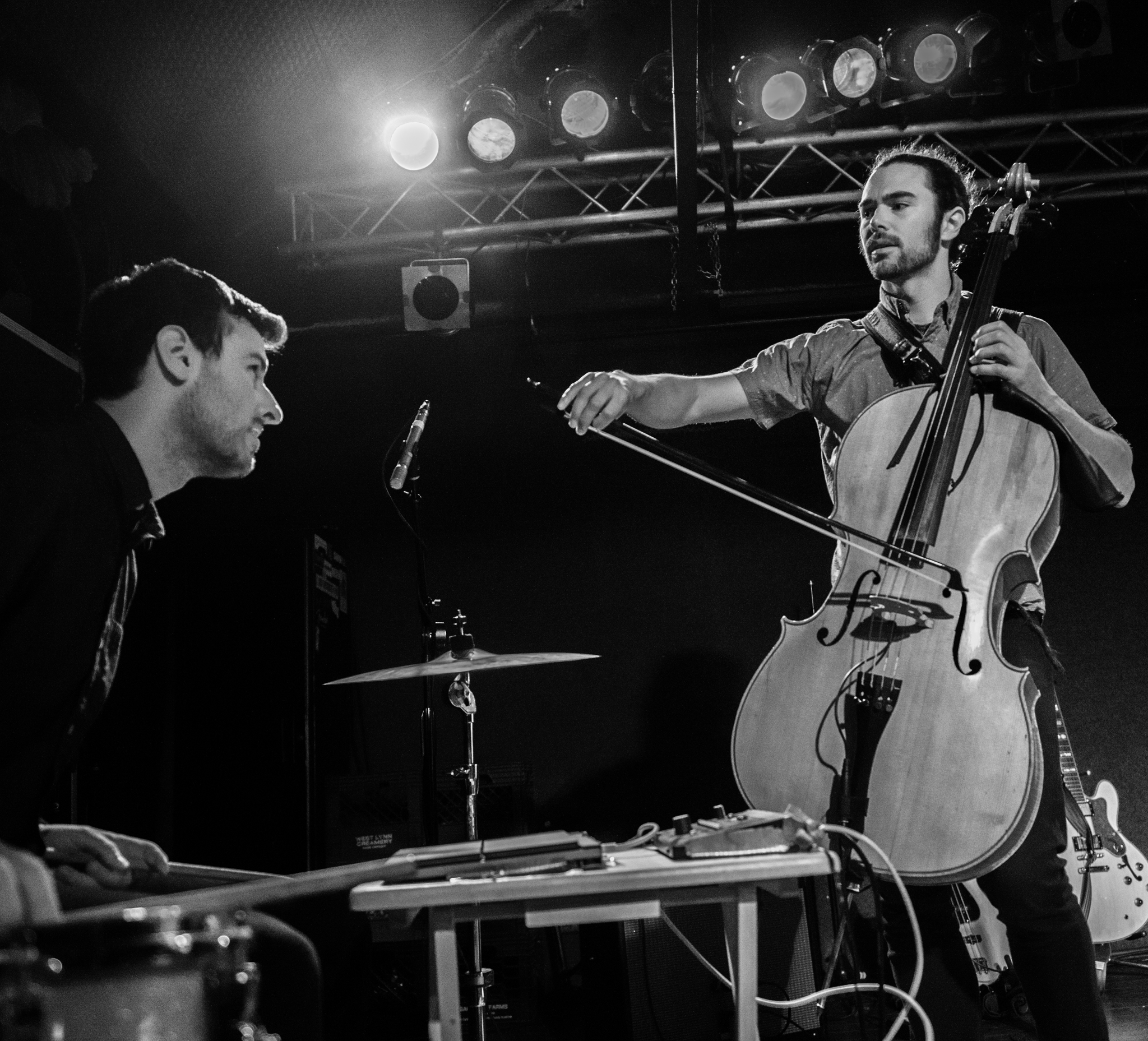 Jones produced colossal sounding drums that drove Harrington and Wright’s melodies zealously forward, then all of a sudden the drums vanished, highlighting wistful harmony. Jones often dialed it back to paint the scene with subtle cues, inspiring images of abandoned mills and long dark streets. He provided a dreamy foundation on which Harrington’s guitar danced and Wright’s cello blossomed. Liz Vaughn, another new addition, sprinkled in keys and light vocals, enriching the sound just as a world-class chef would carefully season a dish.