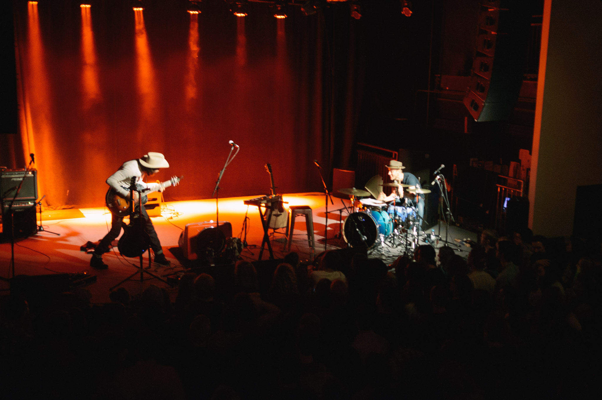 Shakey Graves snuck on stage for a final pre-show tune up. “Can I get more drum?” he shouts to the dark. And then to the audience: “You guys want more drum? Let’s party with this drum!”