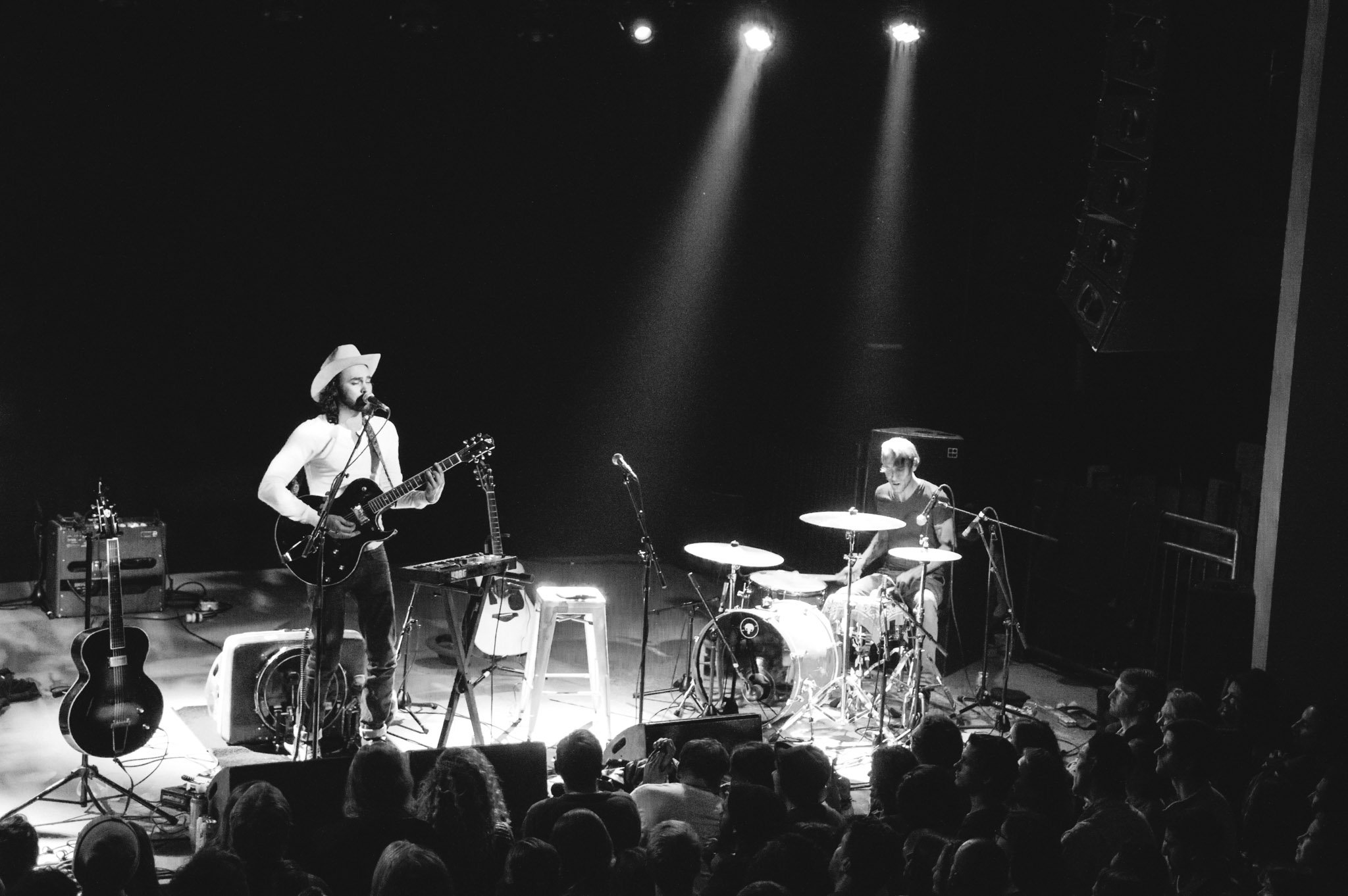 Sporting a tan felt cowboy hat and jeans rolled up at the ankles, Shakey stepped up to the pedals of his handmade suitcase-shaped kick drum before breaking into “Built to Roam.” Shakey’s simple, sincere attitude shone via silly jokes and playful asides. Hysterical and honest banter – for example, he introduced “Pansy Waltz” with, “That’s how babies are made. Through waltzing!” – littered the performance throughout the night.