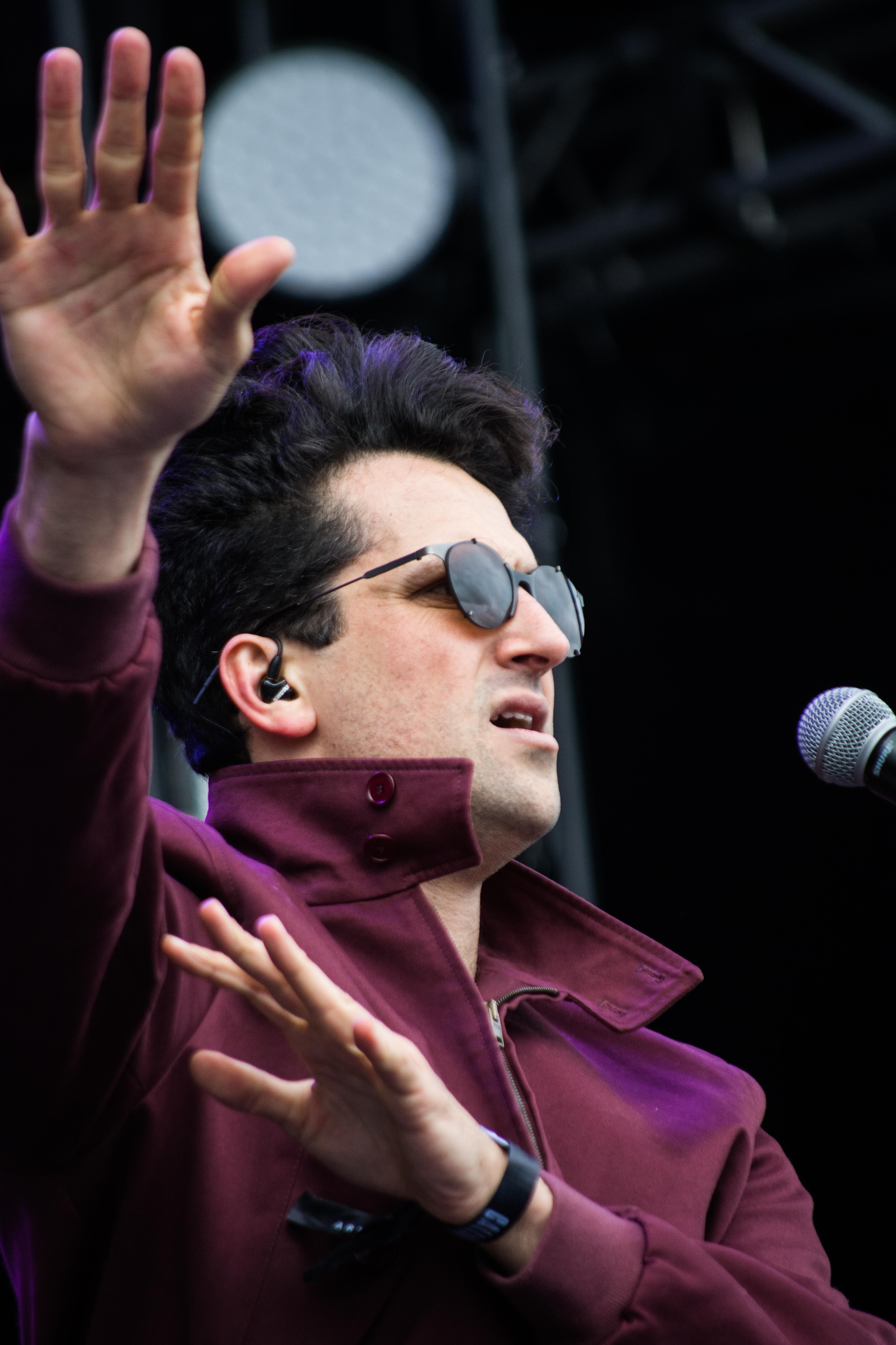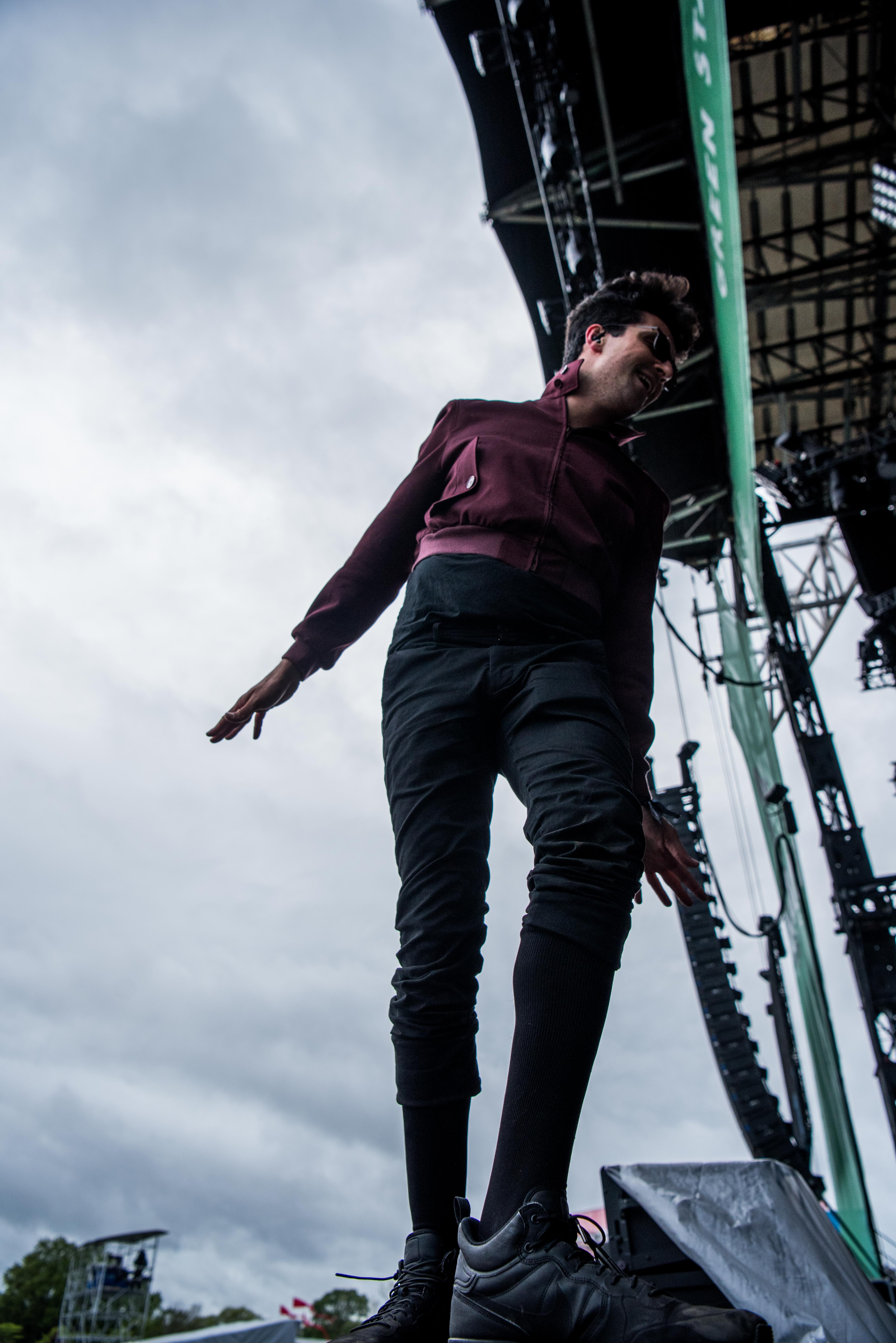 In shades, a maroon bomber jacket, and high-waisted black pants, Francis Farewell Starlite (is that a real name?) looked pretty damn small on the mammoth that was the Green Stage. His stage setup was minimal: just a microphone up front, an electric keyboard, and a little black table manned by a DJ in the back corner.
