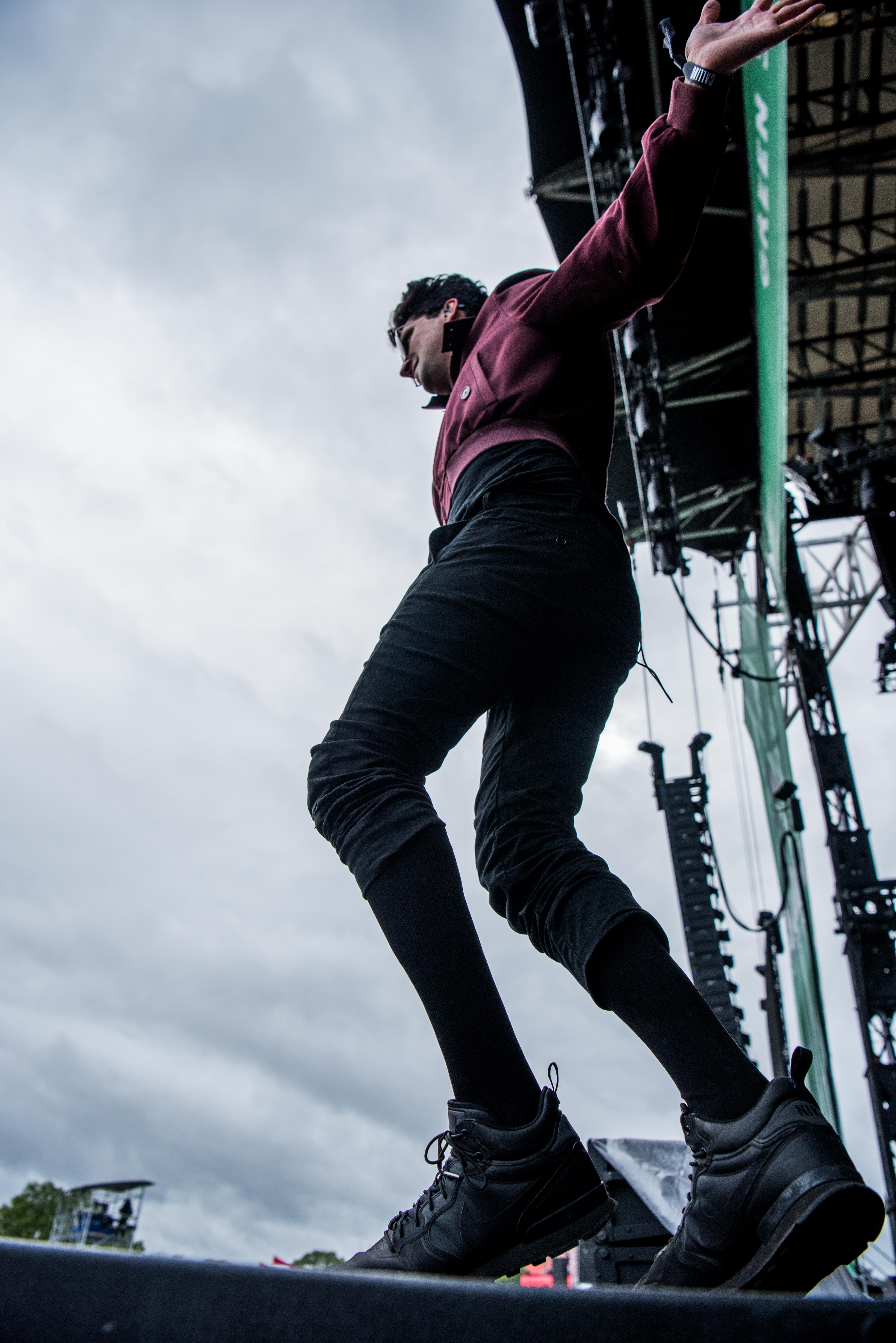 As the lights from Sigur Ros’s set illuminated the cloudy sky, Chicago’s Chance the Rapper brightened the crowd that stretched back to the main entrance with his upbeat positivity and whip-fast hooks. Reminding the audience several times throughout the night how grateful he was to be there, Chance seemed at ease on stage. He leapt across the stage all throughout his set, sprinting through the crowd at one point and climbing the scaffolding above the sound tent—much to the delight of the fans, hurrying to get Snapchats, reaching for the rapper’s hands. It looked exhausting, but he spit lines with such enthusiasm it came across as effortless.