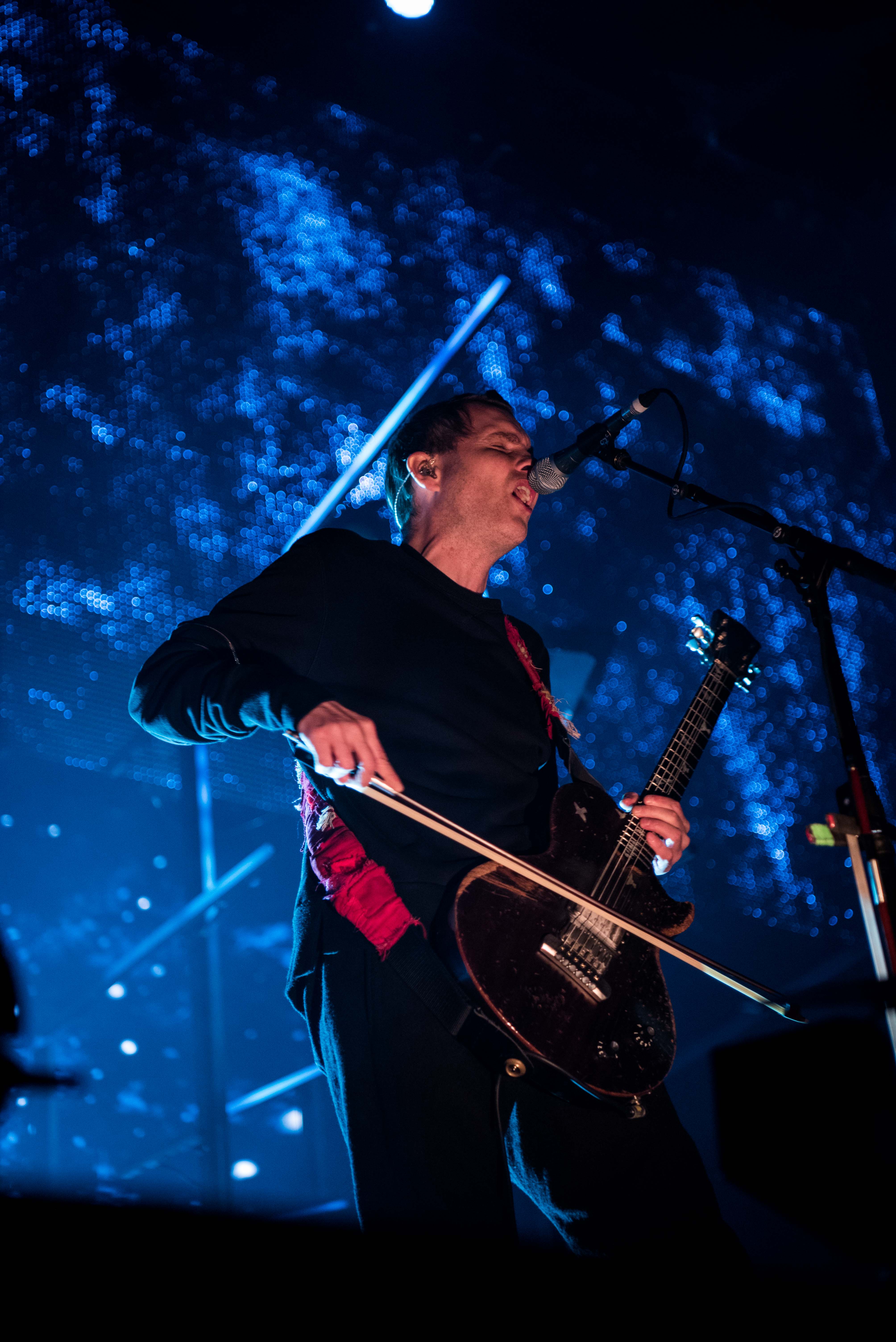 The band came onstage to “Vincent,” albeit foregoing the wavering guitar note intro for some pre-recorded fuzziness that ushered Toledo back into the cheers. The instruments clumsily joined in. But once Car Seat Headrest got deeper into their set, everything seemed to come together: Toledo playfully danced around the mic, guitarist Ethan Ives leaned into each strum, and the crowd thrust their fists into the air accordingly. A glance at Toledo might leave one assuming smallness—skinny, pale, and decidedly inward, he doesn’t strike you as having the biggest voice. But he unleashed his soul into each song, diving into the depths of his deep range and releasing guttural snarls matched by the aggressive instrumentation.