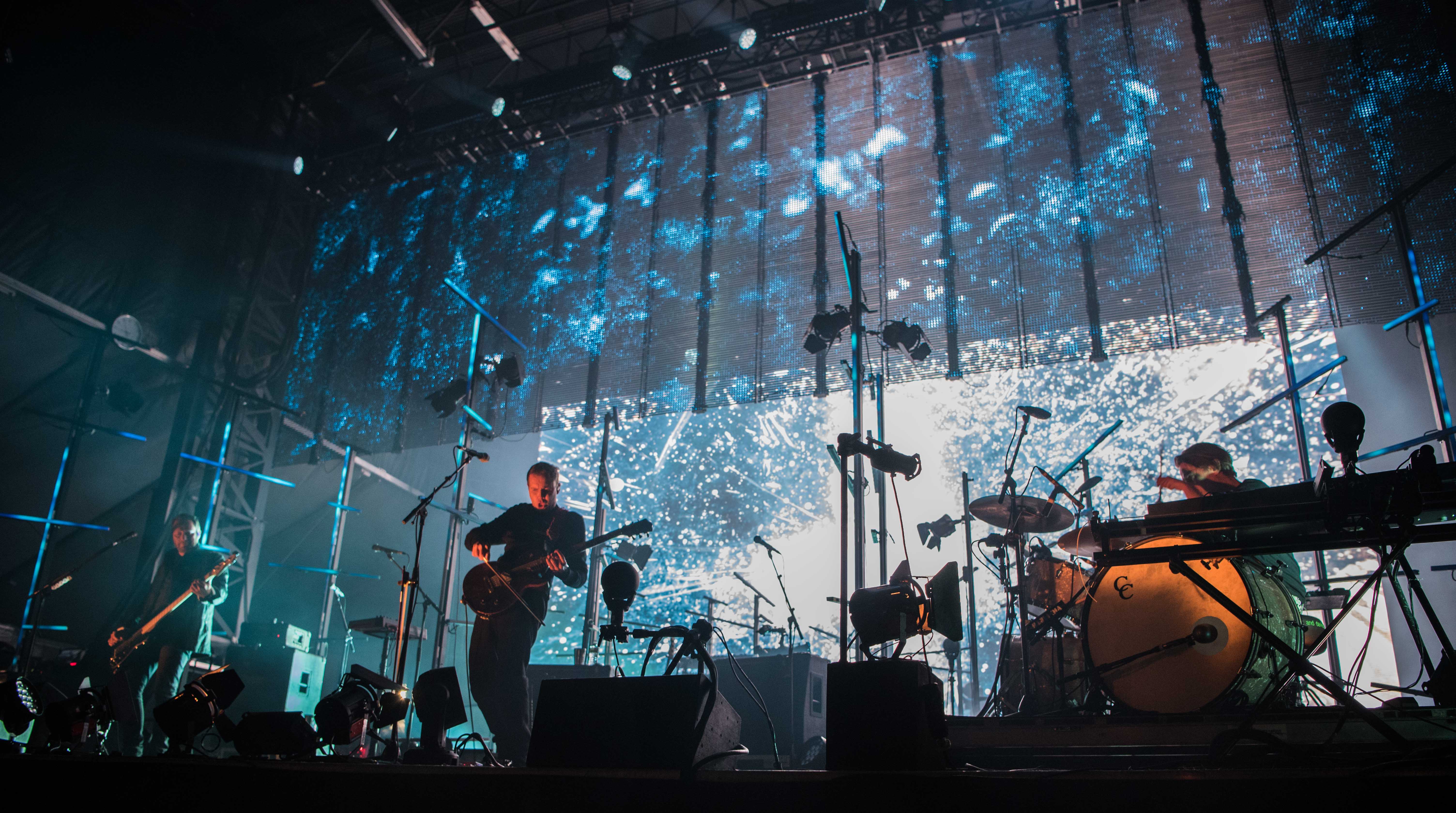 The first half of Bon Iver’s set was almost all of 22, A Million, save for the very first and last tracks. Translating the complex production that accompanies the heavily modulated and glitchy experimental folk songs seemed too difficult to pull off live, but Vernon’s finesse with his tools made even the most garbled sounds come across beautifully. In fact, hearing some of 22, A Million live helped illustrate the profound uncertainty in the lyrics lurking beneath the glitchy noises Vernon is belting through a vocoder. The visuals helped—flashing the symbols and characters used in the song titles from 22, A Million along with bursts of colored light created a mellow but hopeful atmosphere.