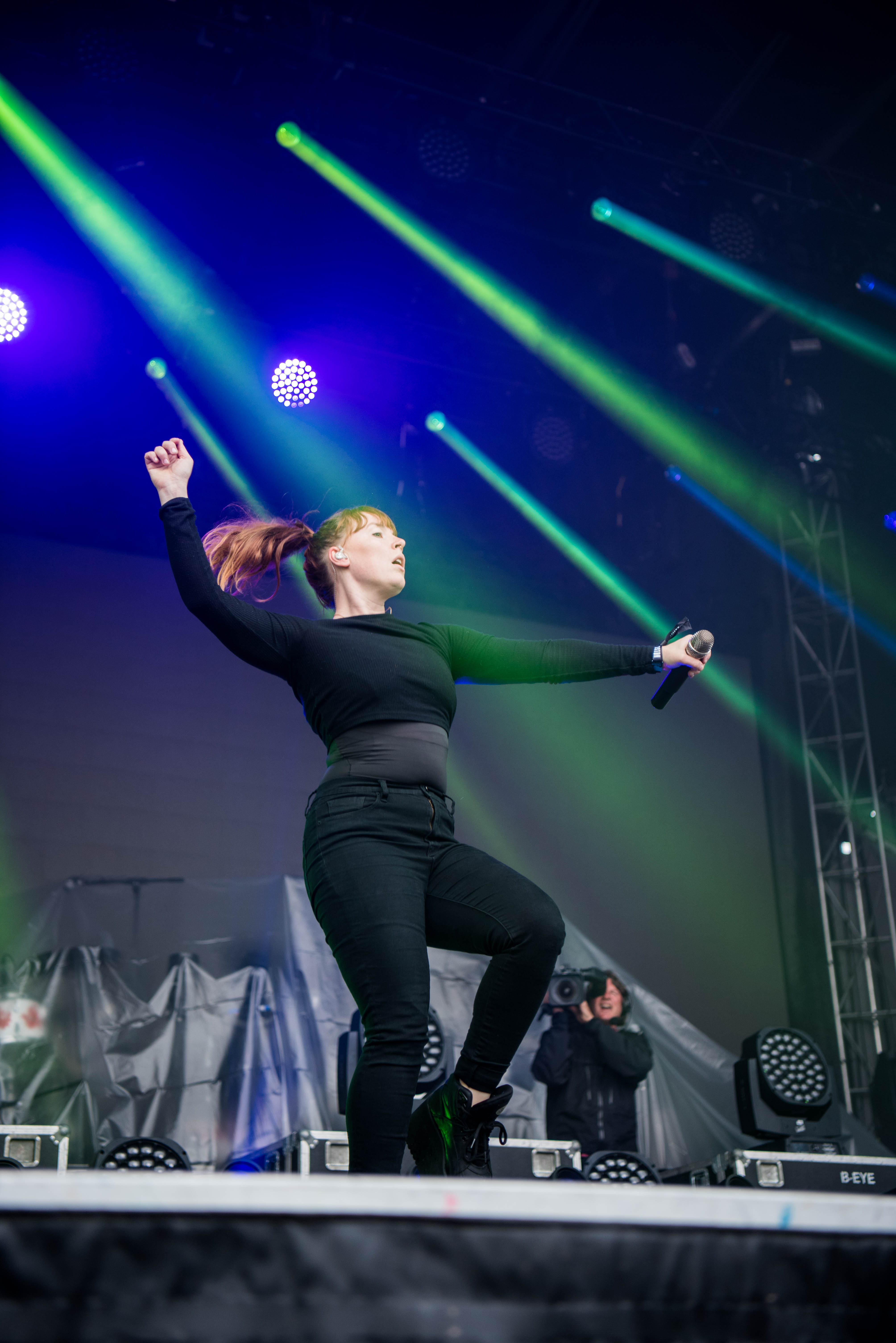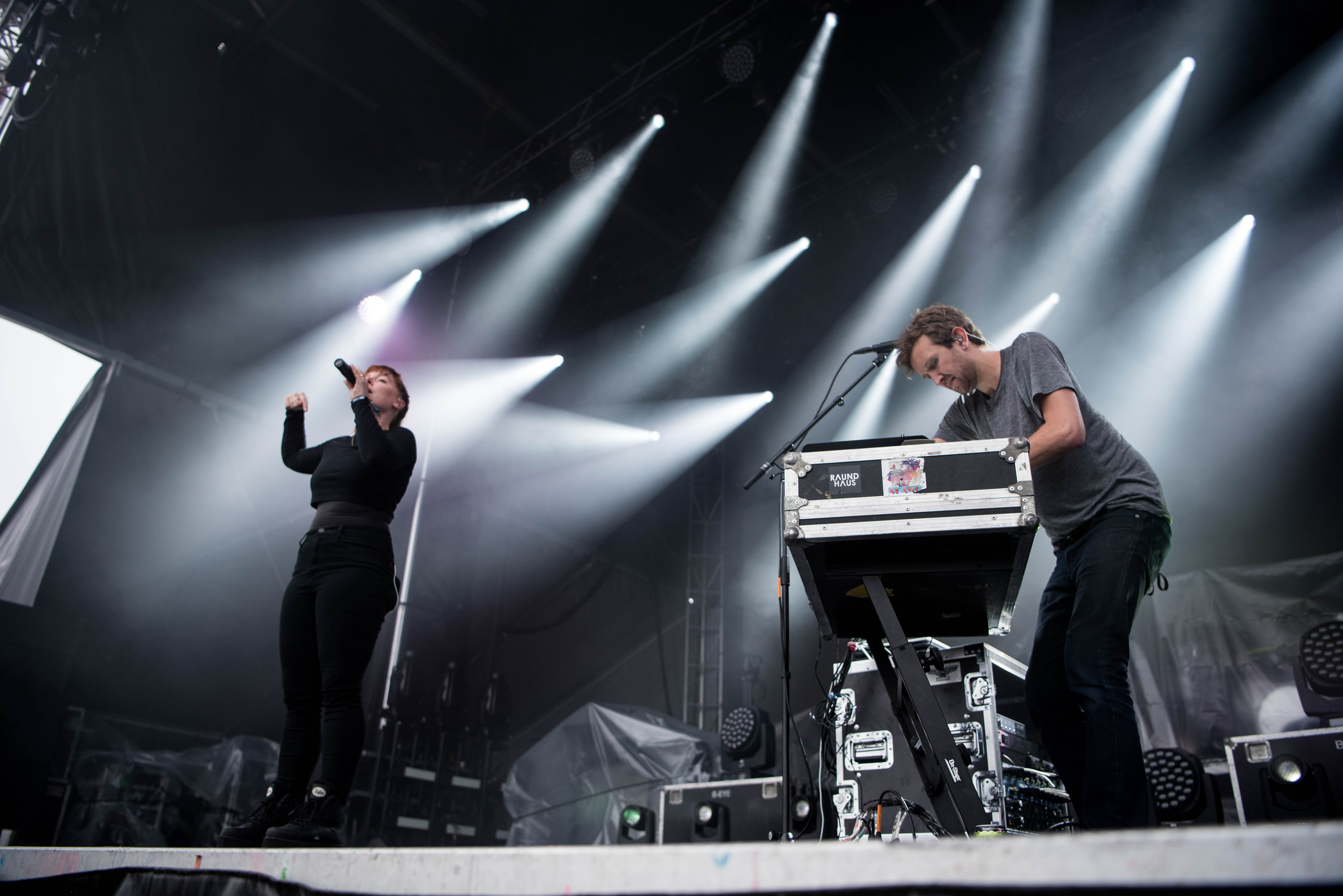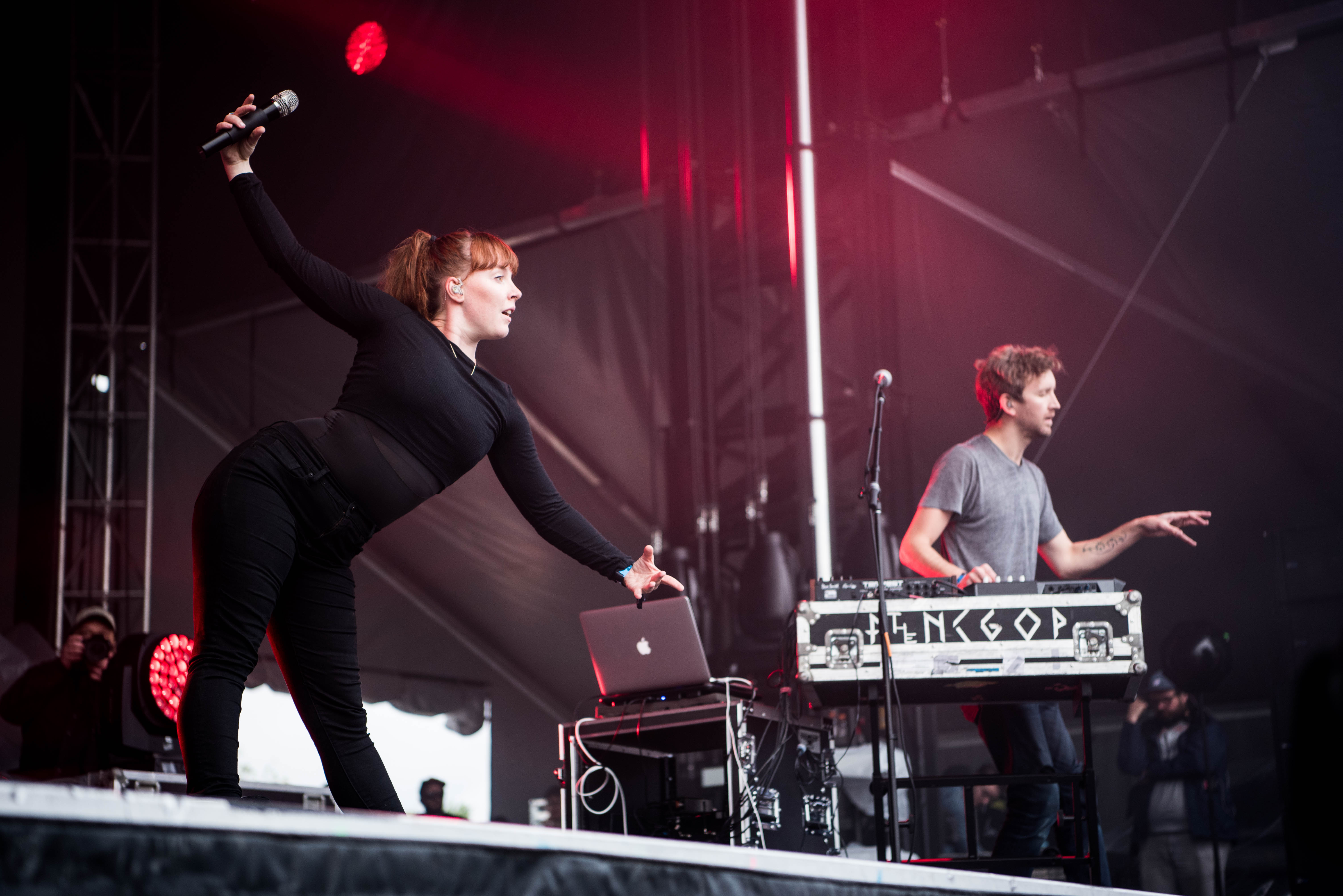 Sylvan Esso’s Amelia Meath and Nick Sanborn ushered in Friday evening with slick, dance-y beats and pure fun. Never mind her breezy songbird vocals, a smiley Meath jumped around—absolutely glowing—in black, four-inch platform shoes, and had no trouble performing an arabesque or bouncing on her tippy toes to the beeps and clicks of “Kick Jump Twist.” We saw a darker interpretation of the duo’s music in producer Sanborn, who legitimately looked like he was in physical pain as he twisted knobs, his face scrunched in anguish every time he turned to face the crowd.      Â
