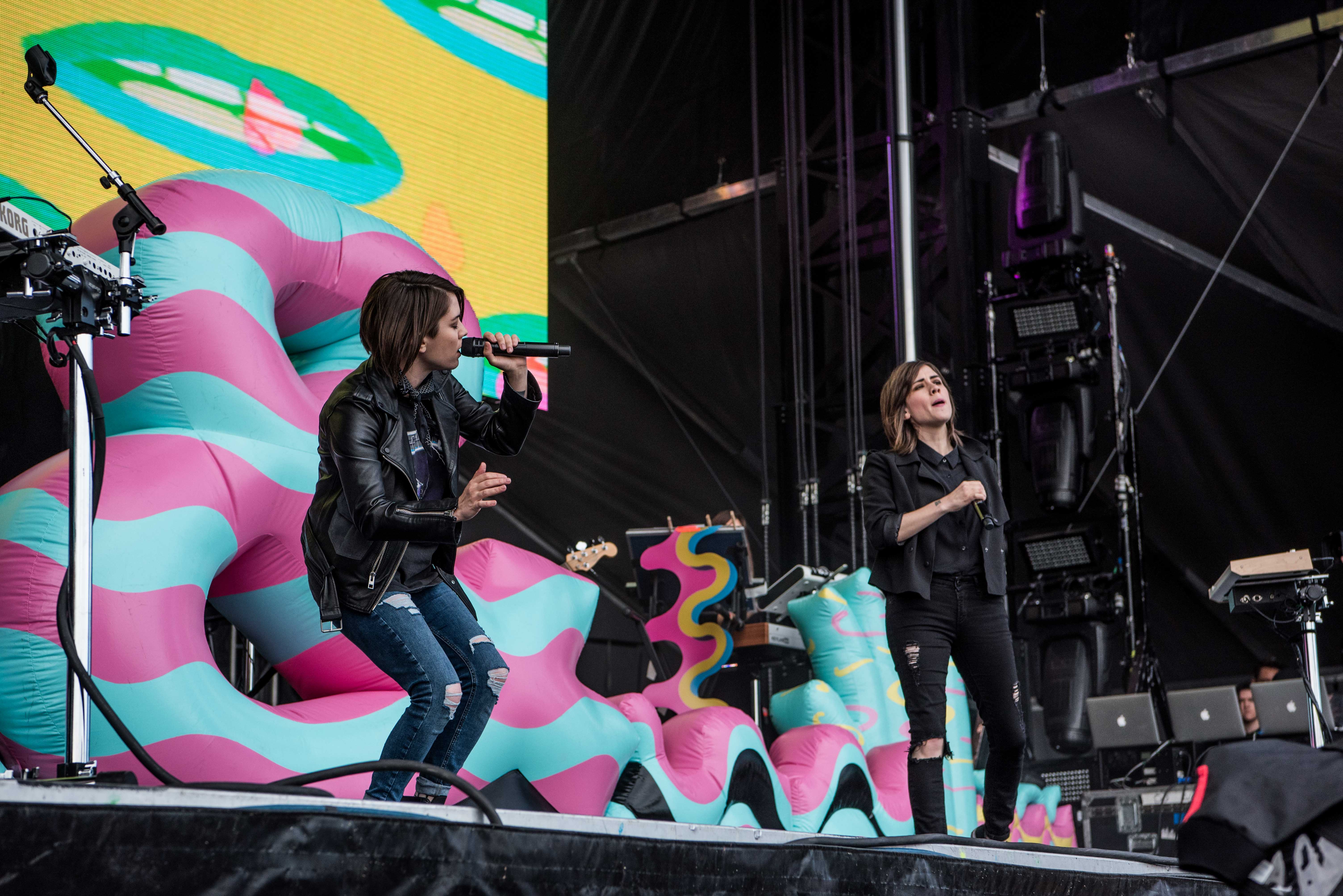 In between tracks like “Back in Your Head” and “Alligator,” half of the set’s fun was had when the duo whipped out their sardonic, self-effacing sense of humor to banter on queerness, marriage, and Harry Styles. And in what definitely wasn’t the first Harvard reference of the day, Tegan quipped, “Sara wanted to go to law school at Harvard. She did not apply herself, so instead she ended up in a band with me.”