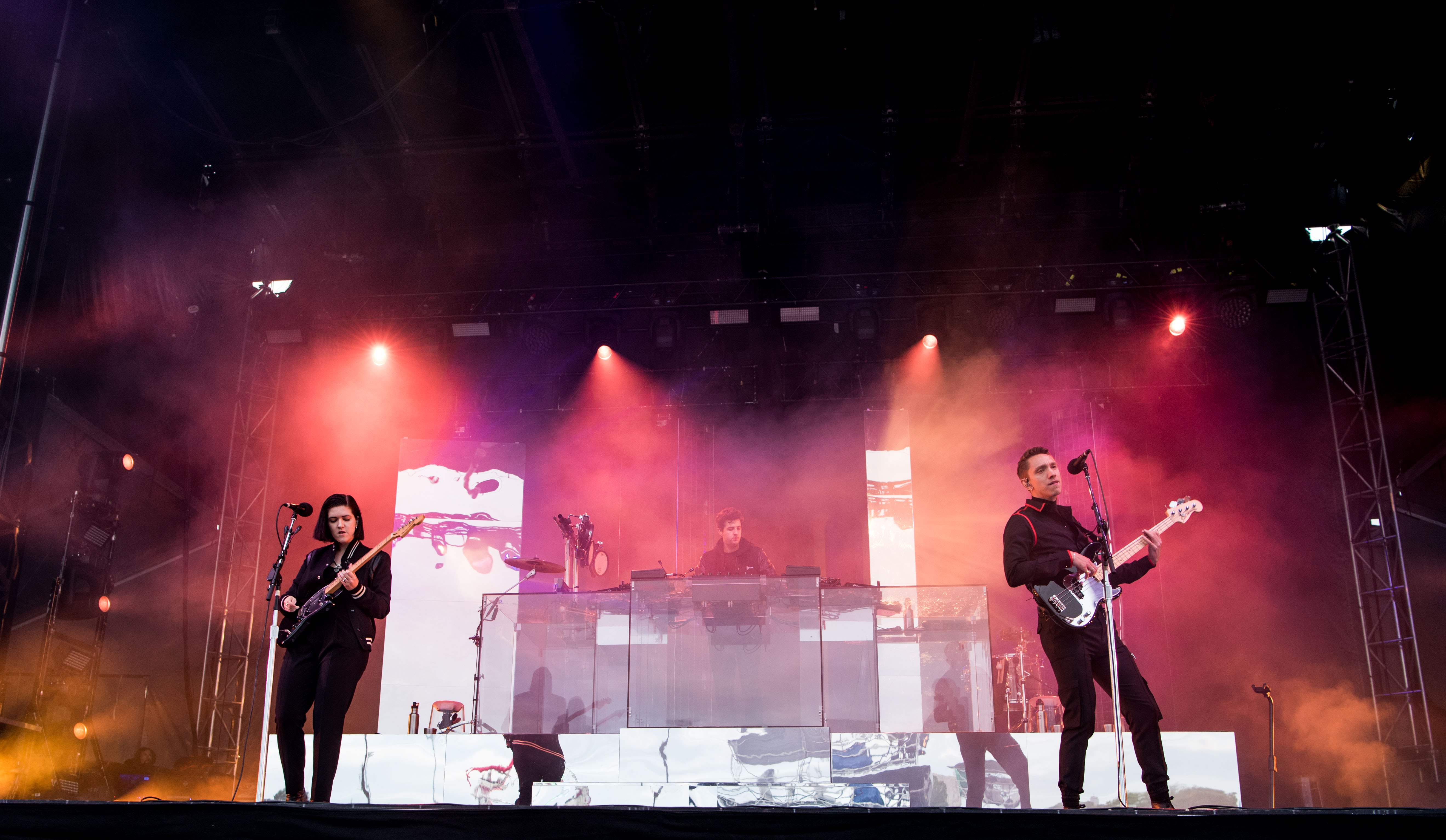 Though a lot of their set was cheesy and gimmicky—neon parallelograms hovered over the band, cycling white, pink, and at one point rainbow as Healy swiveled his hips a la Presley, jerking his arms around to the delight of his fans—I couldn’t help but find myself singing and dancing along.