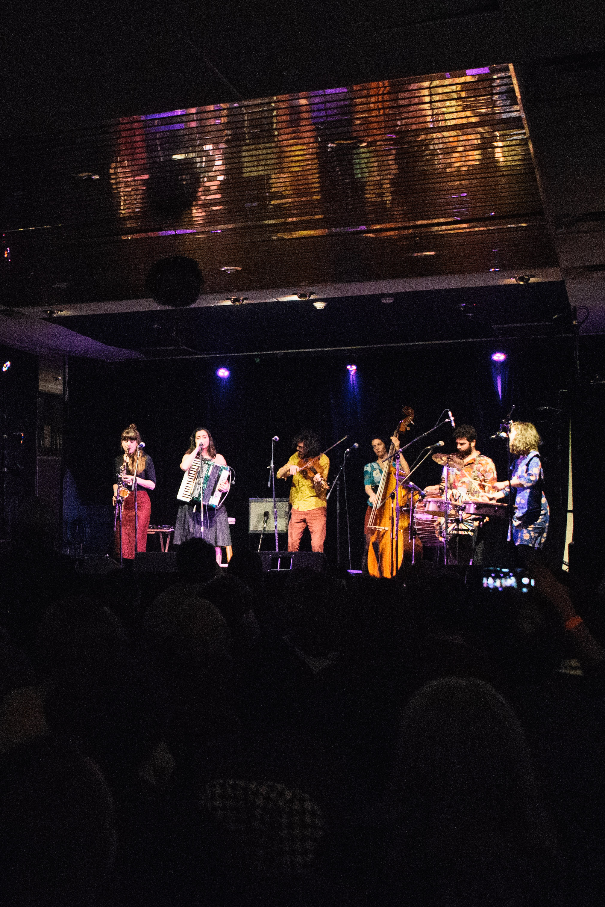 Genre-bending Collectif Medz Bazar‘s jam band origins came through during their Somerville performance; band members played hot potato with their instruments, swapping places and musical duties without disrupting the flow of their unique blend of Middle Eastern sounds.
