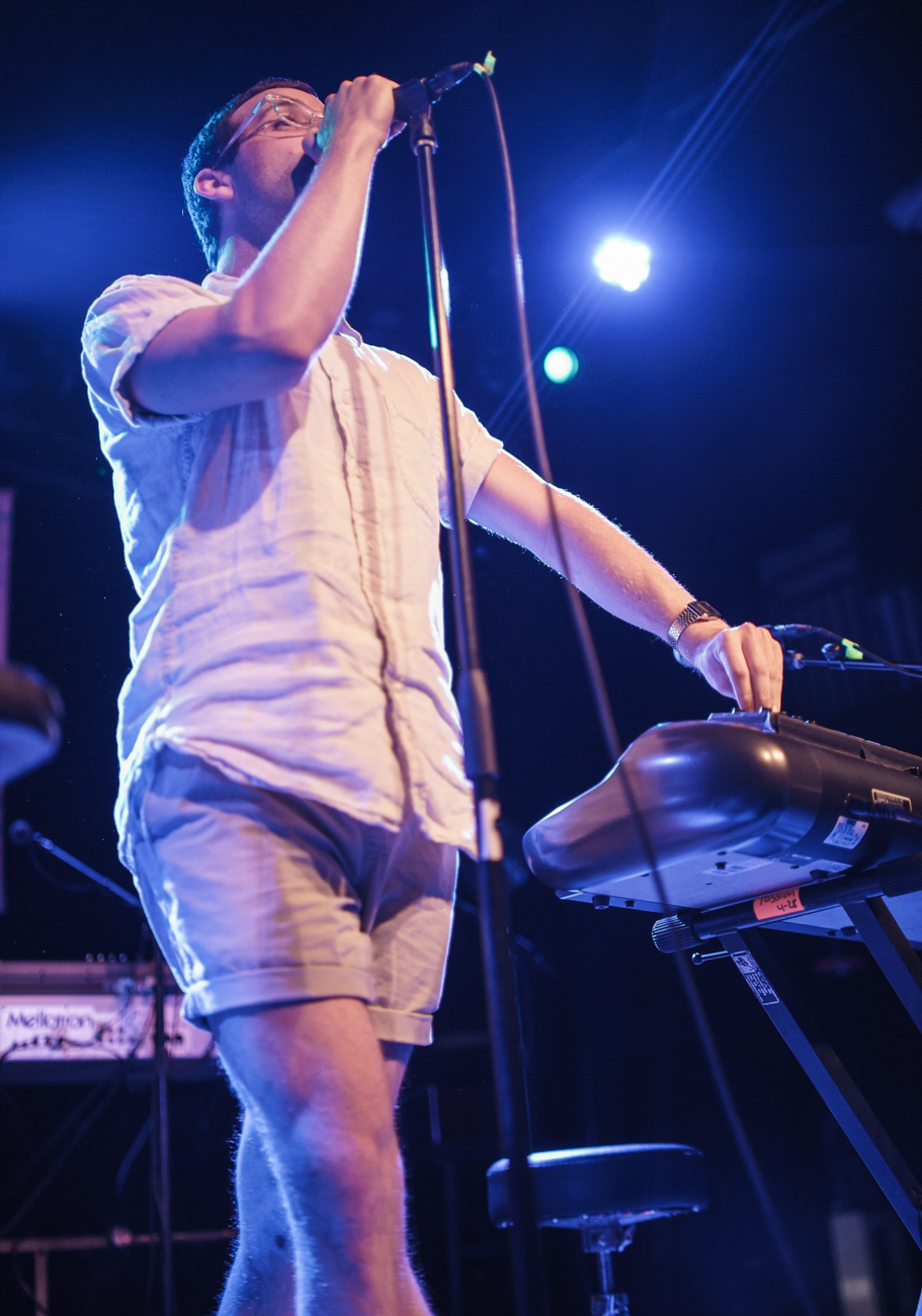 Sporting a striped button-down shirt and a tattered baseball cap, singer and chief songwriter Michael Angelakos looked like an audience member who just happened to stumble onstage and nail a four-octave vocal range. He danced around with a casual confidence and seemed to carry an unrelenting smile. Alongside him, live members Chris Hartz, Aaron Folb, Giuliano Pizzulo, and Ray Suen floated from hit to hit, tackling old favorites early on in the set like “Little Secrets” and future summer sing-alongs such as Kindred’s second track, “Whole Life Story.”