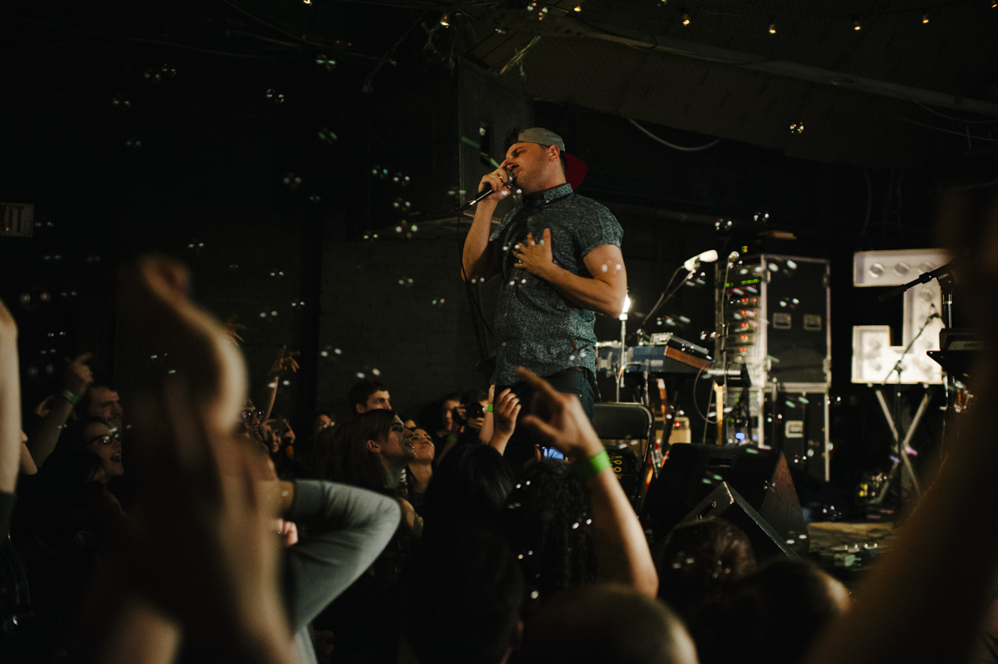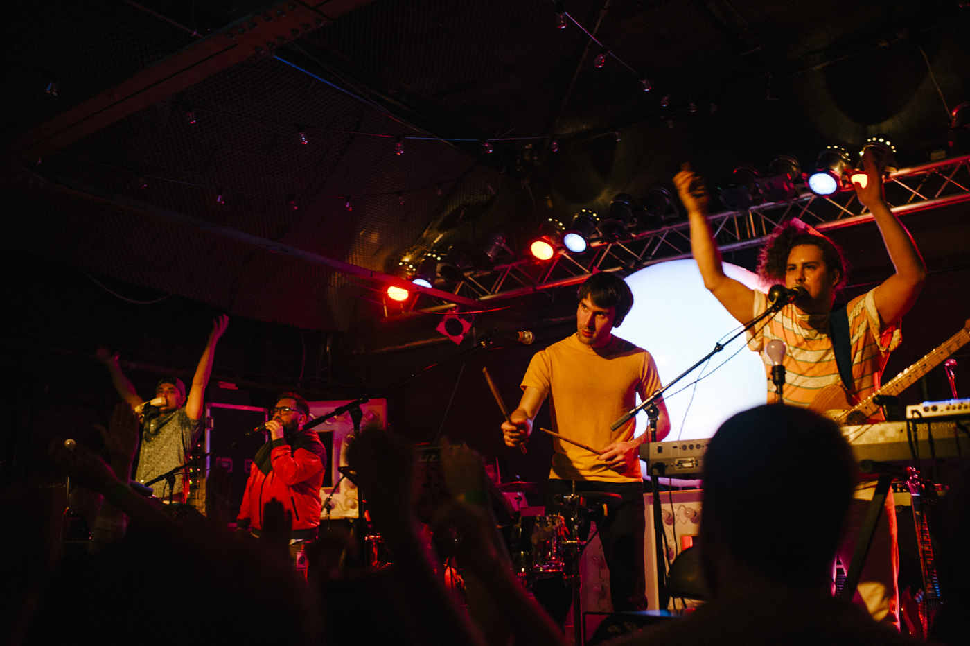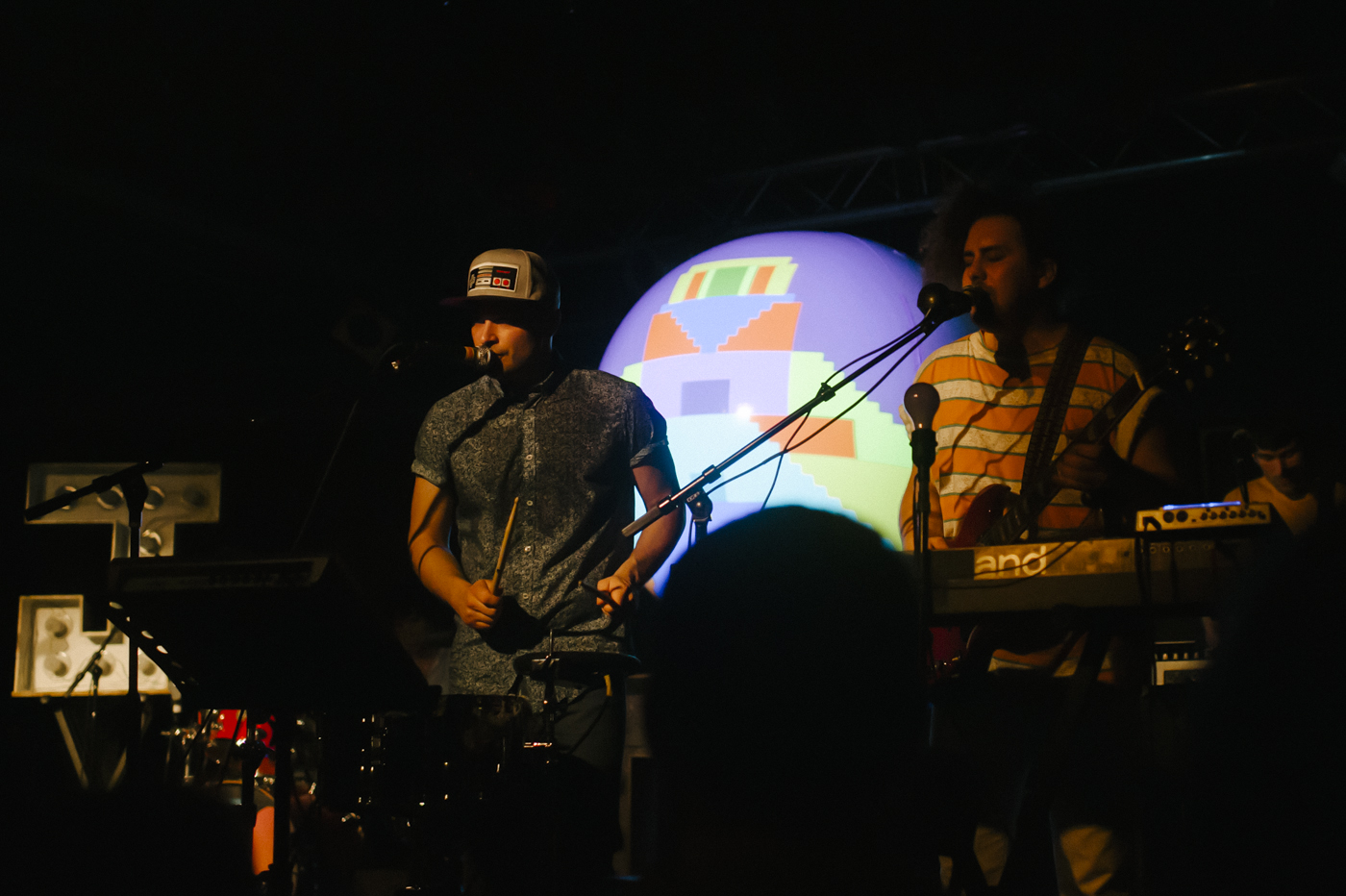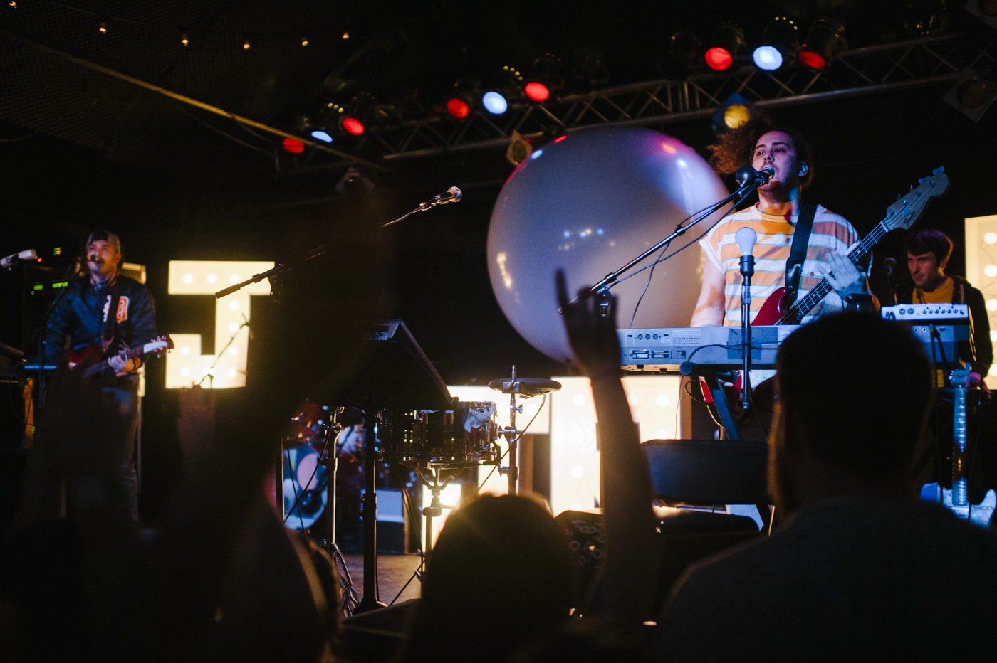 As if their jumping into the crowd wasn’t engaging enough, Jr. Jr.’s stage was armed with two large pairs of “J”s and “R”s filled with lightbulbs, and each member’s setup was also accompanied by a bare bulb synchronized with the stage lighting. At the center was a large balloon ball with an internal projector that flashed different animations and scenes for each song. It was one of the more elaborate setups for a small scale show I’ve seen to date. And on top of all the lighting and visuals, they made great use of their fantastic little bubble machine – together creating a great multi-sensory experience.