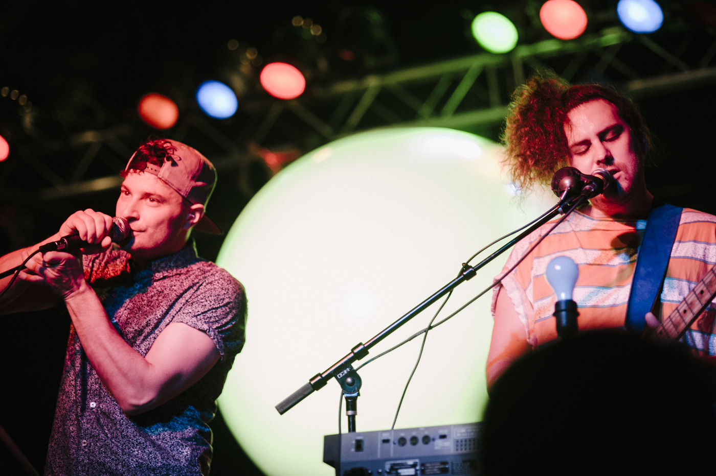 On Thursday night, Jr. Jr. showed a sold-out Boston crowd at the Brighton Music Hall why this Detroit duo-turned-quartet doesn’t deserve to be overlooked. Daniel Zott and Joshua Epstein, the founding members of the band and dual vocalists, carried themselves with the confidence of virtuoso performers while simultaneously managing to bring that flair of spontaneous and excited energy that propels new young acts into the hearts of their fans. The banter and interaction with the crowd came very easy for Zott and Epstein, and their appreciation for their fellow bandmates on stage was clear to all. They spent time asking each other what they think of when they think of Boston, and made up funny self-proclaimed “bullshit stories” throughout the set. It makes a huge difference to have a band genuinely wanting to engage the listener with them and their music. In this spirit, both Zott and Epstein took opportunities throughout the show to jump down into the crowd, breaking down that barrier between spectator and performer, and bring all their on-stage energy into a crazy dance party with their fans.