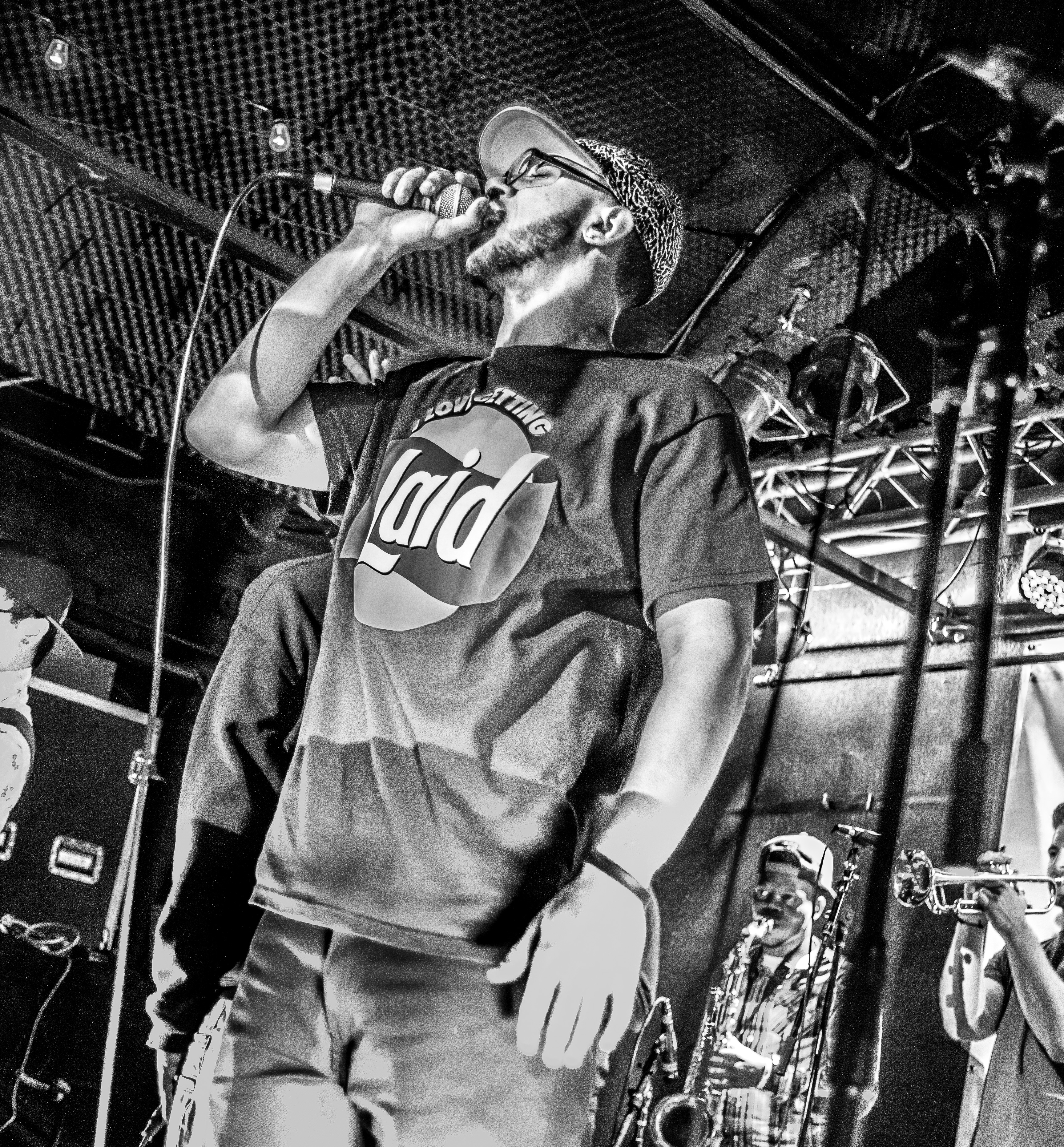 For a group that is first and foremost hip-hop oriented, Viva La Hop are not afraid to share the spotlight among its band members, giving their backing musicians ample solos to evince their talent. Appended to the finale of their first song is a sax solo by Nathan Berla-Shulock, a statement that says, we have two rappers at the front of the stage, but we are more than the traditional DJ/MC setup—we are a band.