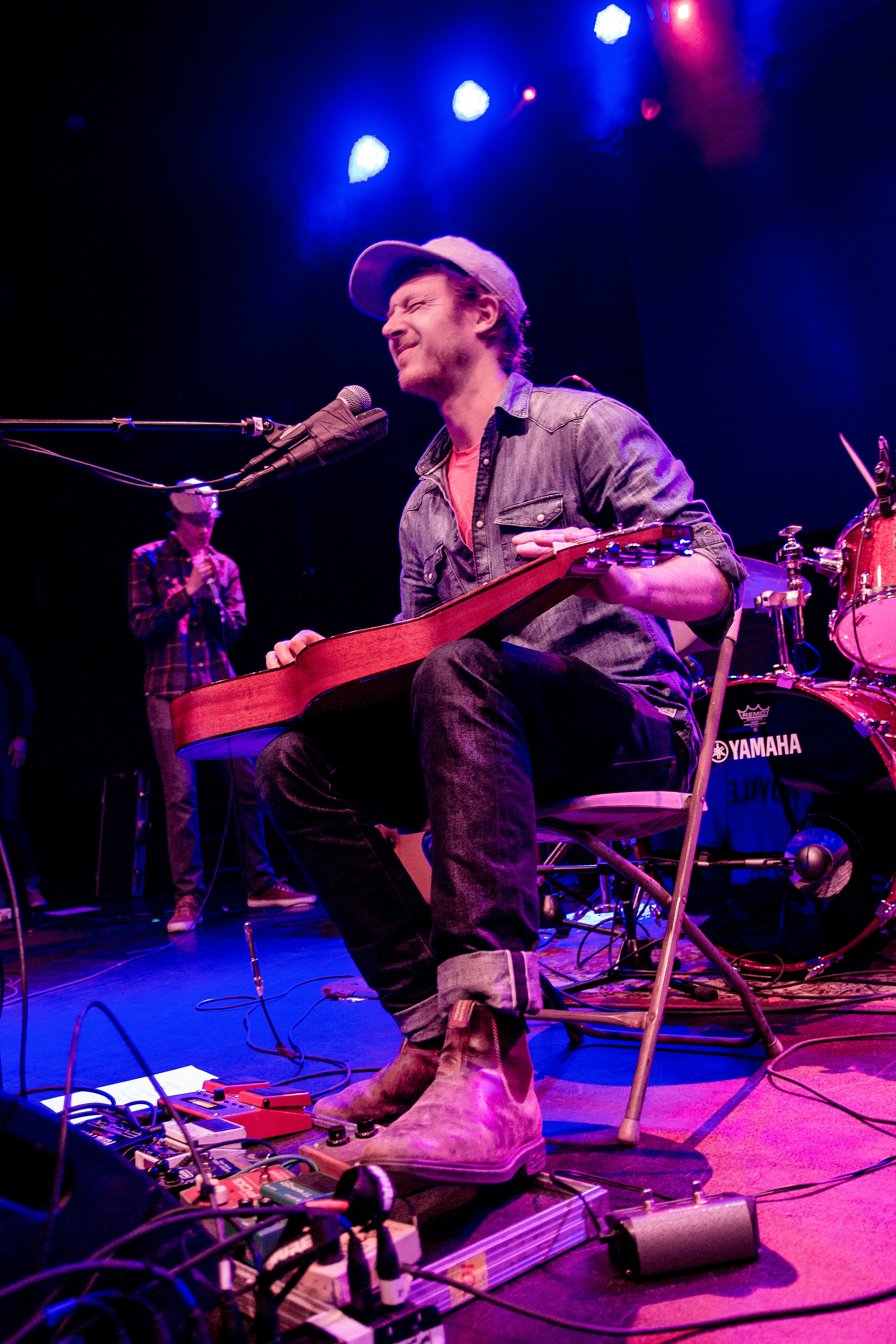 Current Swell lead singer and guitarist Scott Stanton wore a jean jacket and a grey baseball cap—a fittingly country ensemble for someone who bends melodies on the slide guitar. Guitarist and vocalist Dave Lang wore a plaid shirt and added howling harmonica like a lonely wolf to the moon.