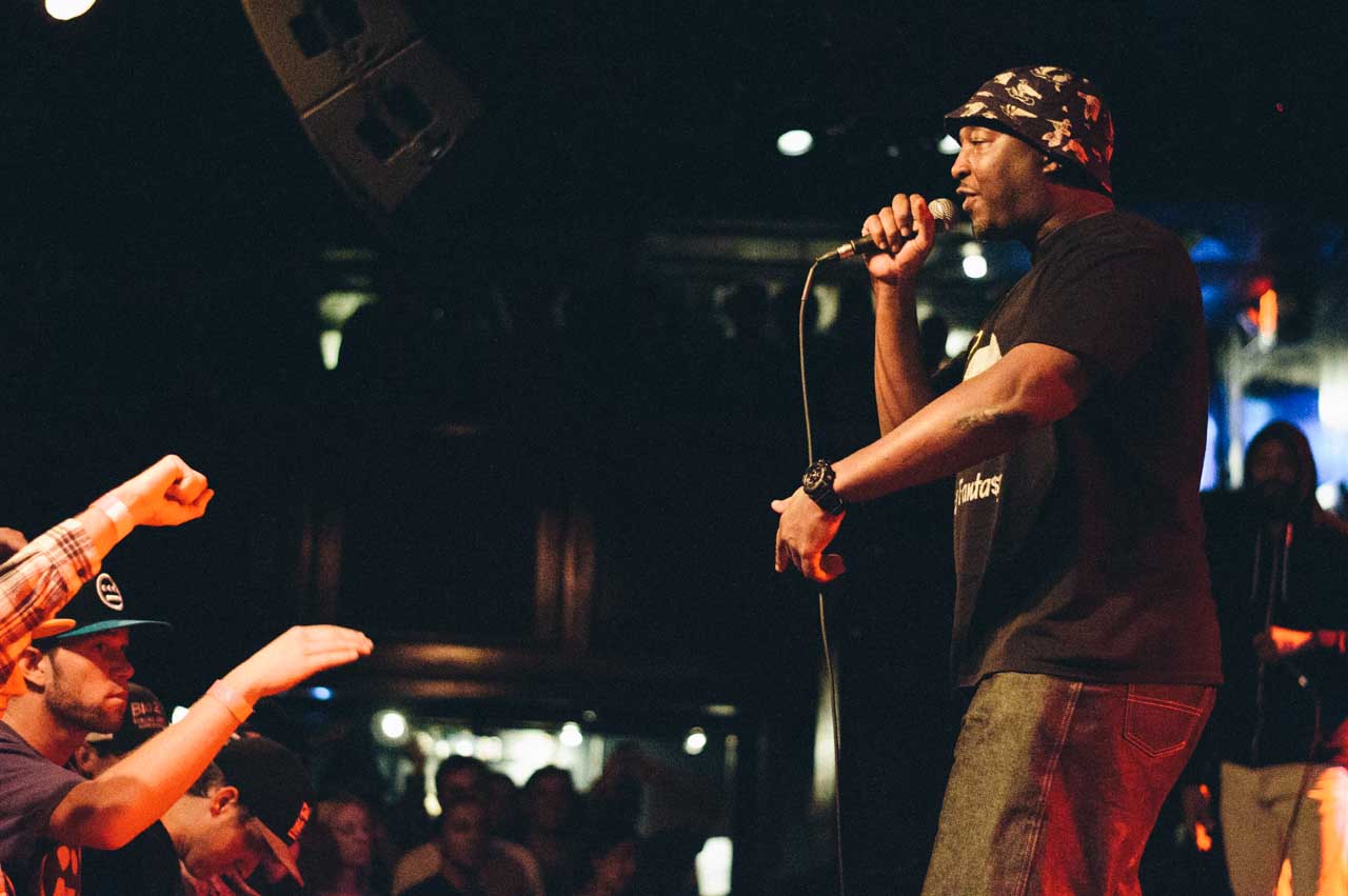 Though mostly everyone in attendance seemed to be in their late teens and 20s, the crowd thinned as the night played on (an unfortunate result of a 10:30 PM start time on a Wednesday night). There is something pitiable in watching an impassioned performance in front of waning numbers. Still, for an underground hip-hop group that formed almost a quarter century ago, there’s something to be said for drawing a moderately sized crowd in the middle of the week.
