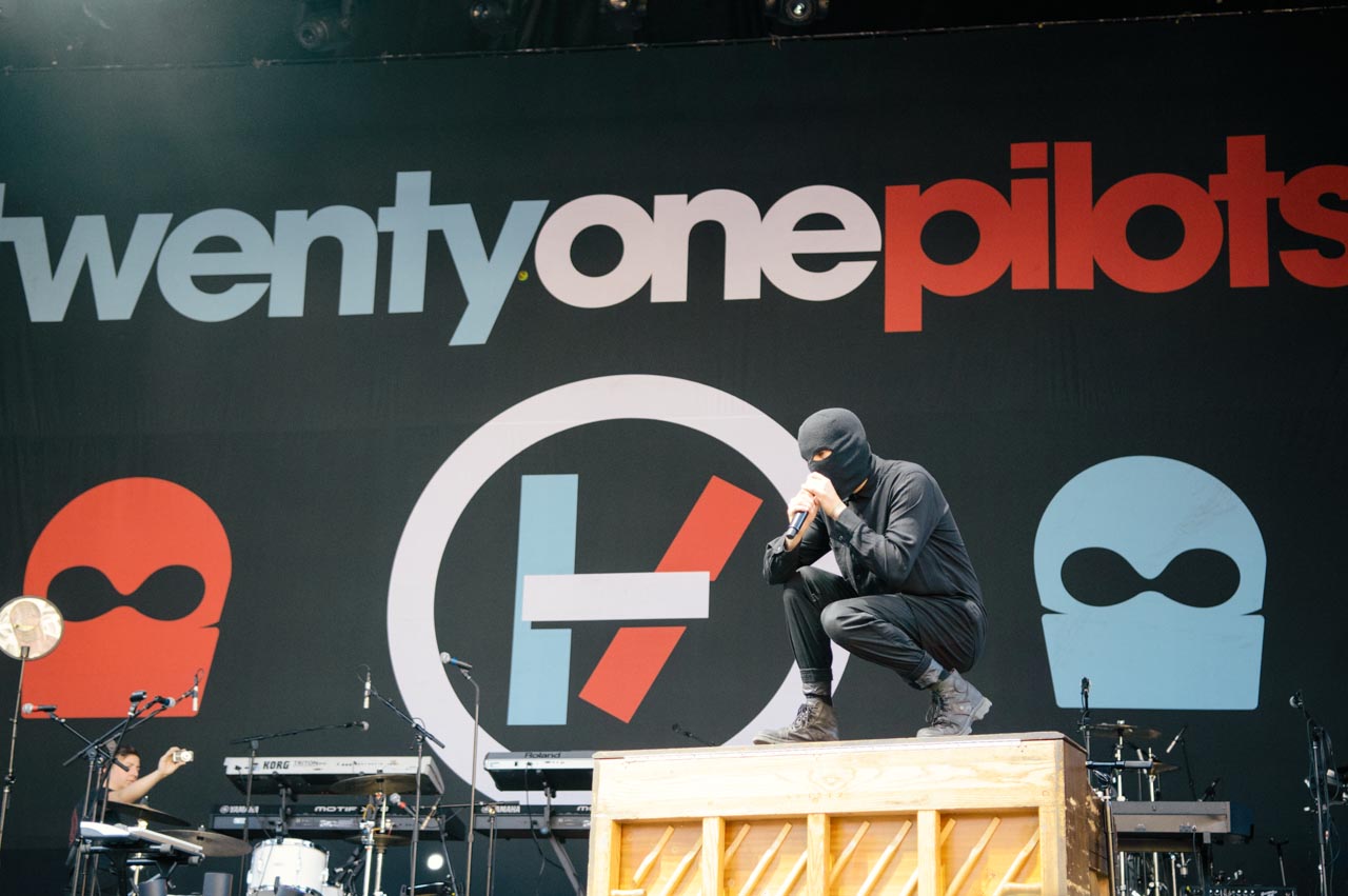 As Twenty One Pilots tumbled their way through their gymnastics routine, people climbed on their friends’ shoulders in festival fashion and sang along, air drumming with gusto.