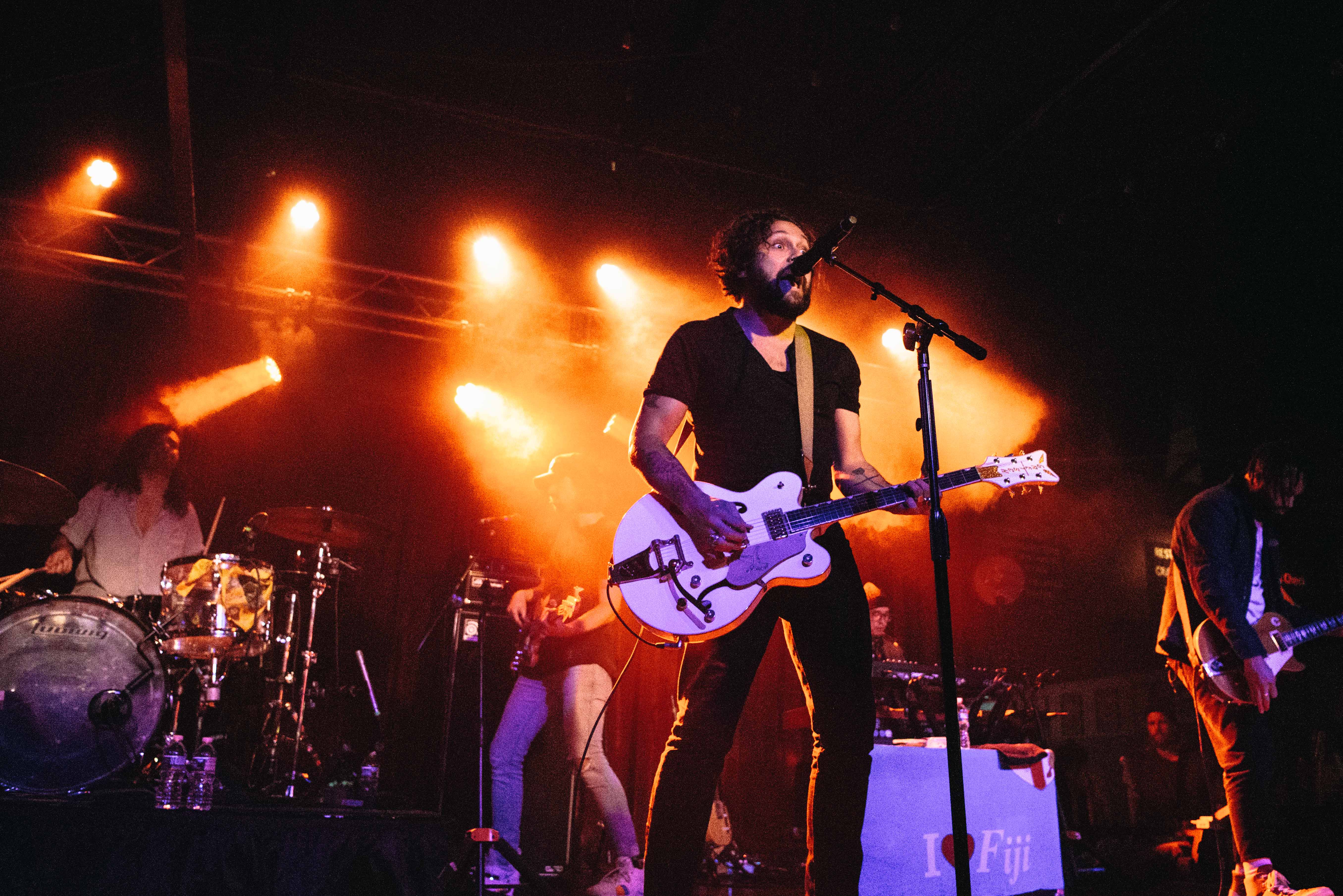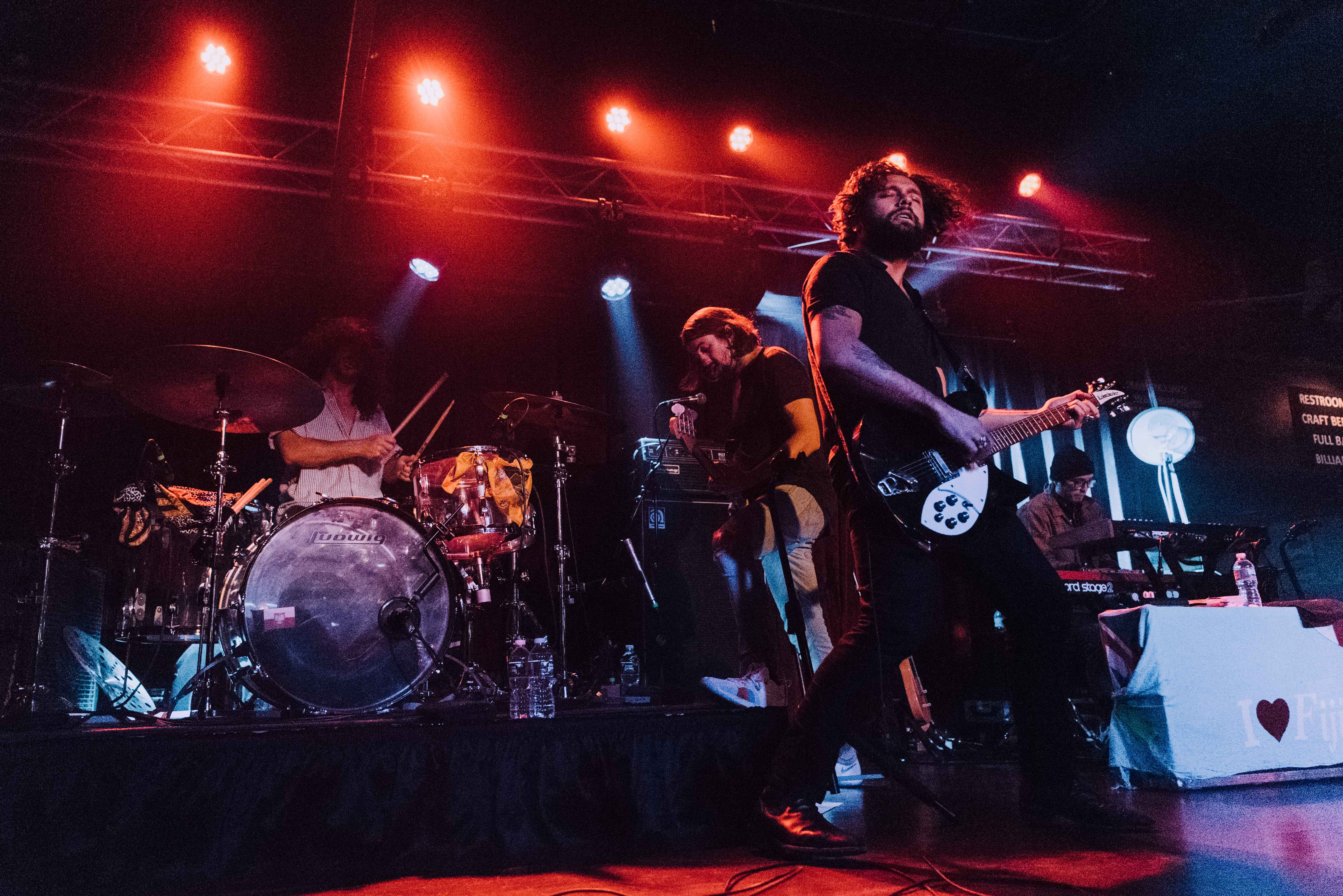 Wednesday night’s show made good on that promise. Brighton Music Hall was full, not quite sold out, but the band still played the 476 capacity venue like it was Wembley Stadium. Le’aupepe is a proper rockstar, wailing on his guitar, flexing, and thrashing an unkempt black mane during “The Heart is A Muscle,” only to push it out of his face when he returned to the mic for a verse. He’s also invested in the crowd, extending the mic to encourage a singalong, jumping on the stereo system to survey everyone, sitting on the edge of the stage to banter in between songs, and finally, during “Magnolia”, running through the crowd and hugging as many people as he could along the way.