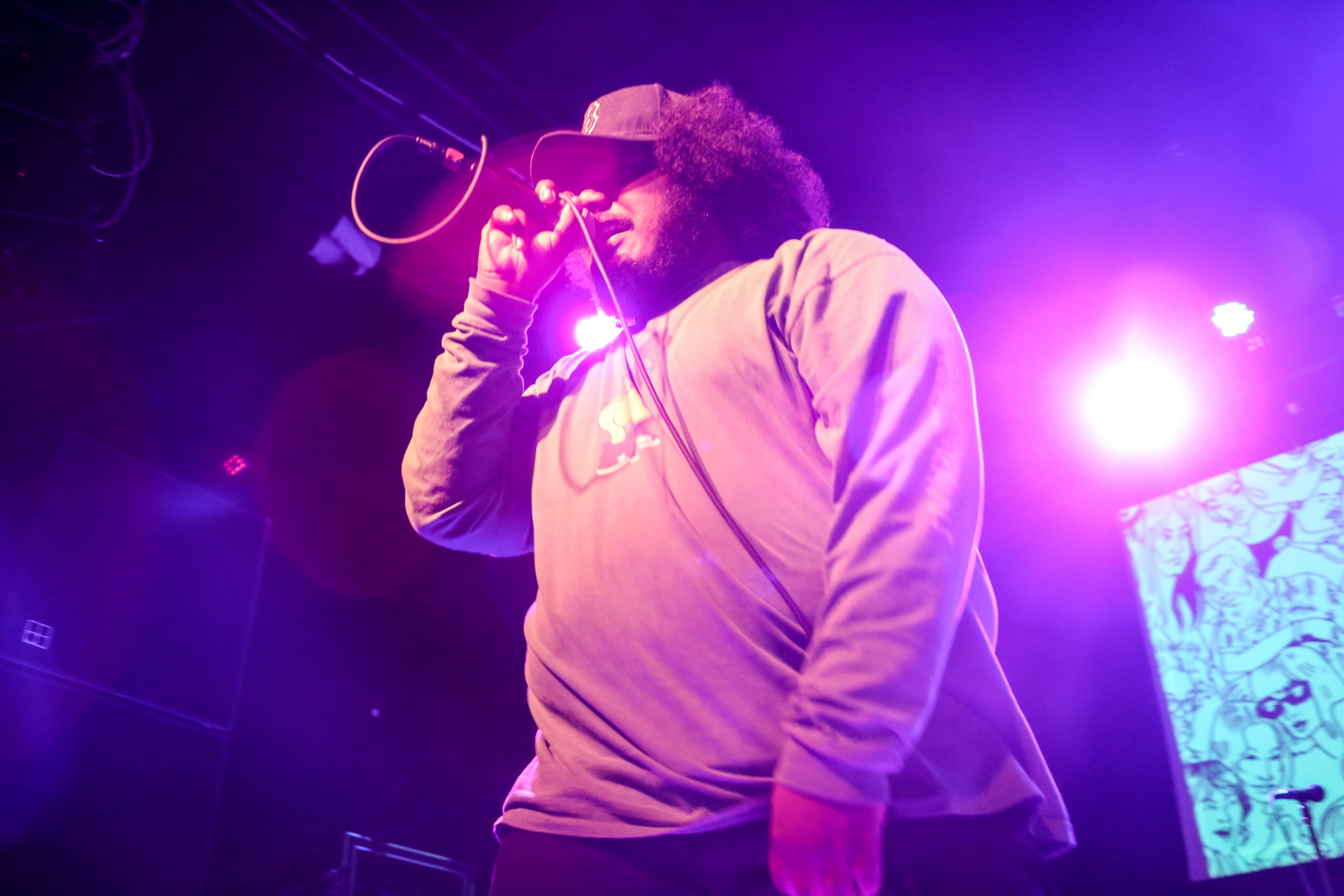 Night four of Converse Rubber Tracks’ series at The Sinclair puffed to a start. Just before hometown rapper Michael Christmas, the opening act, was about to step on stage, the fire alarm went off, and Sinclair staff ushered 500 people out of the building and onto the sidewalks. Someone leaned on a parked car and the car alarm blared. Michael Christmas, who was standing near it with his dad and some friends, rapped over the beat of the alarm.