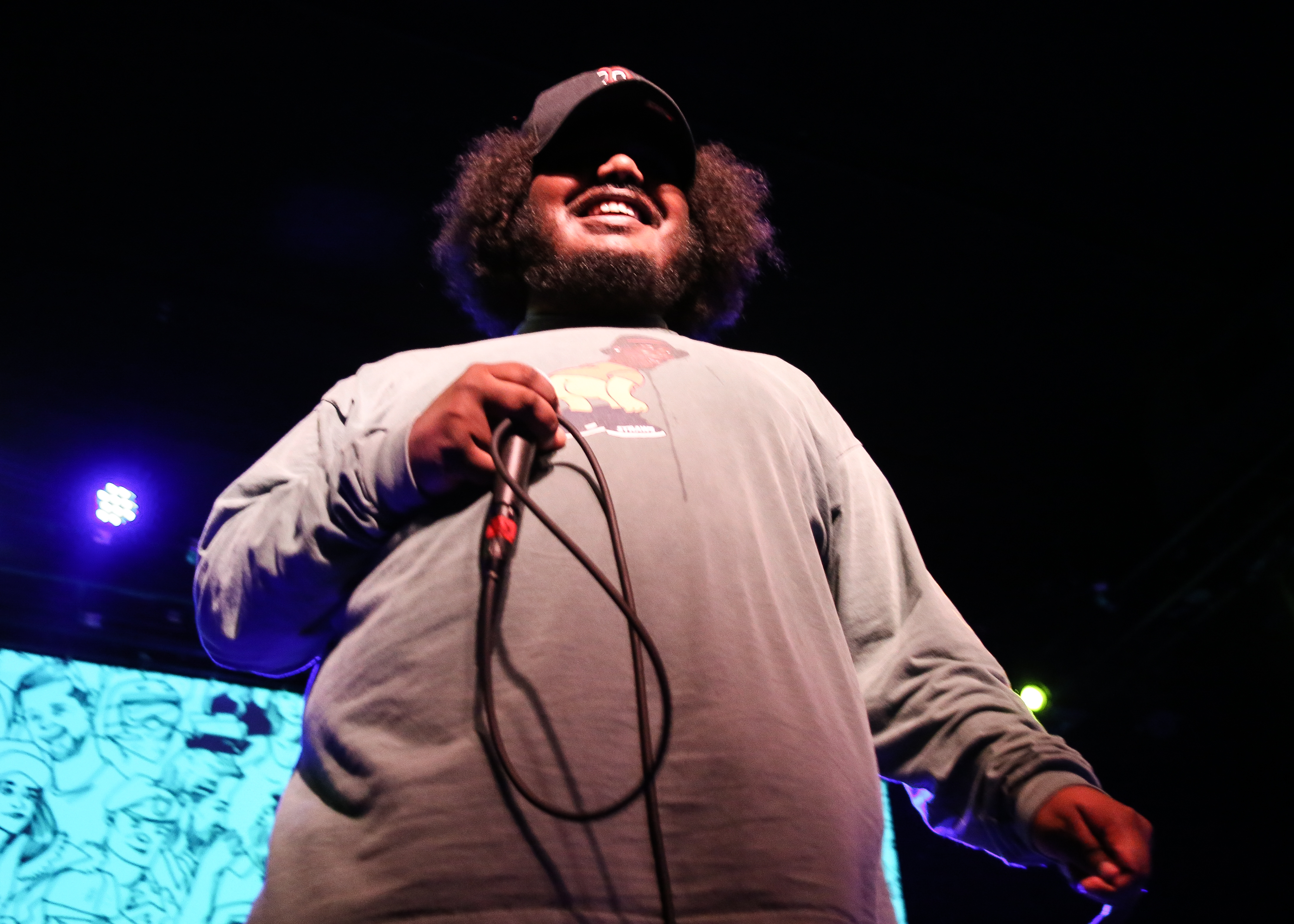 Though Chance the Rapper has a verse in Action Bronson’s song “Baby Blue,” off of Mr. Wonderful, Chance remained off stage. Instead Bronson and his DJ played a Biz Markie “Just a Friend” interlude.