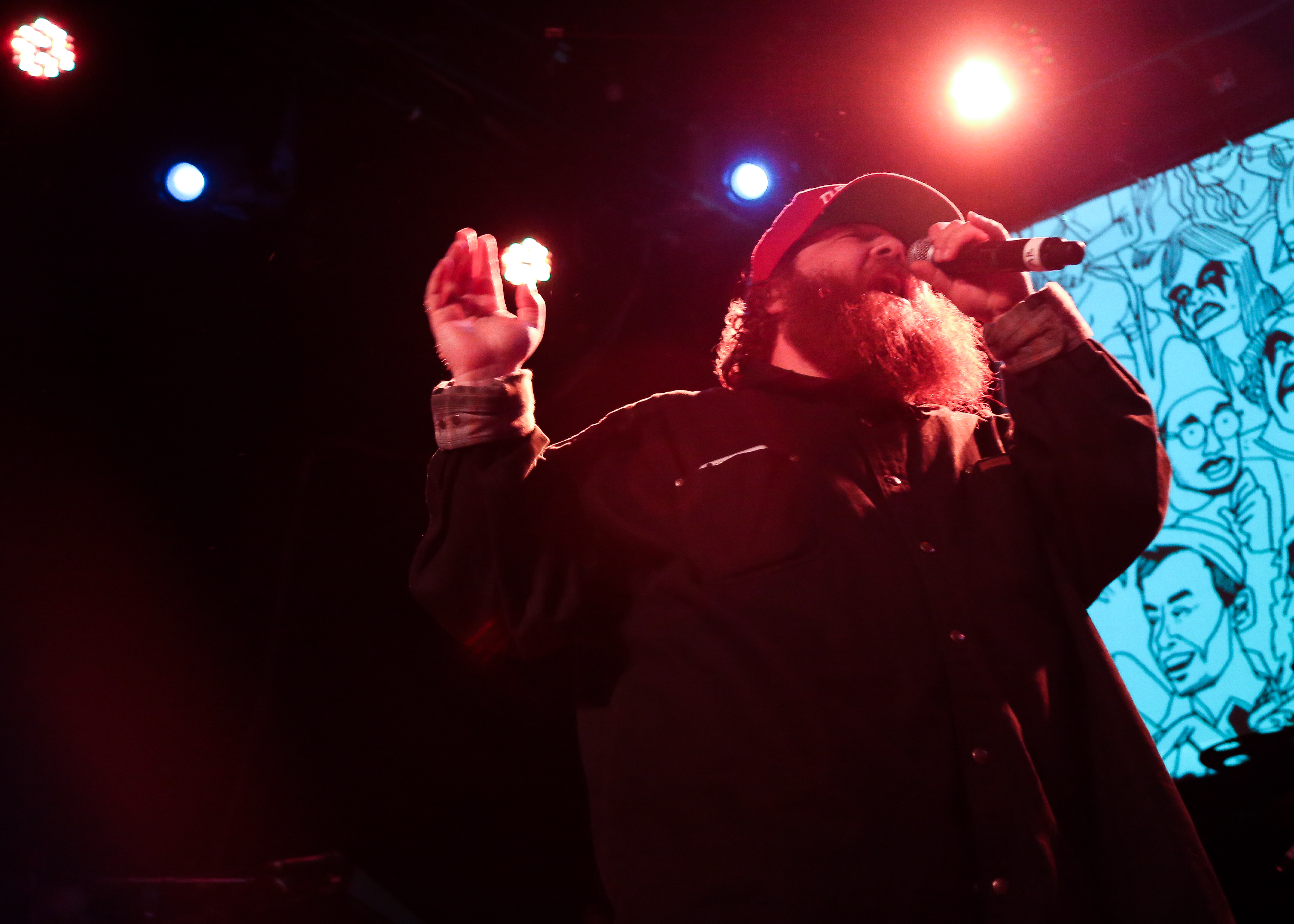 To fully appreciate an Action Bronson (Ariyan Arslani) performance, one must first be reasonably acquainted with the man’s character traits. Bronson is an Albanian immigrant from Queens, New York, and a culinary school graduate who worked as a chef for the New York Mets. He has been a graffiti artist and a floral designer and currently hosts a show called “Fuck, That’s Delicious” on Munchies, Vice’s food channel. He is a 300-pound white rapper with a spongy orange beard, and a self-described hedonist. He starts fires on Twitter, body slams drunk fans who climb on stage, and talks more shit than a scatologist—it’s all part of his unfiltered, unfettered persona. Is it possible that Bronson tips the scale of rapper braggadocio further than it’s ever been tipped before? Yeah, it is. It’s also possible that he’s the most crudely compelling character in hip-hop today.