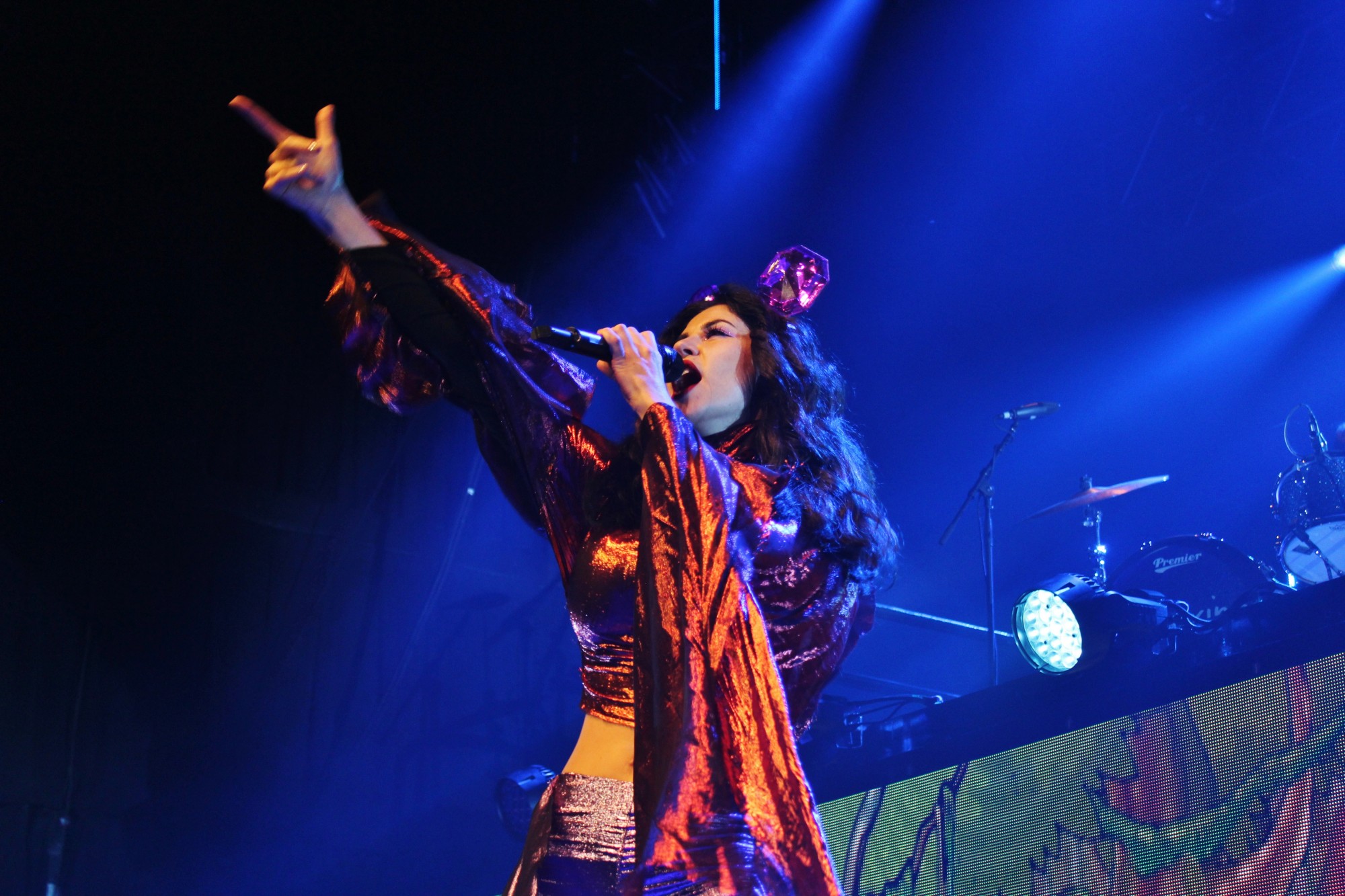 Dressed in shining red and silver akin to a flaming phoenix, Welsh-Greek pop superstar Marina Diamantis of Marina and the Diamonds captured the hearts of the audience during her sold out show at the House of Blues.