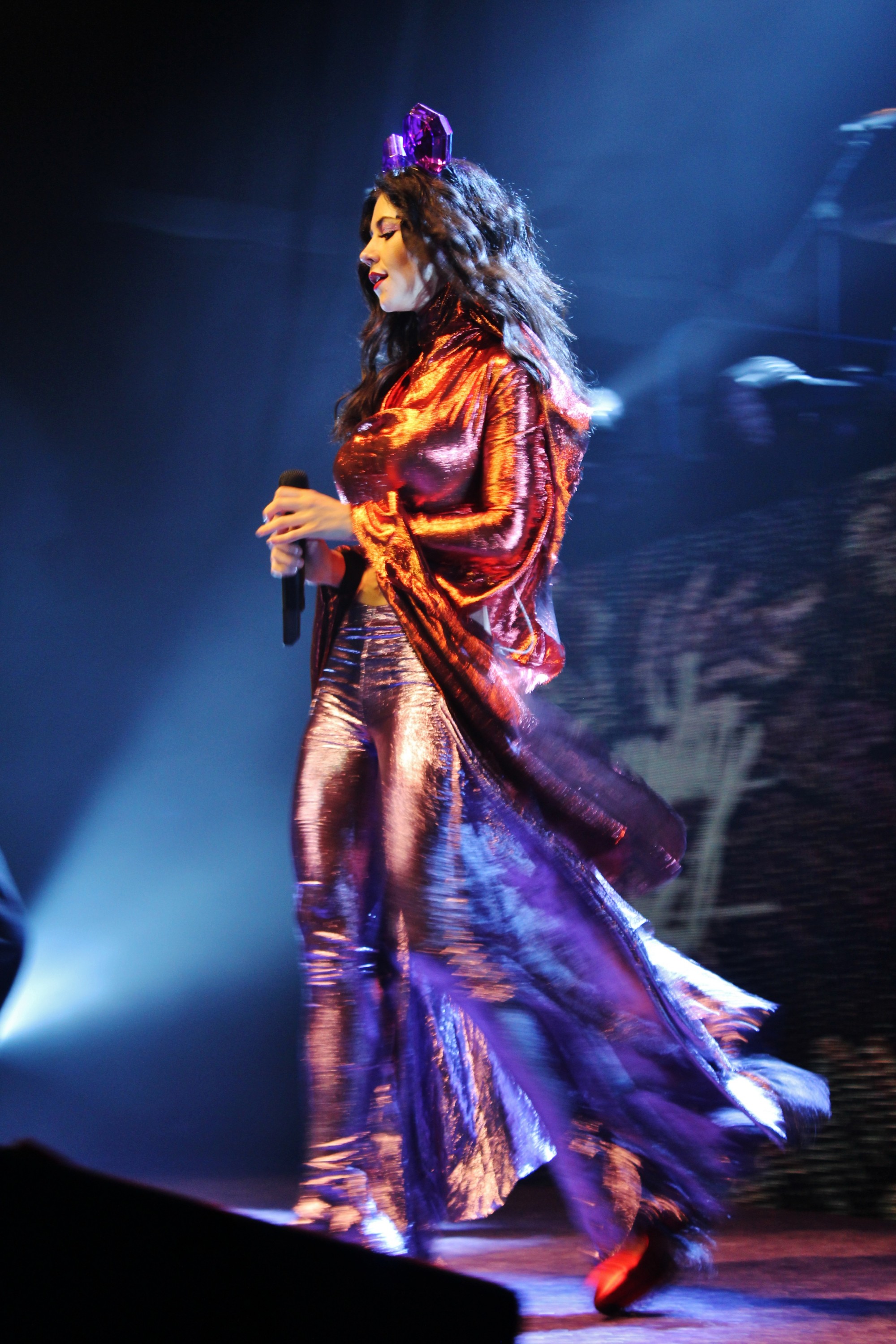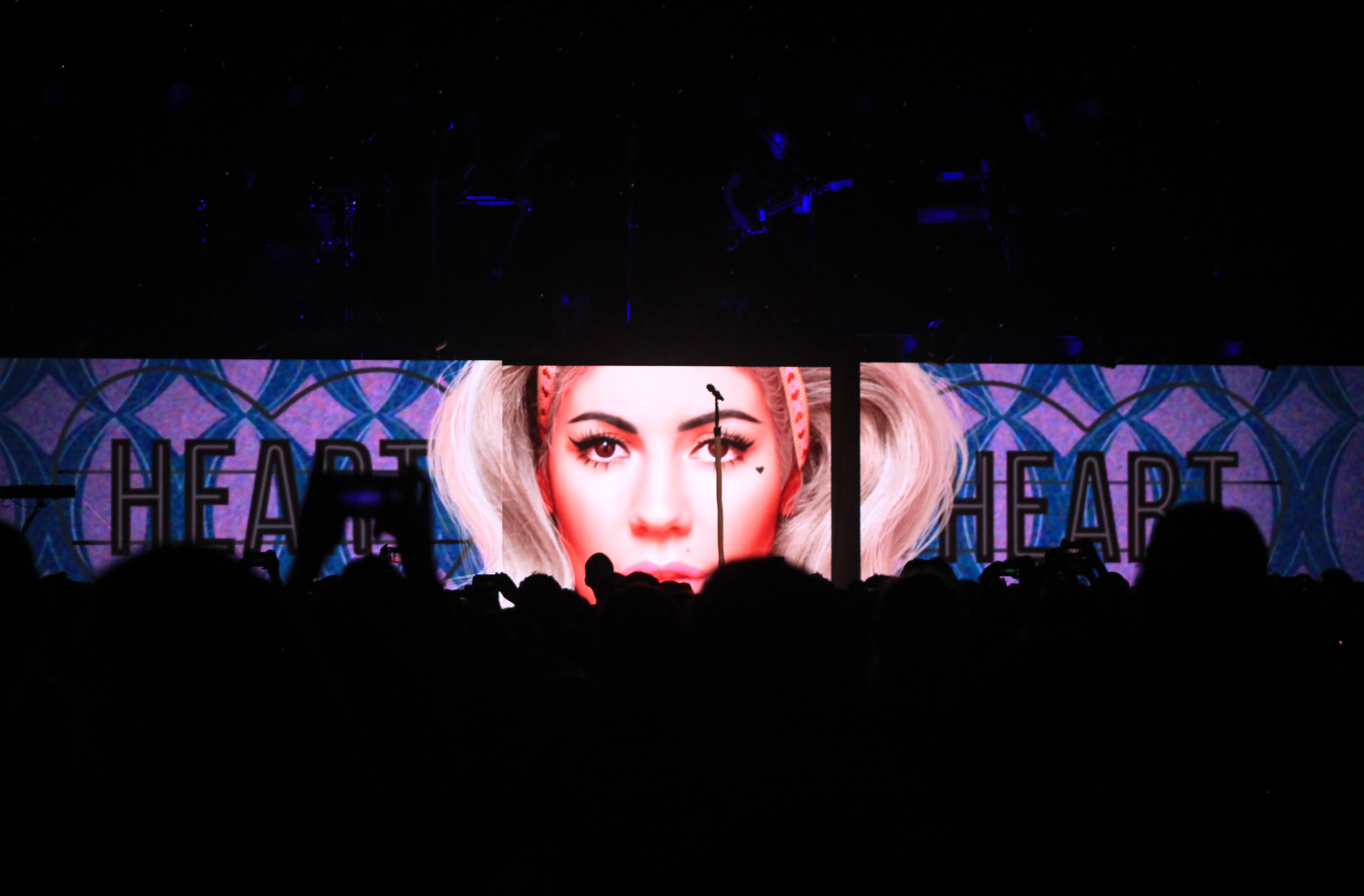 “Boston! How ‘ah you doin tonight?!” she asked in a Welsh accent. “Thank you so much for being a part of this show. It’s nice to be greeted by a warm audience, and you always have been, so thank you!” Her show was split into three acts, representing her three studio albums in the order they were released: Family Jewels, Electra Heart, and Froot. Every time she began a new song the audience would erupt in cheers, singing along so loudly that at times they drowned out Marina’s voice. Songs like “Primadonna” and “How To Be a Heartbreaker” generated massive cheers and a push towards the security gate, causing nearby security staff to flinch and move in towards the stage.