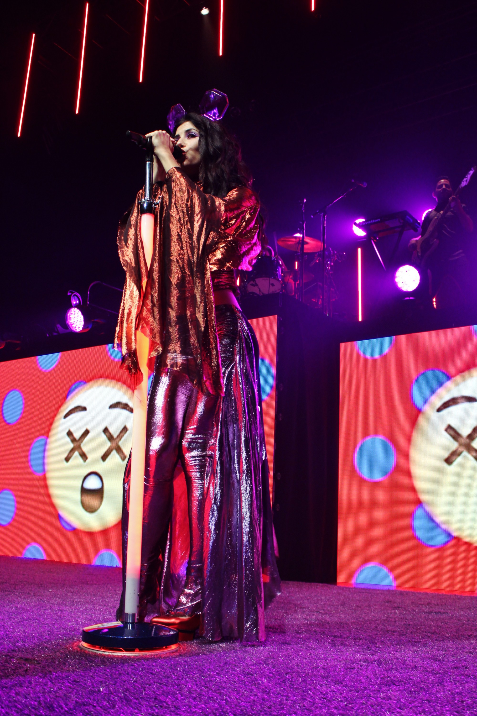 Marina pulled and tilted the mic stand like the rock stars of yore, boogying and dancing with her nimble partner. Her charismatic smile lit up the room and she made eye contact with every corner of the venue, not just the screaming fans in the pit near the stage. She switched from passionate to nostalgic in an instant, laughing and smiling one second, then frowning with furrowed eyebrows the next. You could see the emotion of every single song on her face, and even better, you could hear it in her voice. Nobody likes a robot, and in accordance with her song, Marina proved that she was in fact very alive and full of fire.