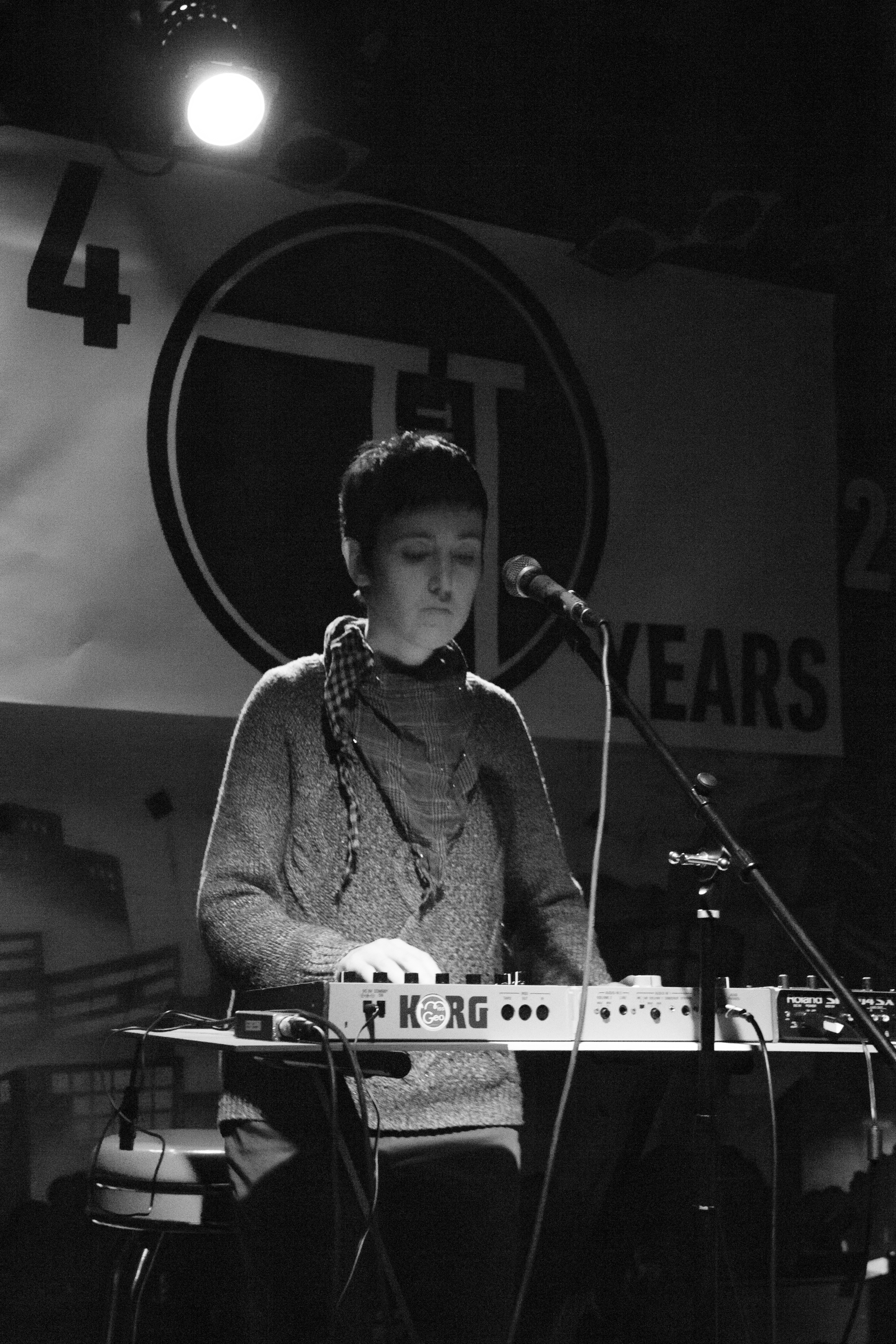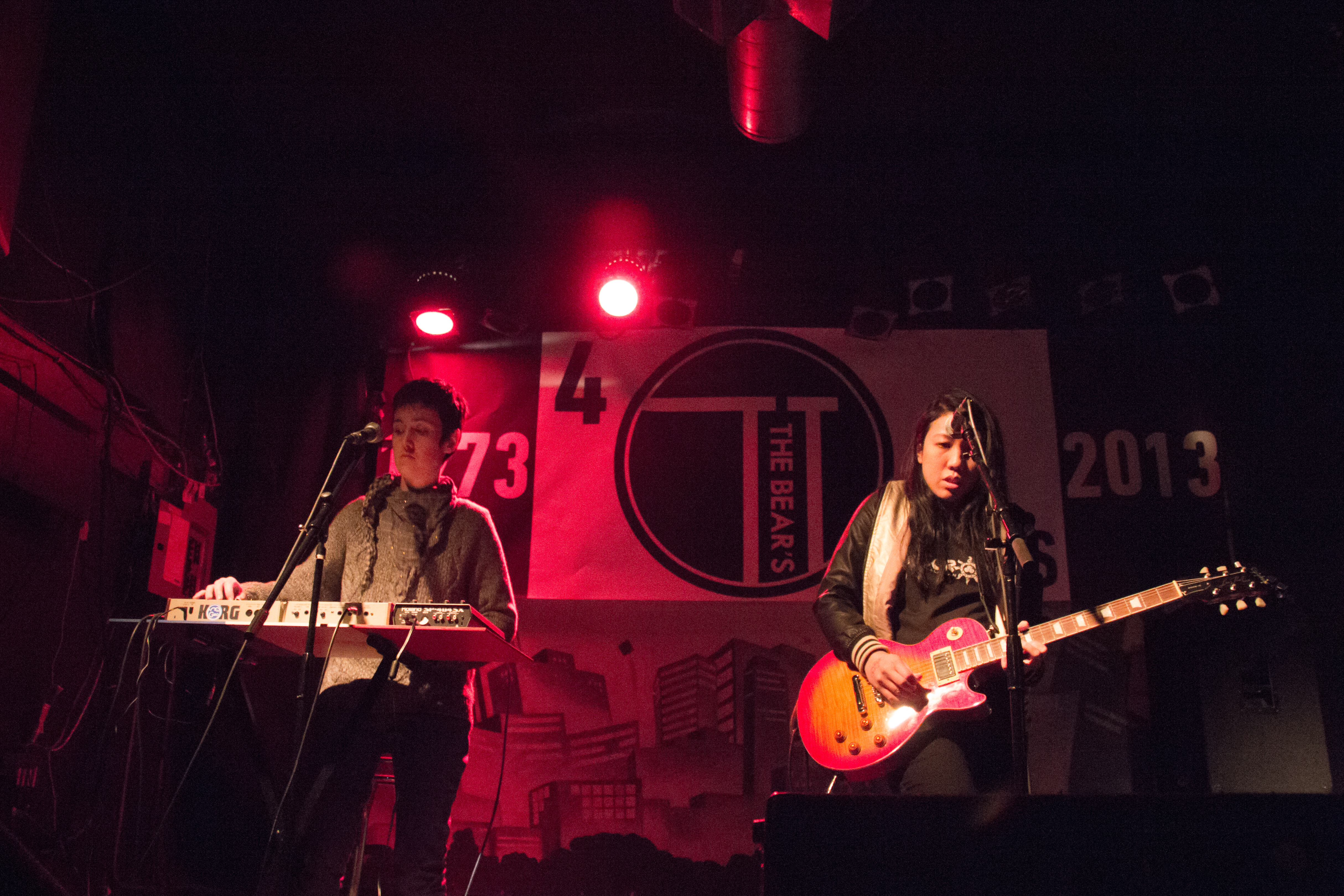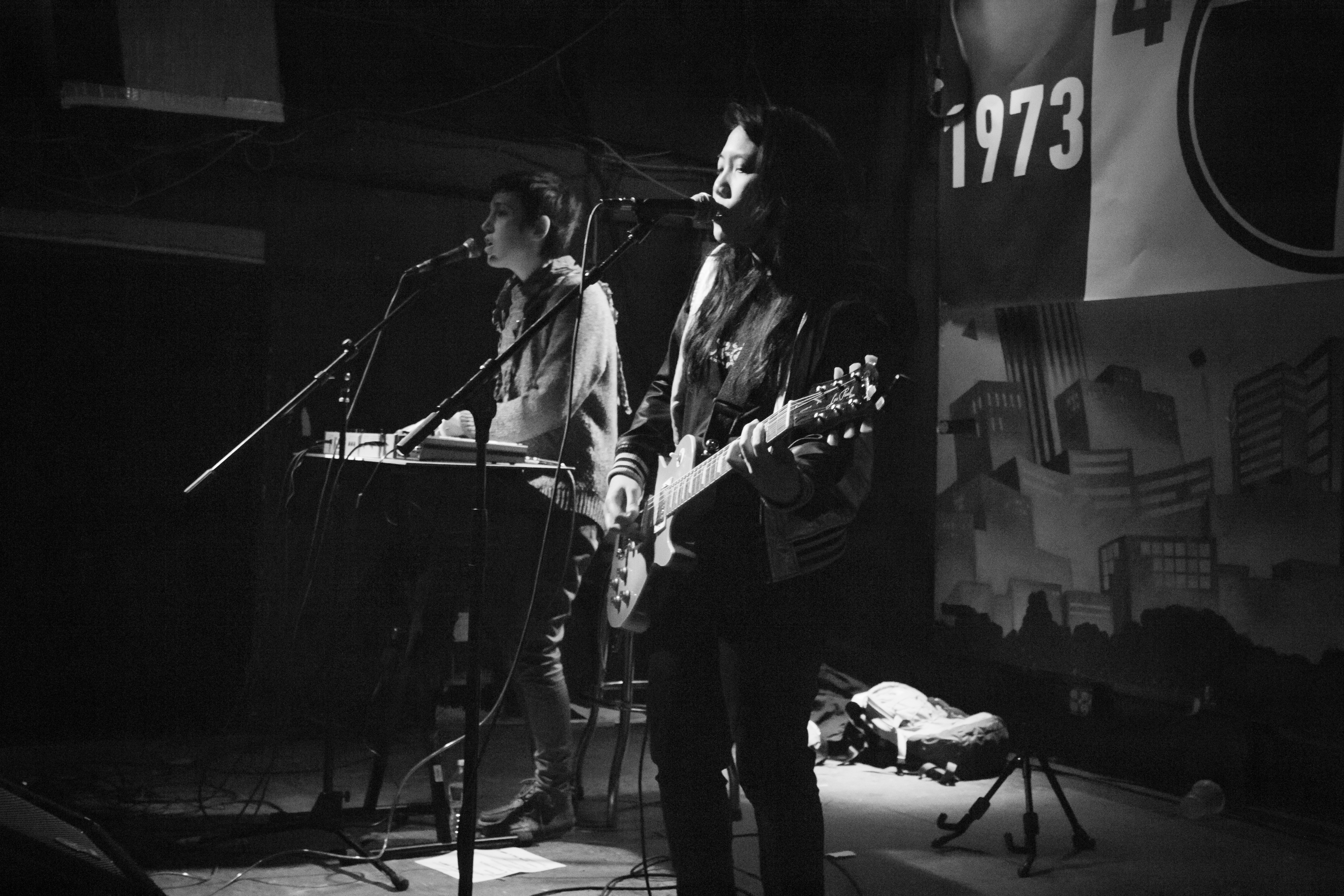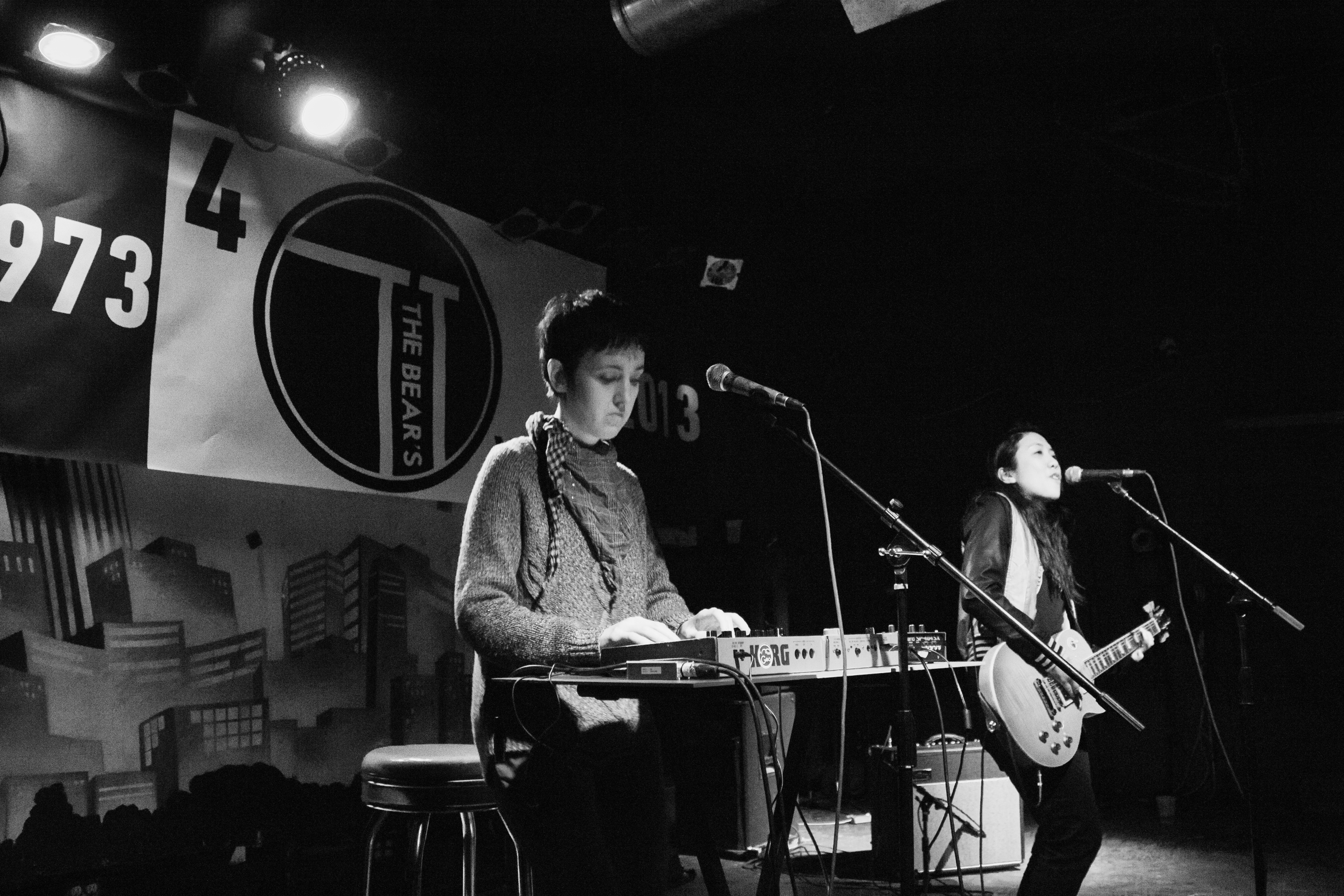 Threading a booming and intrusive bass line throughout all the tracks, Paz showcases her talent on the electronic keyboard. Although Paz is almost always intently focused on churning out her electronic beats, she looks out into the audience every once in a while to quietly sing back-up vocals into her mic. With catchy pop melodies combined with an overall attitude of spunk, I can’t help but think of Miss Geo as an electronic Tegan and Sara.