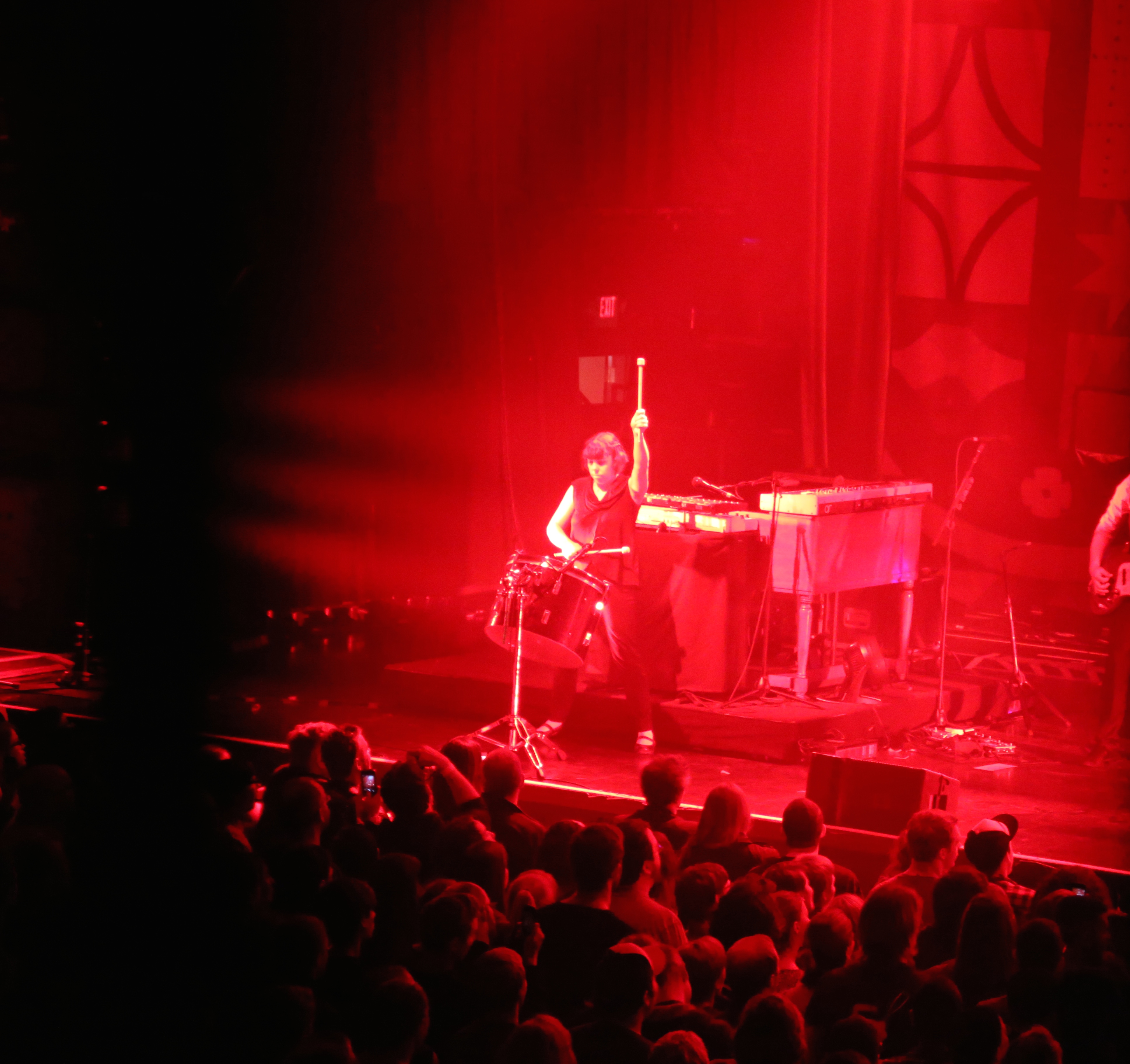 The Decemberists certainly know how to put on a show. The stage’s backdrop featured white silhouettes of naked women with swords and crossbows—the imagery on the cover of the new record. Every person on stage, even the backup singers, played at least one instrument, and the band wasn’t shy about dancing to the music. (Jenny Conlee in particular had some great moves, which isn’t easy to do when you’re holding an accordion).