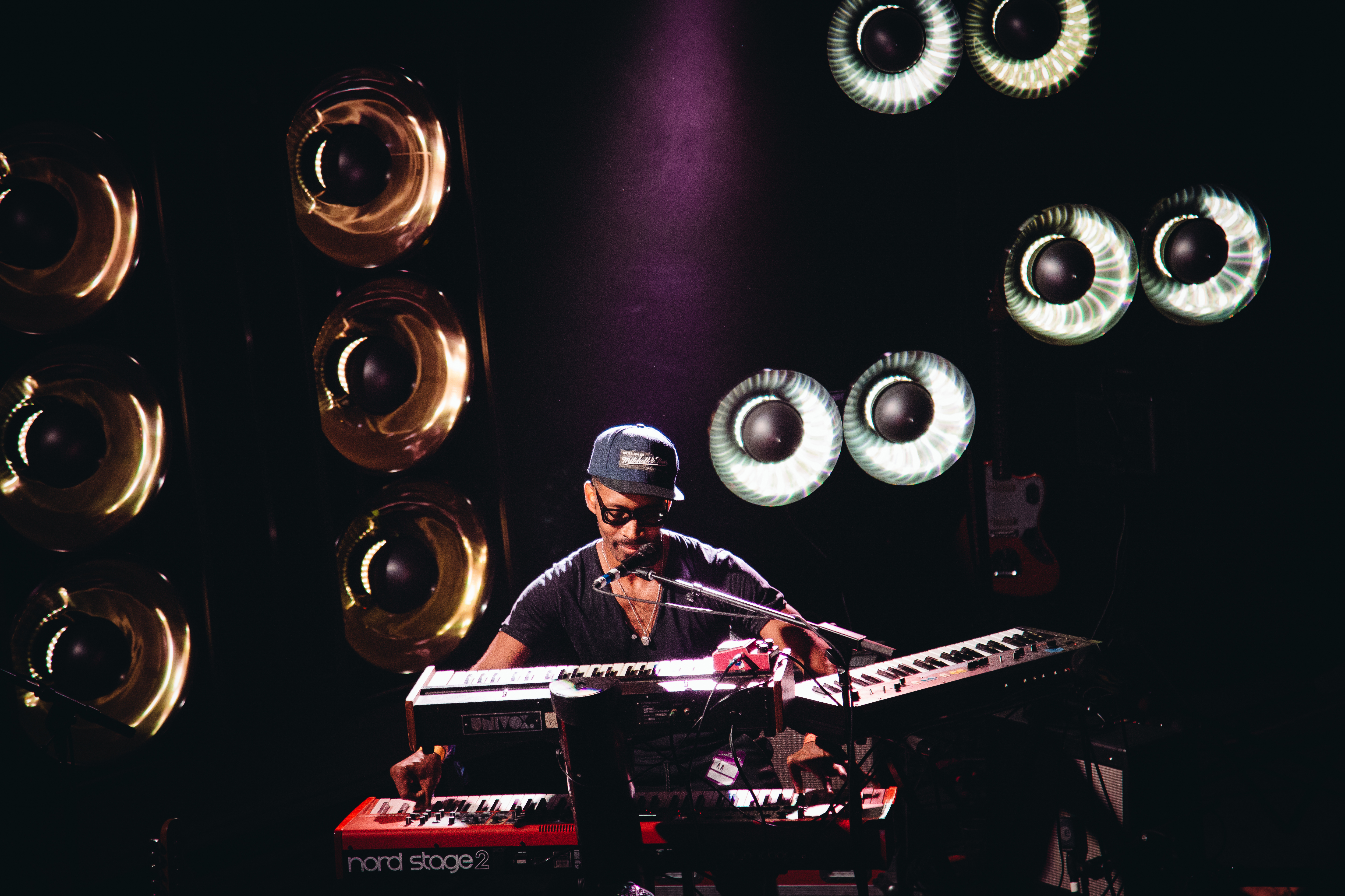 After a regal entrance complete with recorded trumpet fanfares, UMO launched into 2014’s “From the Sun,” the opening track from their record, II. Immediately departing from the recording, UMO pushed the track’s tempo and clarified its usually distorted vocals. With this track alone, frontman Ruban Nielson made it clear: UMO is no longer the lo-fi garage rock band of 2010. Illuminated by oversized lighting fixtures, the band entered into a set marked by improvisation, riffs, and solos that pushed the boundaries of 2015’s acclaimed Multi Love.