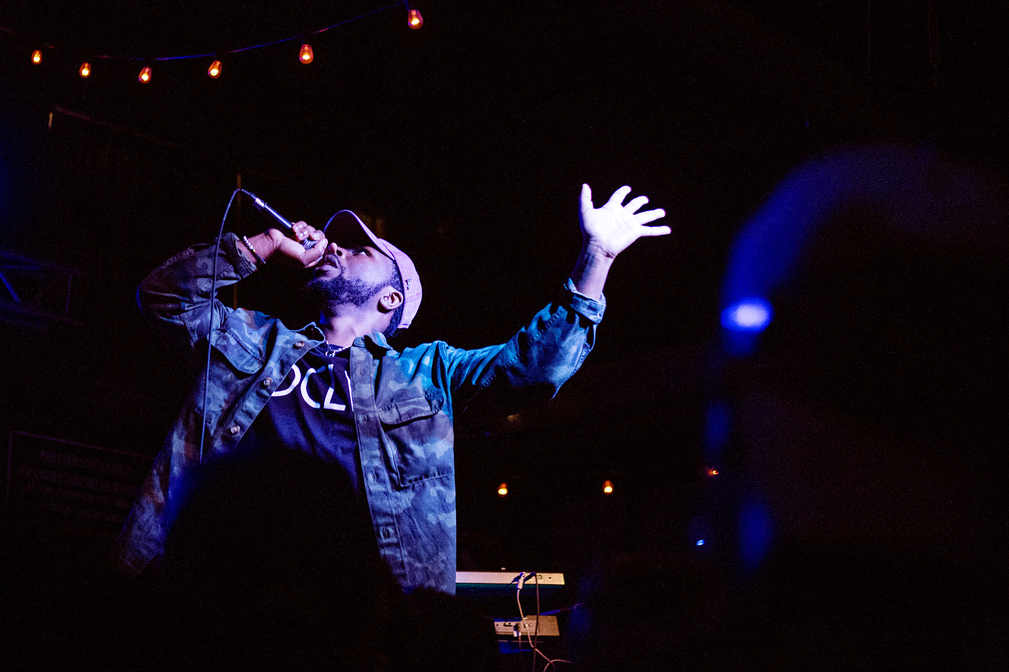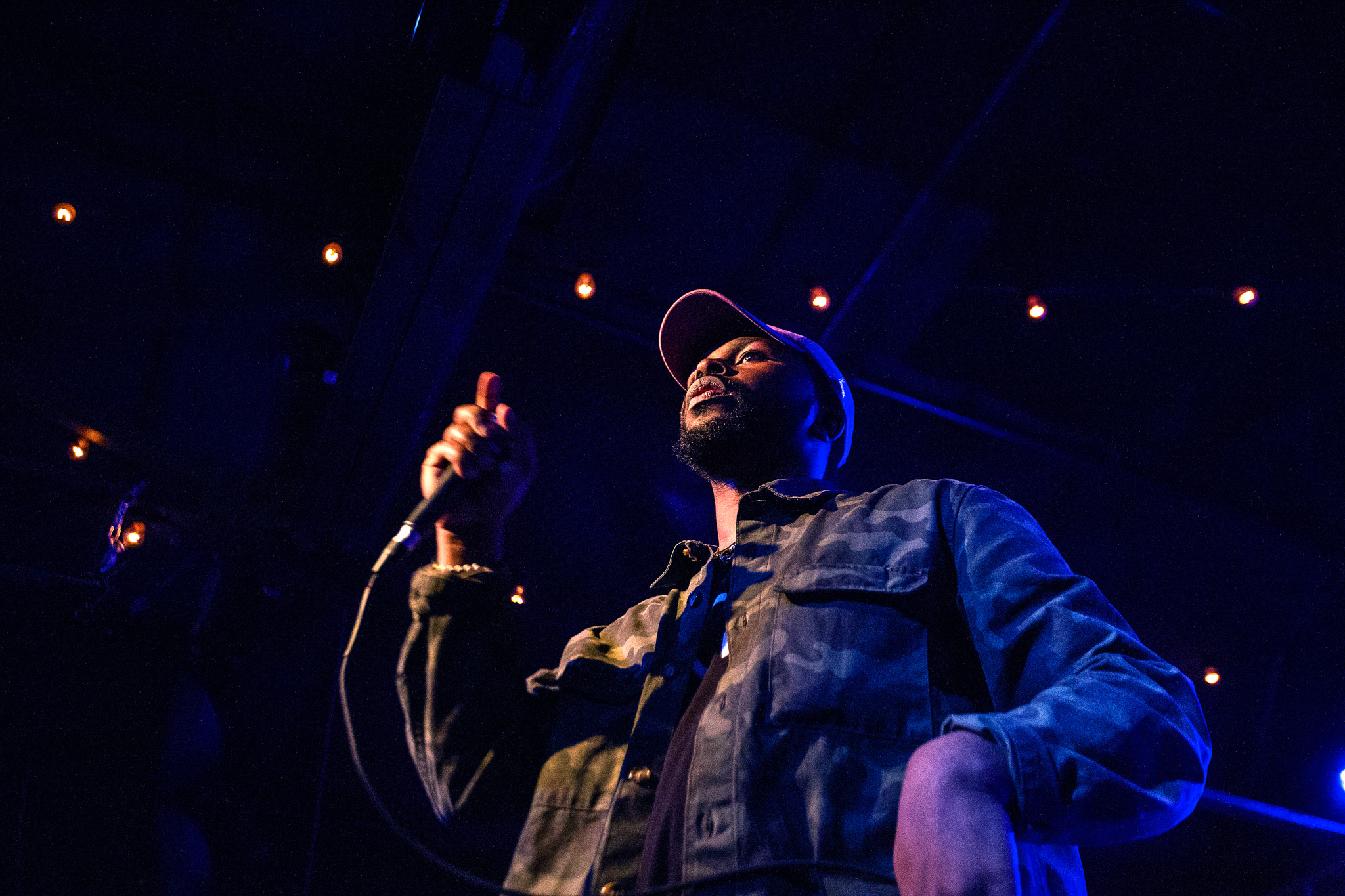 After Olivier St. Louis’ set, the Good Compny band quickly shifted gears in preparation for the main event. Once Oddisee hit the stage, not a minute was wasted in delivering an exhibition in tightly woven lyricism and robust musicality. A solid portion of the show focused on Oddisee’s album The Iceberg, his latest effort that delivers dynamic lyrical performances that place a prominent focus on America’s current political climate. The minimal production on the LP proved ideal for a live setting, allowing Good Compny to bring their skillfully synchronized instrumentation to the forefront. From a declaration of finding happiness in a troubled world on “Want To Be” to discussing racial injustice over an infectious blend of soul and trap inflections on “Like Really,” Oddisee showed an aptitude for rapping with supreme swiftness, clarity and purpose capable of attracting any audience who respect all forms of artistic passion.