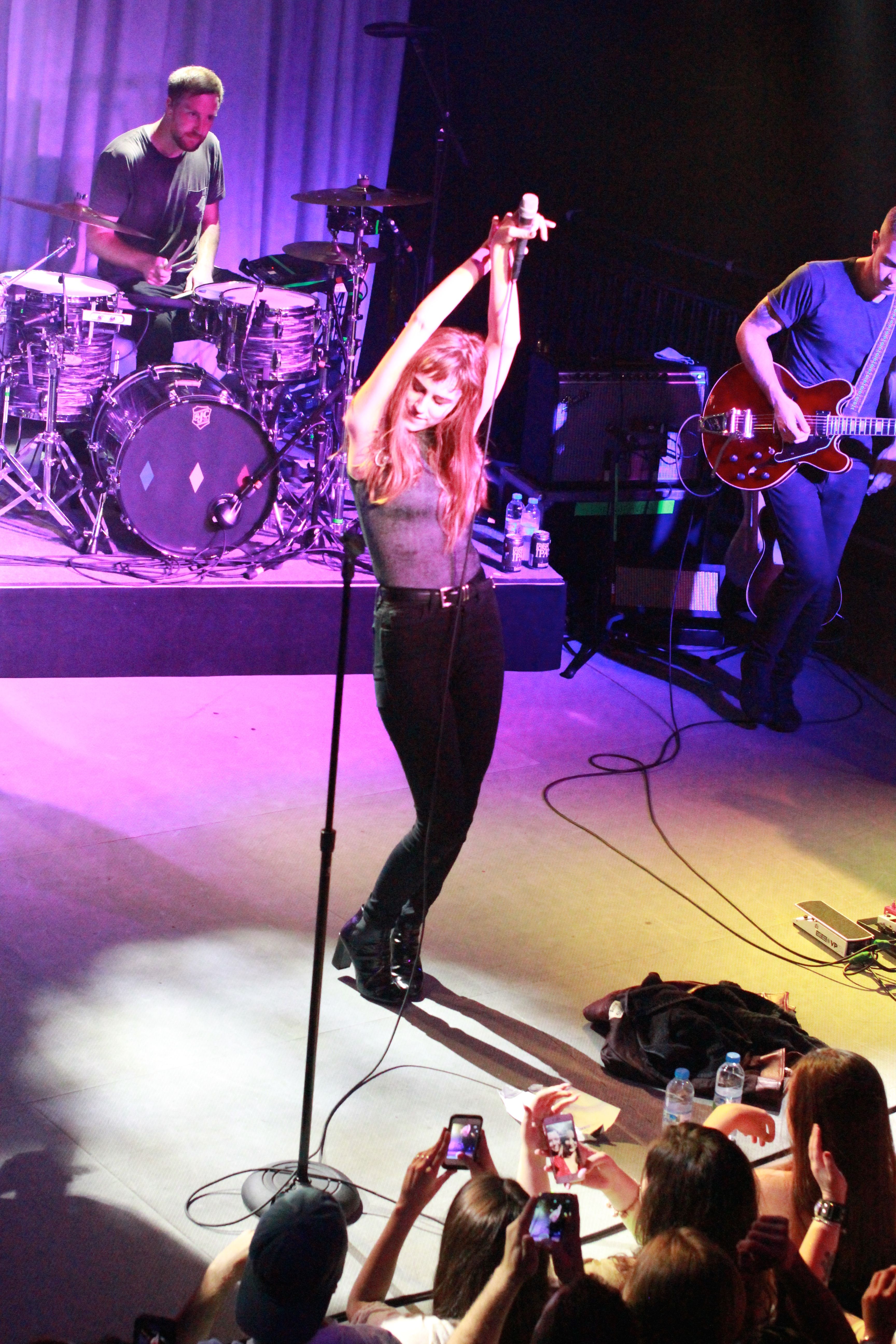 “Relationships can be so superficial nowadays. We all look at the pictures we post to Instagram and go, ‘Wow, look at how many friends I have… but none of that’s real.’” Ryn Weaver strolled across the stage, acting out social media obsession with exaggerated facial expressions. “Turn to a person near you that you haven’t met and introduce yourself.” The murmur of hundreds of voices swapping names bubbled up as the pop singer grinned with delight. “That’s more like it, now you know who you’re partying with.” She strutted the stage, lad in high-waisted jeans and a clingy top that accentuated her Elvis-style hip swivels she performed frequently. Her three-piece band stayed in the shadows, letting Weaver’s charisma take center stage.