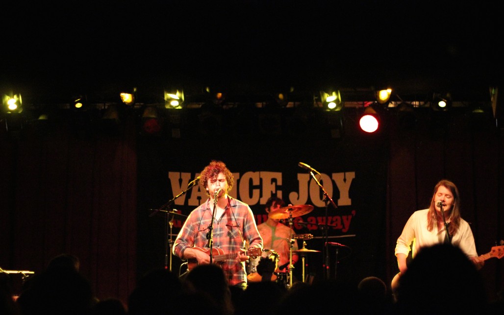 Under dim golden lights, Vance Joy and his band hushed the babbling crowd with the first few notes of “Emmylou.” The crowd wasn’t quiet for long though; these were dedicated indie fans with a strong love for this Australian darling and they belted out lyrics with boundless enthusiasm. After, with sweetly shy demeanor, Vance thanked everyone for coming and broke into the next bubbly folk anthem.