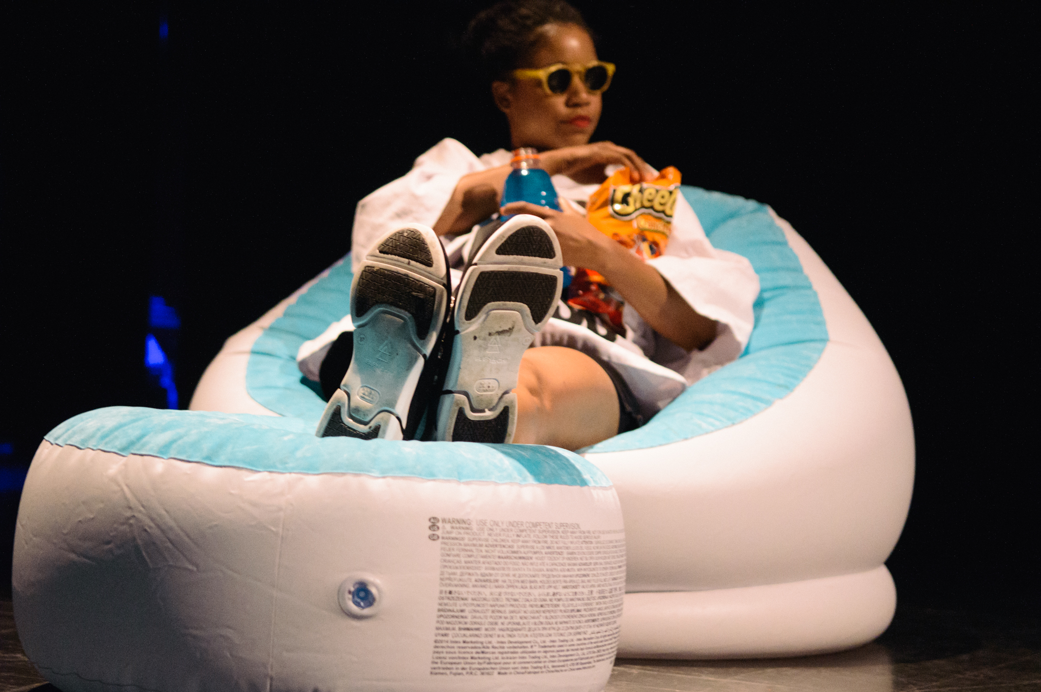 Two women strutted over to the blow-up cushions onstage, clutching bags of crunchy Cheetos and bottles of blue Gatorade— the first of many brands that assaulted the audience’s senses at Santigold’s concert that night.