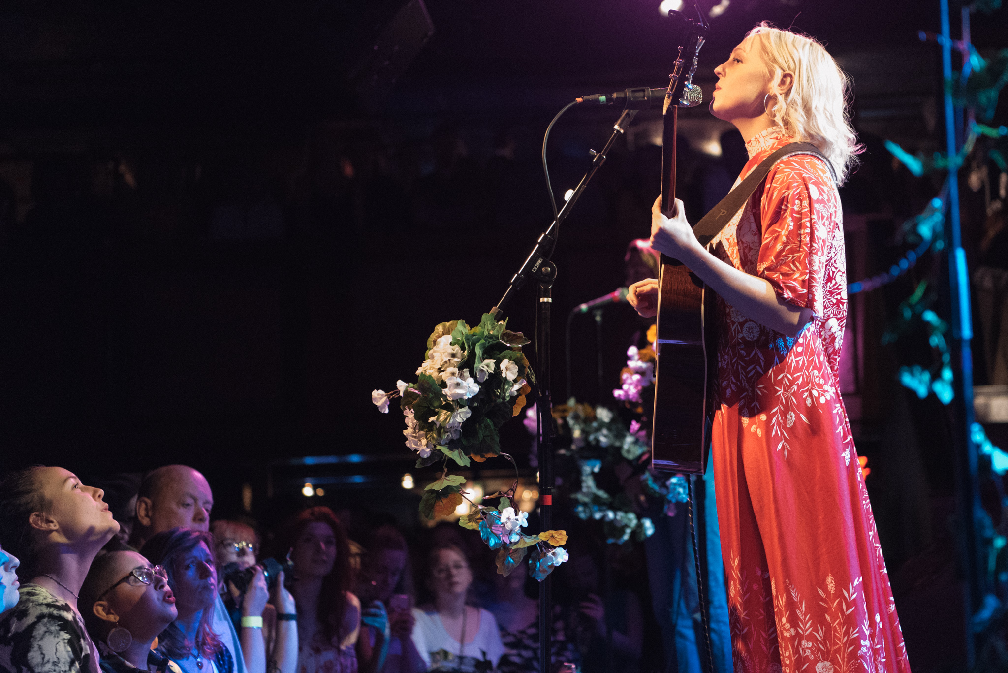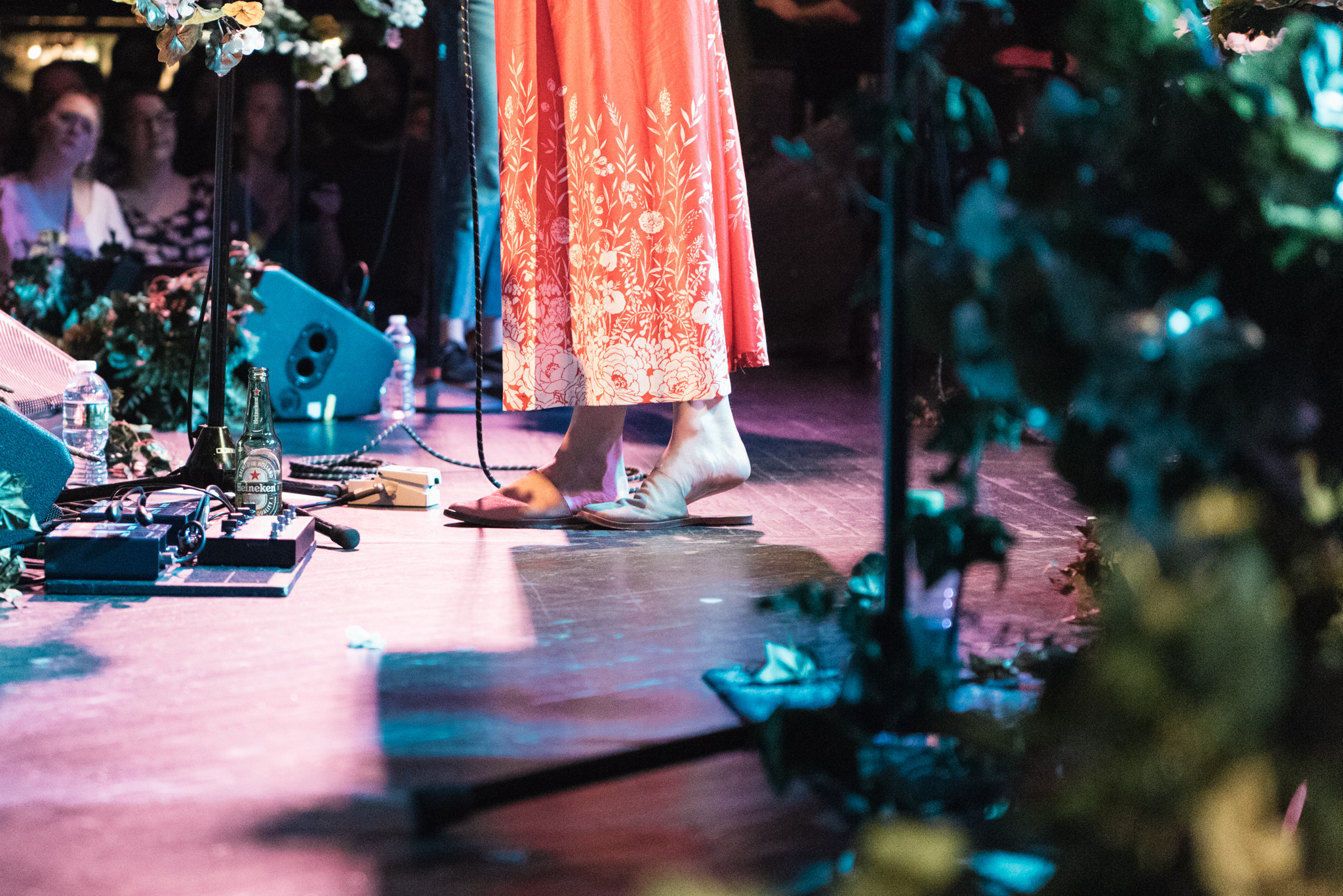 She’s touring to support her latest album, Semper Femina, a meditation and manifesto on womanhood. The setup of the stage had what could be referred to as the feminine touch, with garlands of leaves and flowers on the drum kit and mic stands, Marling herself goddess-like in a billowing red dress. The first half of the show focused on Semper Femina, with Marling and her band going, with a few diversions, straight through the track list, before playing their way through some old favorites.