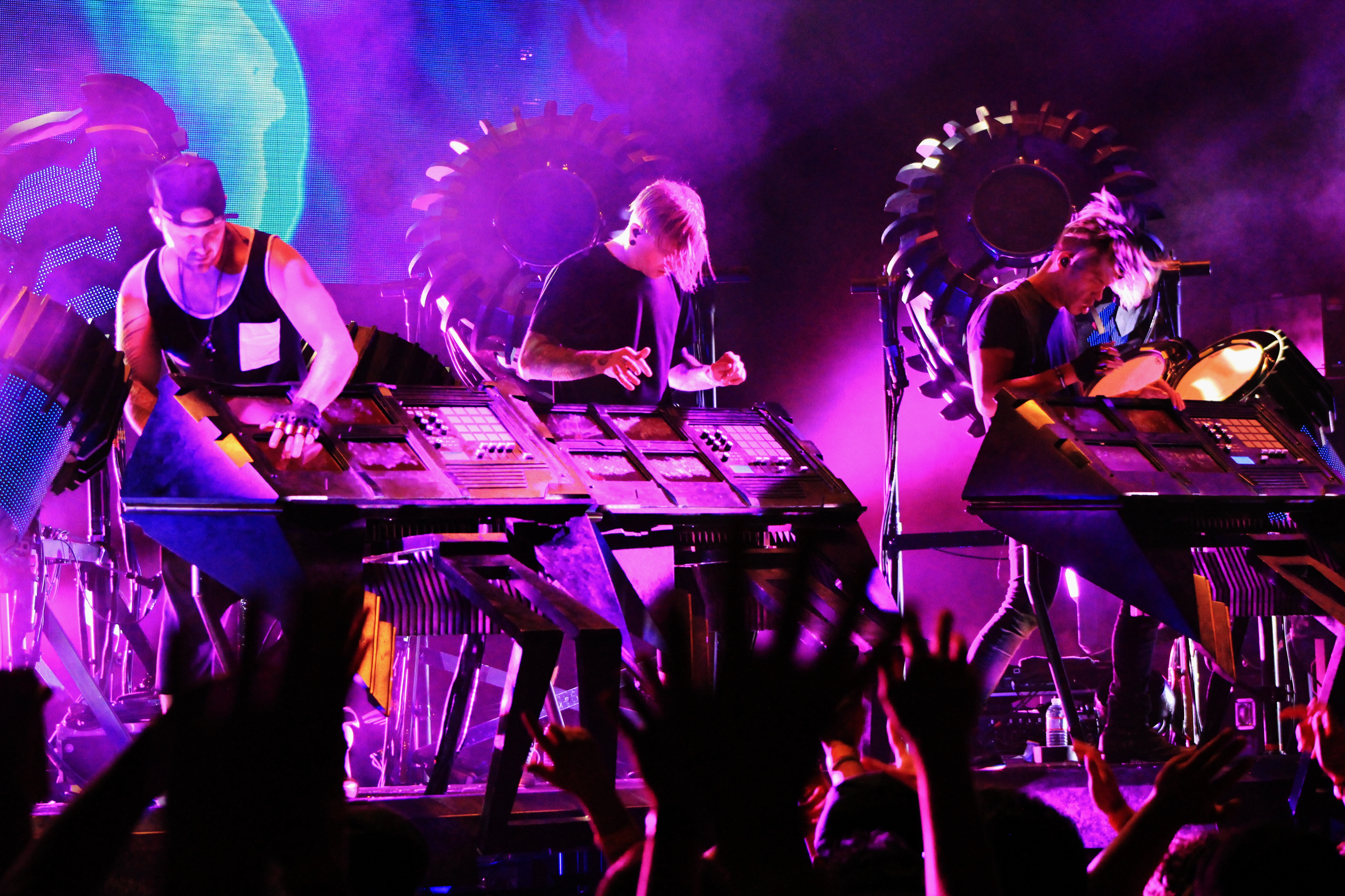 Unleashing bass-heavy tracks from their newly released album Love, Death, Immortality, the dynamic trio danced, twisted, and head-banged on stage, pumping up the crowd at a tremendous velocity. Boasting an arsenal of bass drums, MIDI samplers, and touch-pads, the group made nonstop use of their gear, playing out tracks like “Can’t Kill Us” and their remix of “Derezzed” by Daft Punk in a spectacle proving that “true” musicians are not restricted simply to traditional instruments.
