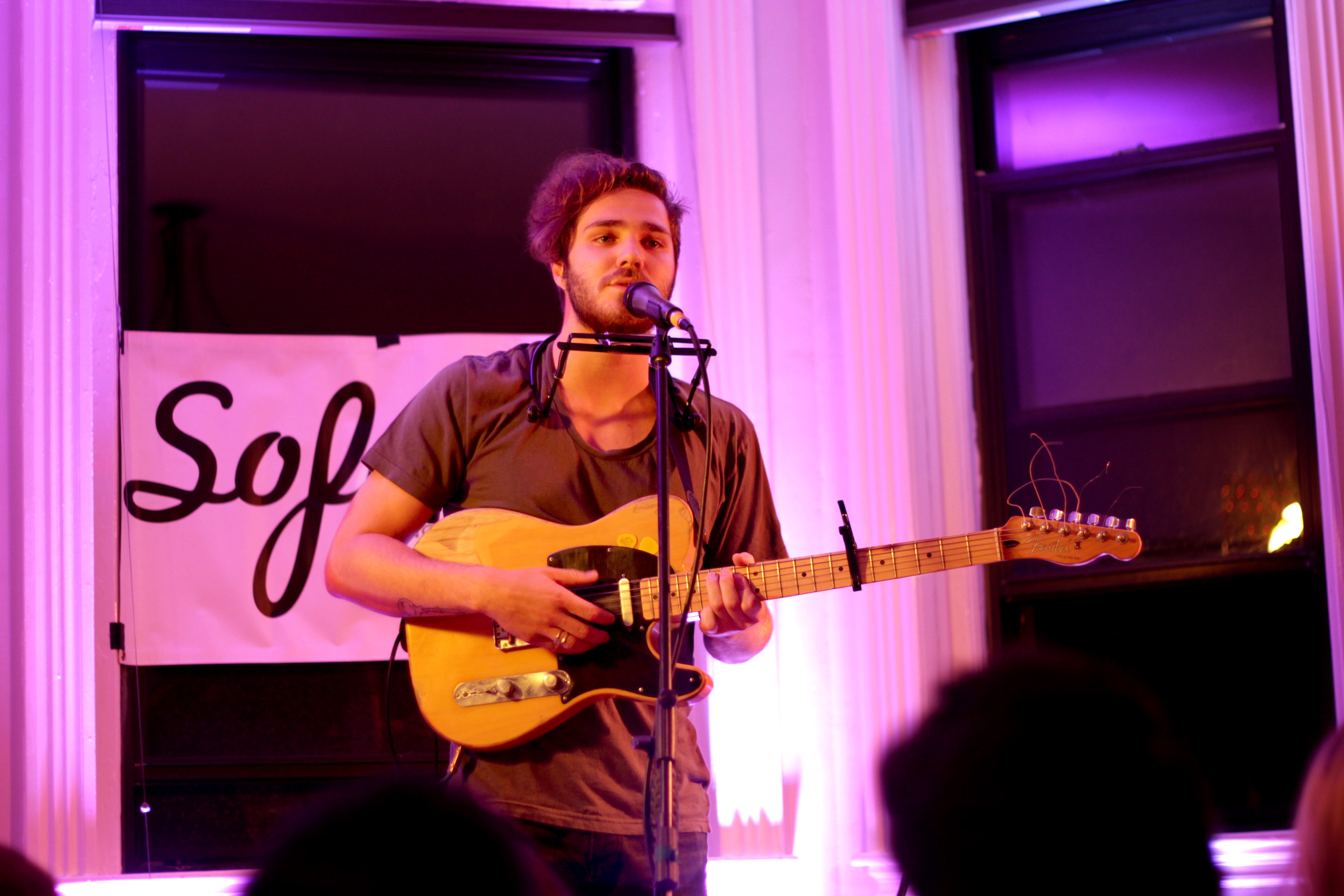 Before playing, Sabella commented on the setup of Sofar shows, noting that “they set the musicians up for success because it’s not like anyone has any expectations—it’s not like people are going just for a headliner.” Singer-songwriter and English-born Boston resident Tom Freeman of Covey began the show with three songs from an unreleased EP he’s currently working on and one older song, “Comes and Goes,” a 2013 single.
