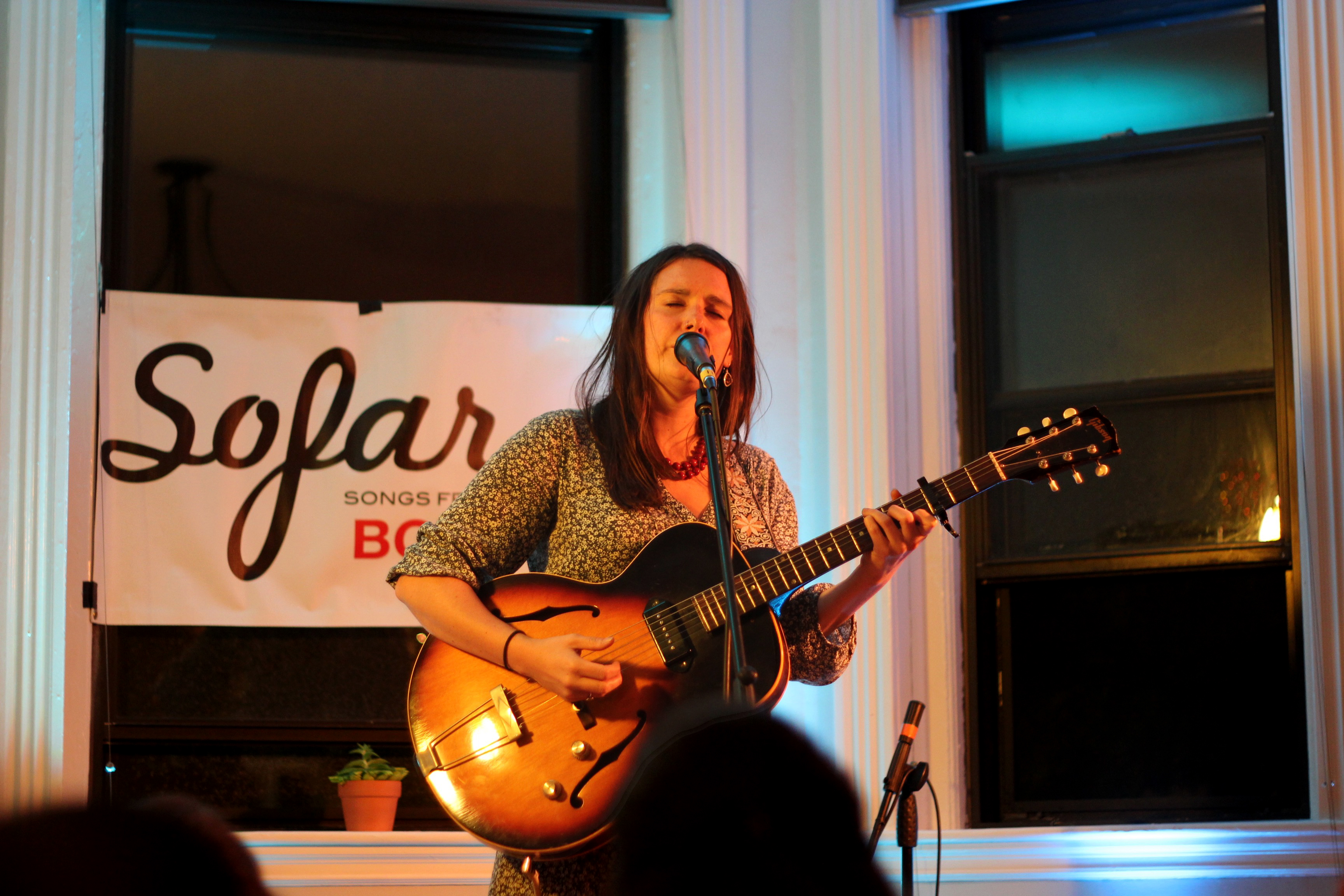 Show addresses are secret until the day of and performing musicians remain undisclosed. There are no openers or headliners; Sofar treats all artists equally. The most recent Boston Sofar show, featuring local musicians Covey, Kristina Stapelfeld, and Hayley Sabella, took place in the Fenway area on Oct. 27. Out of courtesy to the host, guests took off their shoes and padded around the apartment in socks and bare feet and this oddly intimate gesture somehow assuaged the inherent awkwardness of strangers meeting in a very personal setting. Casually sipping beer and sitting cross-legged on the living room floor, people chatted and introduced themselves before the music began.
