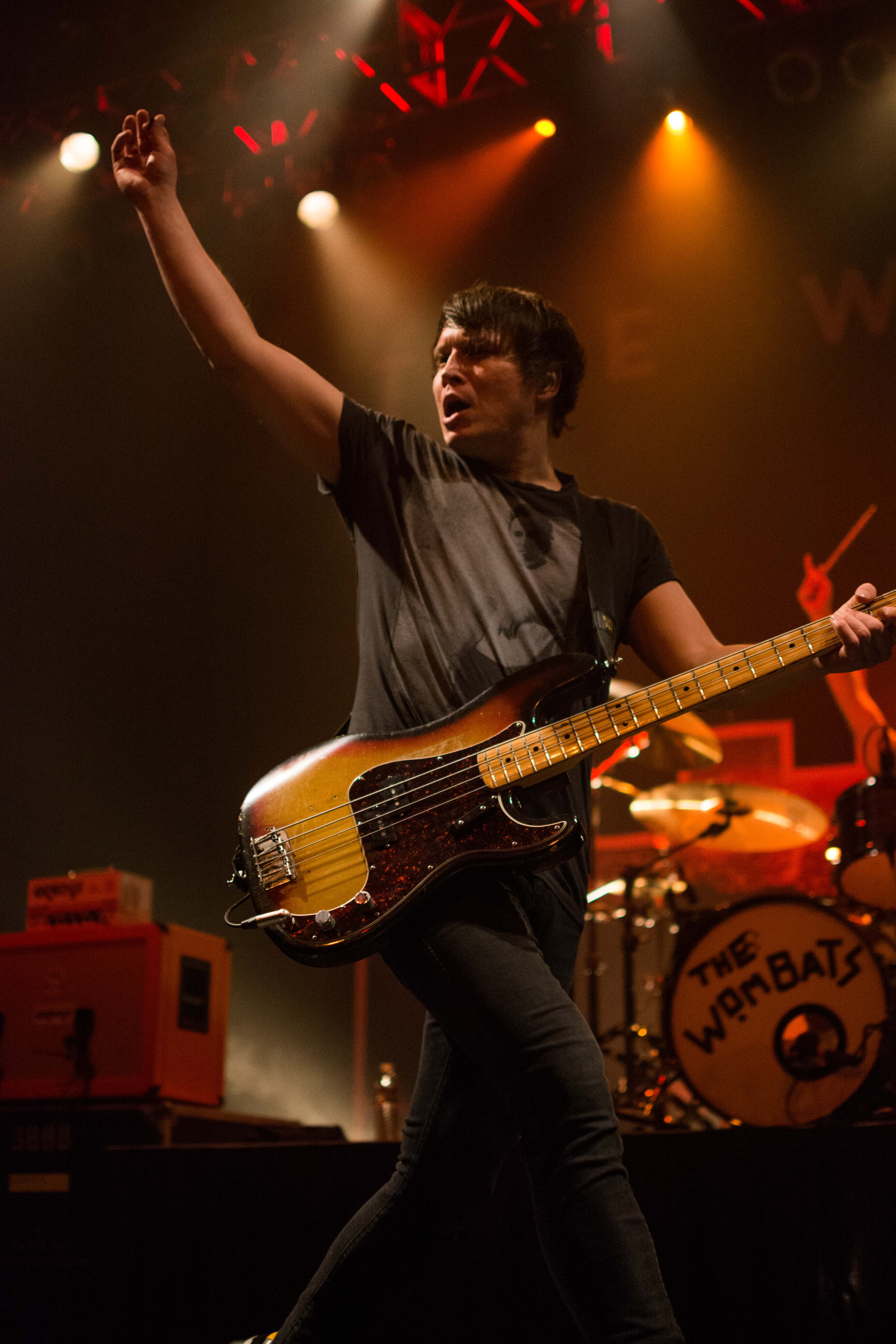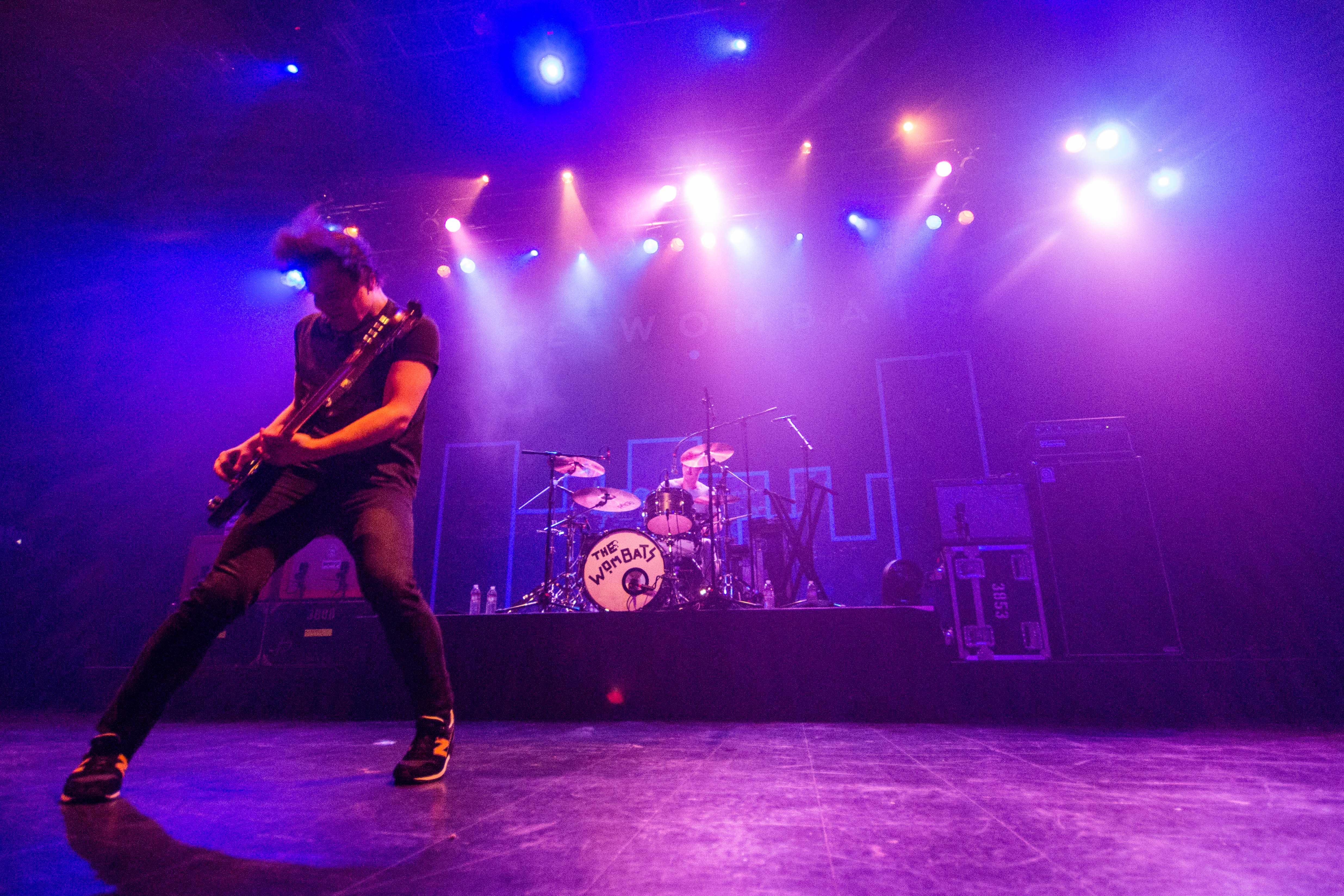 Their sound adopted the effervescent, optimistic vocals of pop, but offered the fast-paced, eardrum-bursting guitars and drums of Dan Haggis to carry it all. So when a song like “Pink Lemonade” cropped up towards the middle of the set, with more subdued instrumentation and a touch of falsetto from Murphy, there was a shift in emotion. Telling a story of how he got really drunk and convinced himself his “girlfriend was going to have furious sex with a good friend of [his],” Murphy smirked and laughed to himself. The song is about submission – having a premonition of something bad happening, and allowing it — “so go ahead,” Murphy sings. Where we saw flying leaps across the stage from bassist Tord Knudsen at the beginning of the set, now we found a side of the Wombats more like the cuddly creatures from which their name derives.