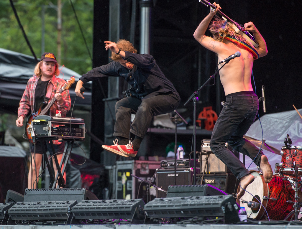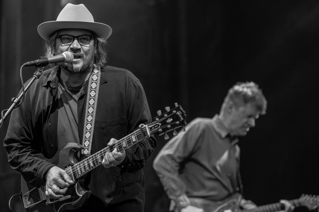 After an awesome, extended jam of Steely Dan’s “Reelin’ in the Years,” DeMarco told the rain clouds to piss off. His bassist took off his shirt and asked the crowd if anyone had a floppy hat he could borrow. DeMarco’s other guitarist joked that mojitos were on him for the rest of the night. The troupe wrapped up their shtick and we waited for Wilco.