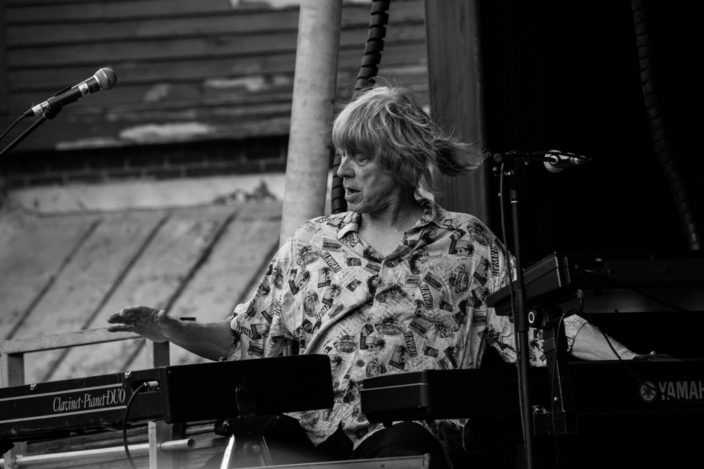 Playing originals, bluesy Thelonious Monk covers, and un-mic’d cowbells, NRBQ spun the grey day into a jamboree.