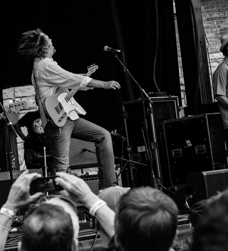 The term “in the pocket” means grooving perfectly on-beat with other musicians. Richard Thompson grooved in the pocket deeper than cargo shorts Saturday on evening, rocking out to lawn loungers on the main field. His drummer stabbed at the set, hitting each drum with karate precision.