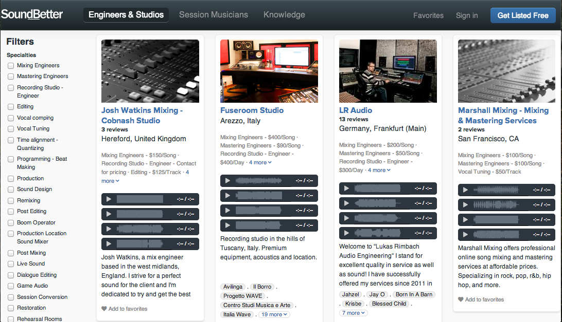 The circle of talent is a wide one indeed, as music production has increasingly become something that can be performed remotely, the options for musicians have grown wildly with the limiting factor often being finding them, and the right one at that. But Gilad pressed further, noting that SoundBetter doesn’t just solve problems for musicians but also, “for all the music production professionals who didn’t have a good place to market their services.” Gilad explained that engineers and session musicians often have a busy month followed by a very slow month, so a place that is continually providing new leads is a must. This lack of consistent leads led many to attempt listings on Craigslist or to start their own websites, which can be a lot of work and doesn’t guarantee much traffic if it’s not optimized for discovery.