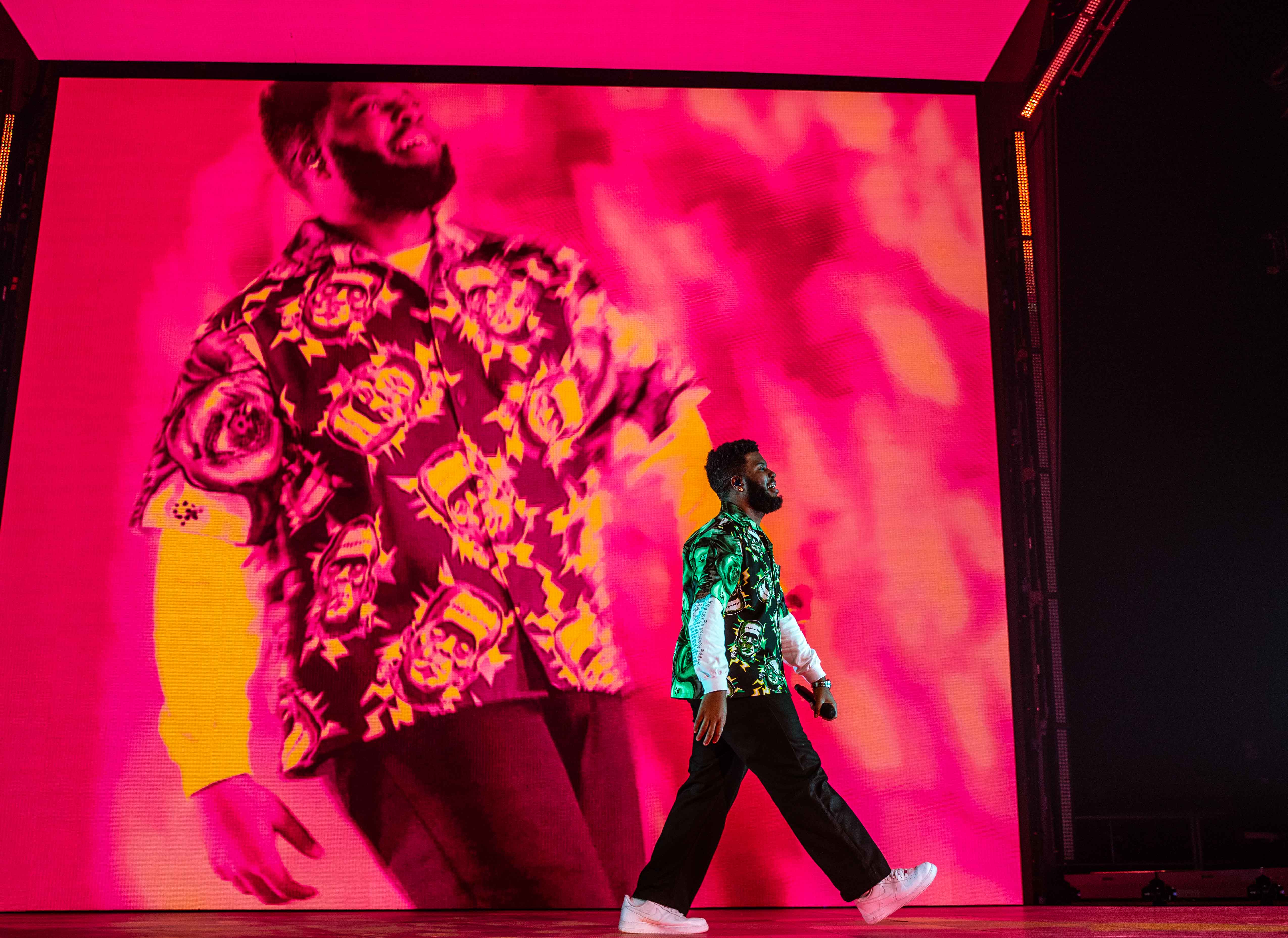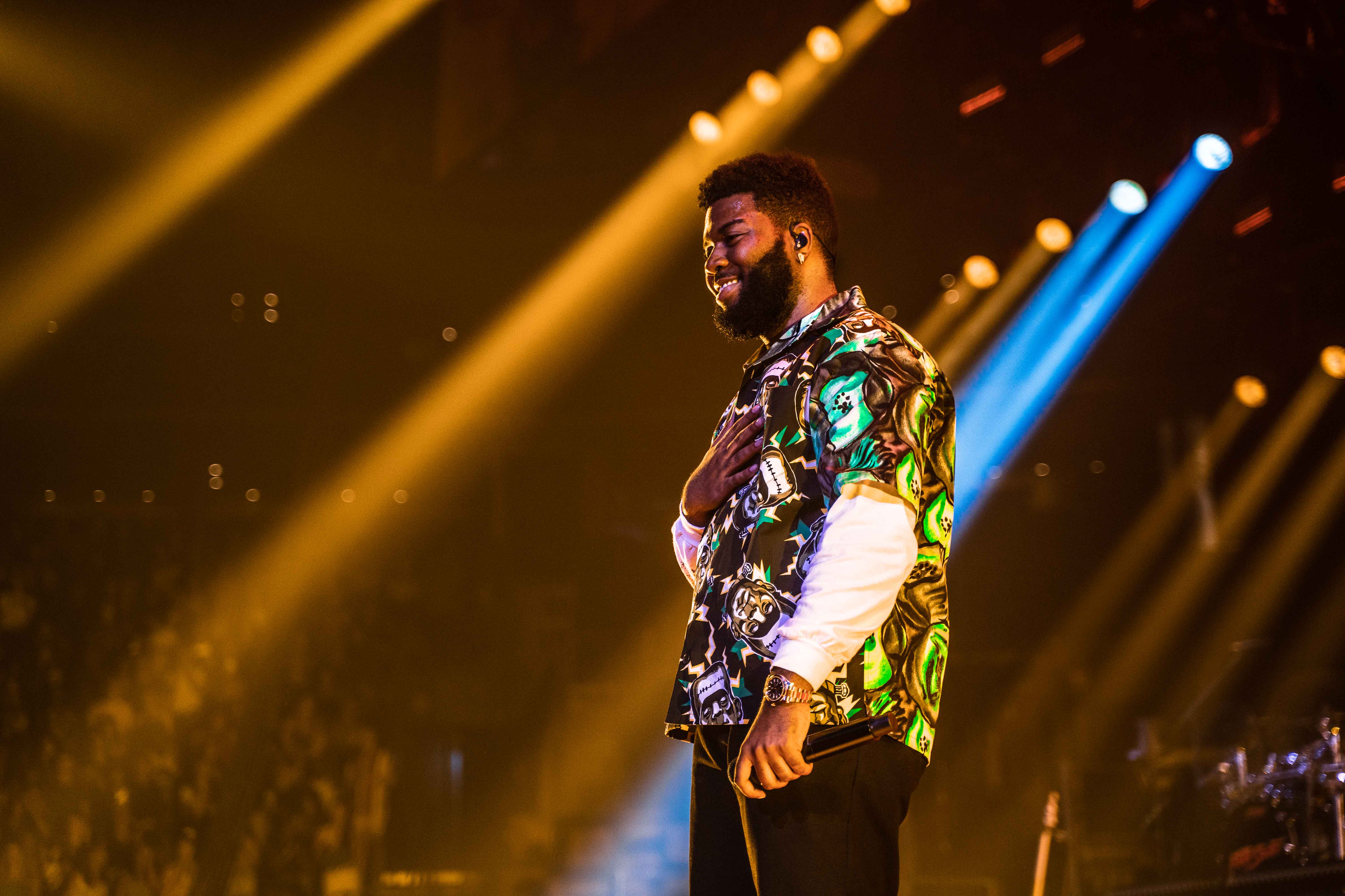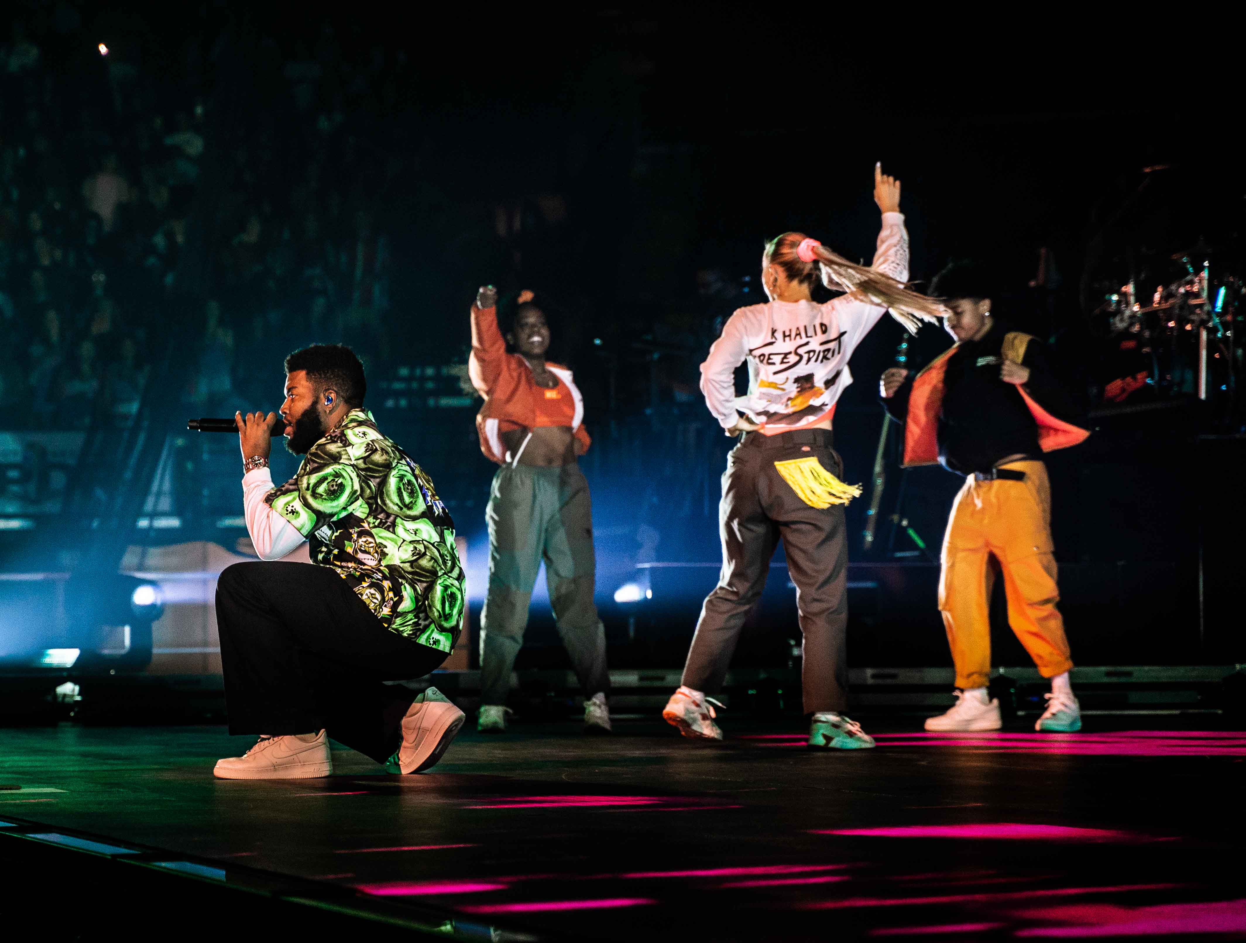 Khalid’s approachability is what came through during the show, despite his massive success. The 21 year old superstar came out in a bright green Hawaiian-print shirt, which upon closer inspection, was covered in Frankenstein heads and roses. It did not look like expensive, global A-lister garb, and it worked perfectly. He spent the first 15 minutes of the show like he had shown up for an autograph signing appearance, as he looked for posters to sign and kids to bring on stage. He even let a teen come up on stage and he asked her in a velvety soft tone, “Do you want to sing with me? Do you want me to start?” They harmonized the beginning of “Heaven,” and he held her hand with his voice as the audience became smitten.