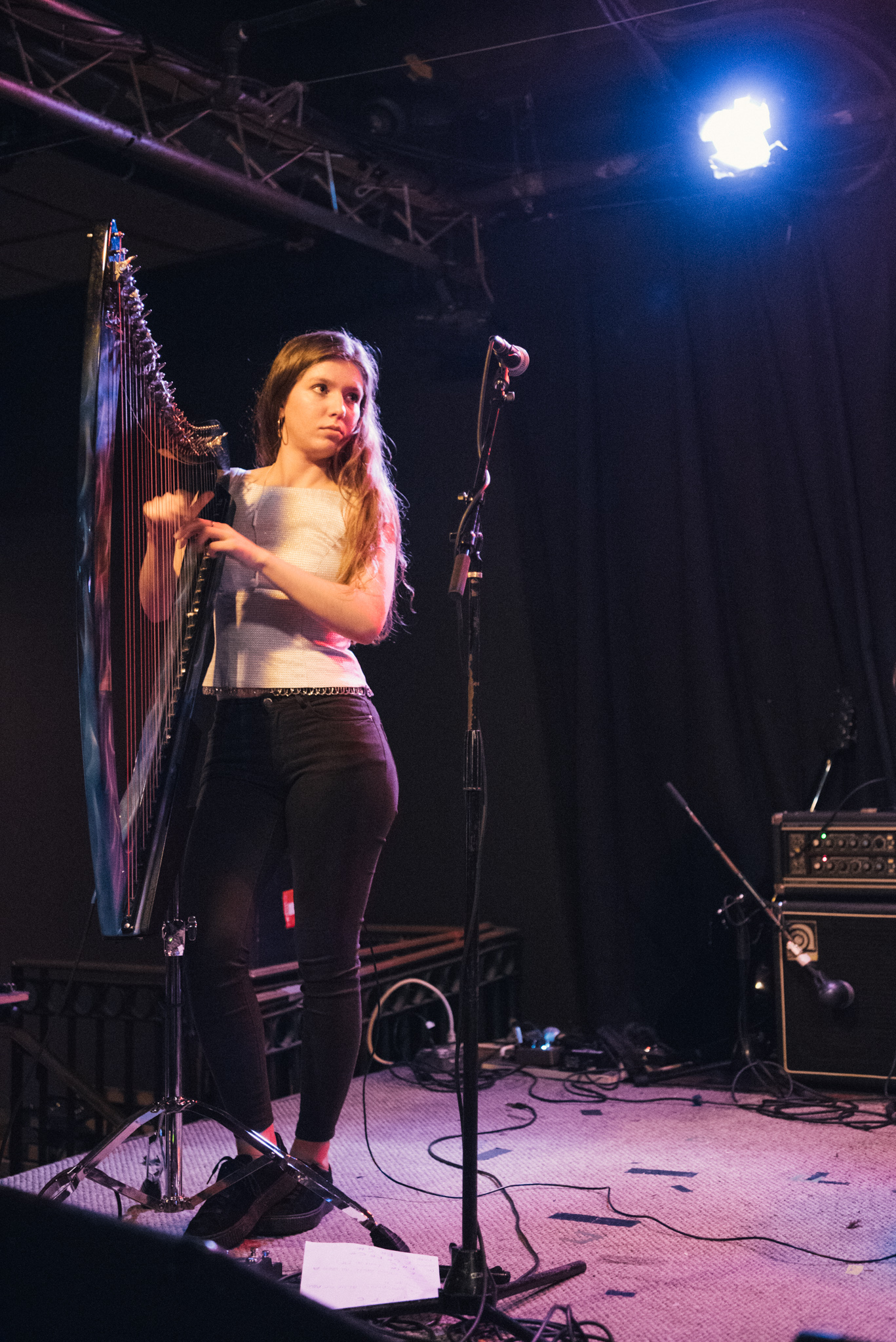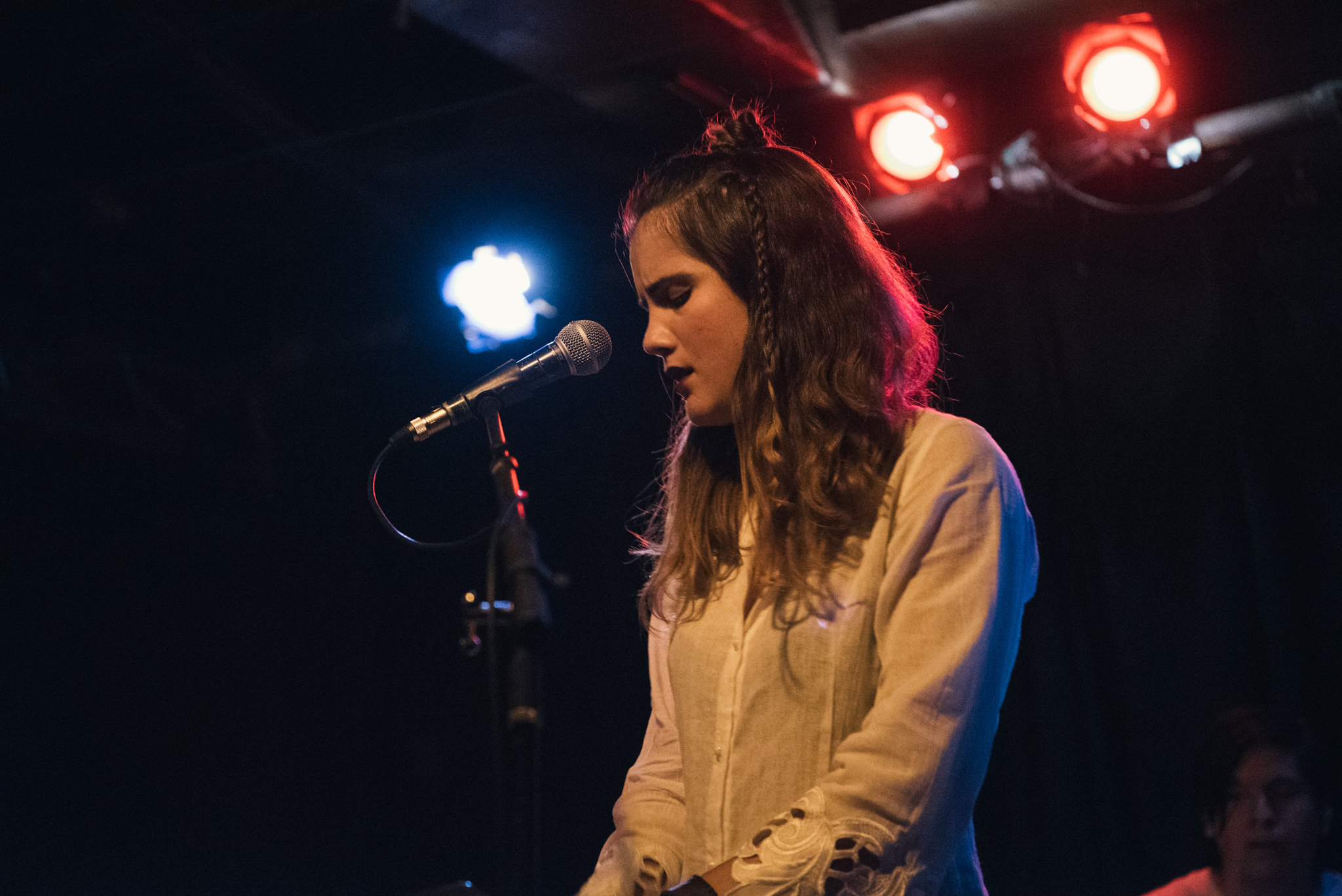 Snow was falling on the sidewalks outside Great Scott, but on the stage there was Raine. The lady behind Raine, Jacqui Rae Stewart, perfectly self-categorizes her sound as “ethereal alt-pop.” Stewart, on vocals and keys, was accompanied by a drummer and a harp player.